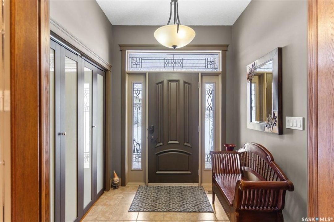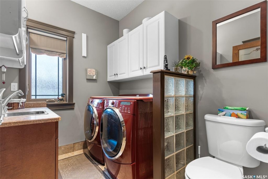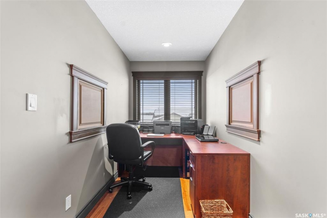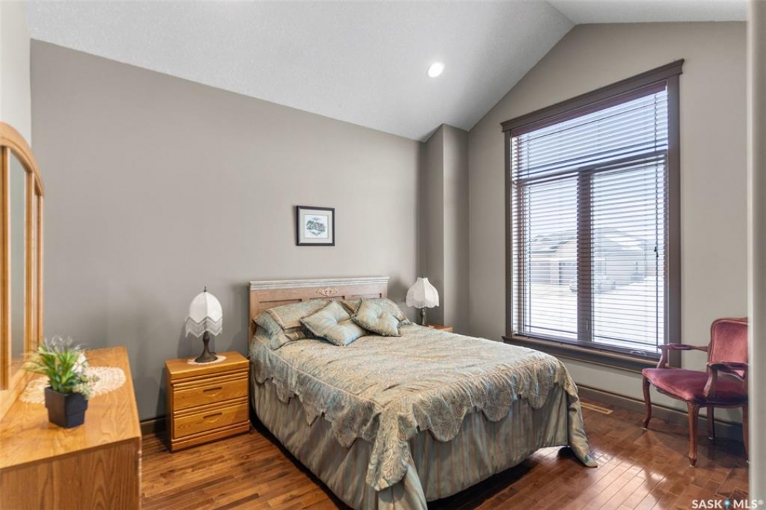 Step into this sophisticated luxury home where exceptional craftsmanship and high-end finishes create an atmosphere of refined elegance. This impressive 4-bedroom, 4-bathroom residence welcomes you with a grand foyer and stylish French doors that open into the main living area. At the heart of the home is a stunning living space featuring soaring vaulted ceilings and a striking double-sided fireplace, offering both warmth and architectural impact. The open-concept design flows seamlessly into a chef-inspired kitchen outfitted with top-of-the-line Jenn-Air appliances, rich maple cabinetry, a large central island, and luxurious granite countertops with a matching granite sink. The bright and inviting dining area easily accommodates a full-sized table and is enhanced by thoughtfully placed skylights that flood the home with natural light. A gorgeous sunroom, complete with its own fireplace and direct access to the backyard, provides a cozy year-round retreat. The main floor hosts three generously sized bedrooms, including a luxurious primary suite featuring a spacious walk-in closet and a spa-like 5-piece ensuite with a jetted tub, separate shower, and elegant vanity. A second 3-piece bathroom offers added convenience, along with a well-appointed laundry room that includes a 2-piece bath and tiled flooring. Upstairs, a versatile bonus room with hardwood floors and an electric fireplace offers endless possibilities—ideal for a relaxing lounge, home office, or games room with picturesque views. The partially finished basement includes a fourth bedroom, a 3-piece bathroom, a utility room, and a large heated crawl space with concrete flooring, providing excellent storage options. Outside, enjoy the beautifully landscaped yard featuring a garden shed, fenced areas for added privacy, and a spacious deck with pergola. Additional highlights include a heated double attached garage with direct entry, ample parking, and only 20 mins. from BHP Mine and 30 mins. to Humboldt.
