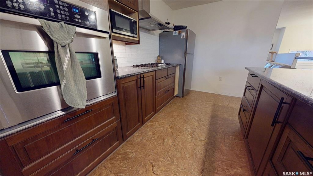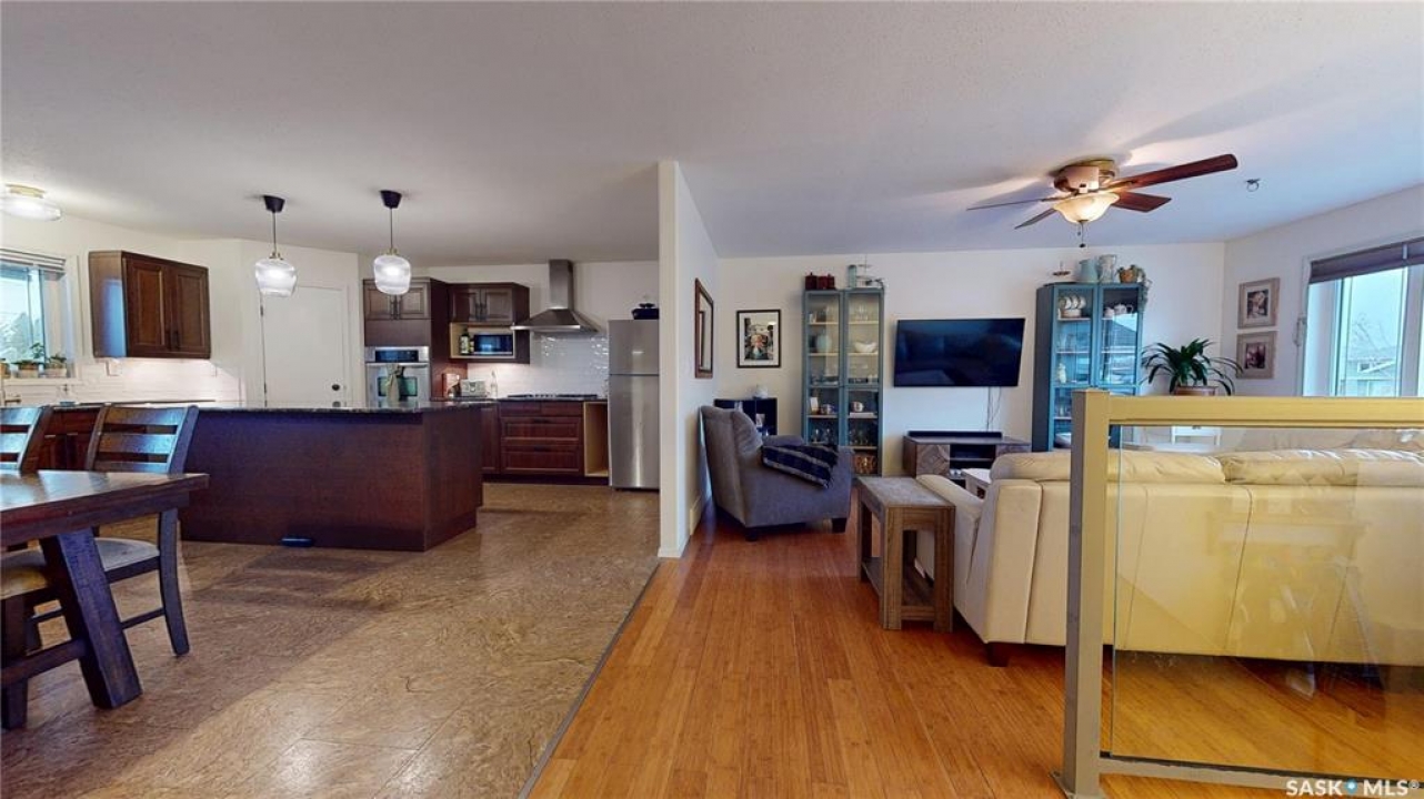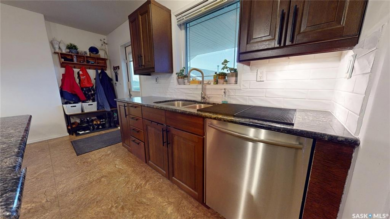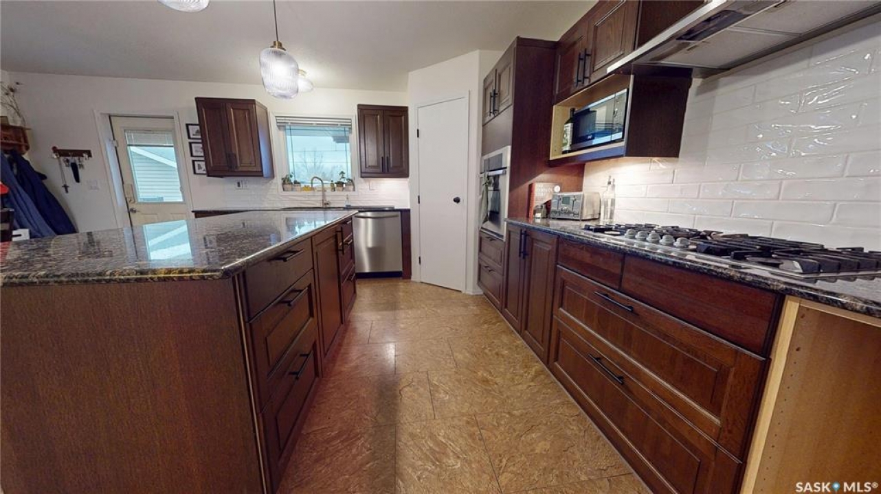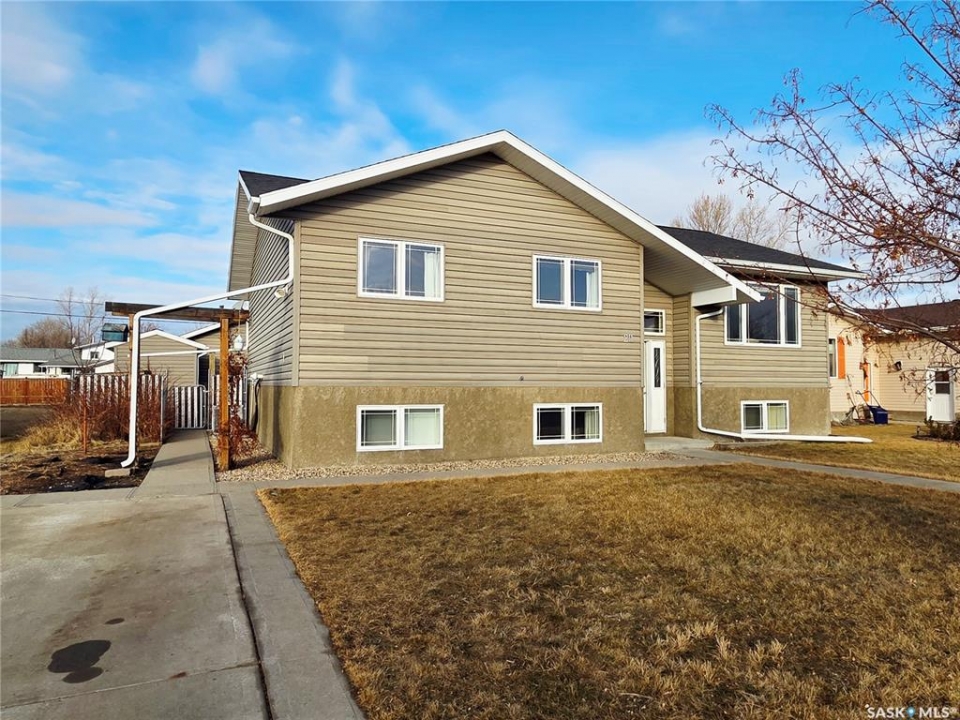 Welcome to 211 Lonsdale Street in Maple Creek. This custom-built, raised bungalow is located in a newer residential area close to schools, recreation, shopping, and a new daycare currently under construction. Tidy and move-in ready, the home features a split-entry foyer and an open-concept main floor with kitchen, dining, and living space offering room for a large table plus island seating, a corner pantry, quartz countertops, countertop range with hood, built-in oven, and a double sink overlooking the covered deck and backyard. The bright living room features engineered hardwood flooring. The primary bedroom includes a walk-in closet and 4-piece ensuite. There are two additional main-floor bedrooms and a 5-piece main bath with double sinks for those busy family mornings. The fully developed basement offers a family room, rec/games area with wet bar and cabinetry—perfect for guests, teens, crafting or hobbies—two more bedrooms, a 3-piece bathroom, and a utility room with designated laundry area, storage, furnace, air exchanger, central vac, and sump pump. Outside, enjoy a large fenced yard ideal for kids and pets, a gravel fire pit area, storage shed, RV or extra vehicle parking, and both a front concrete drive and rear gravel drive. The icing on the cake is the fully insulated, heated garage with plenty of room for vehicles, a workshop, or man cave. Priced to sell, this is a home you won't want to miss.