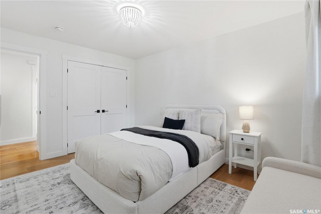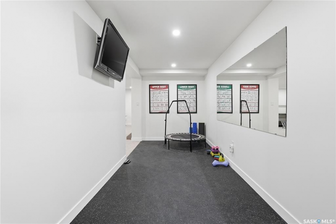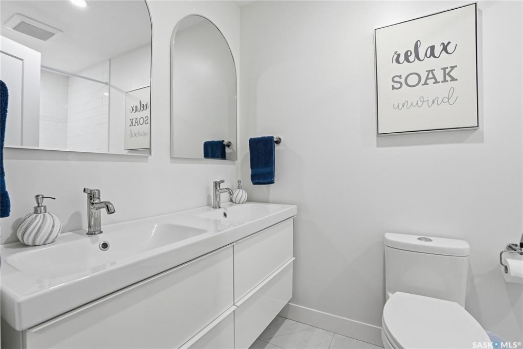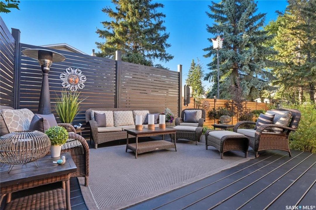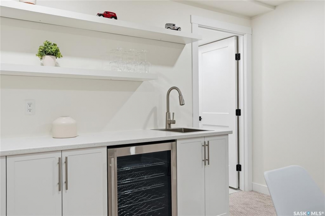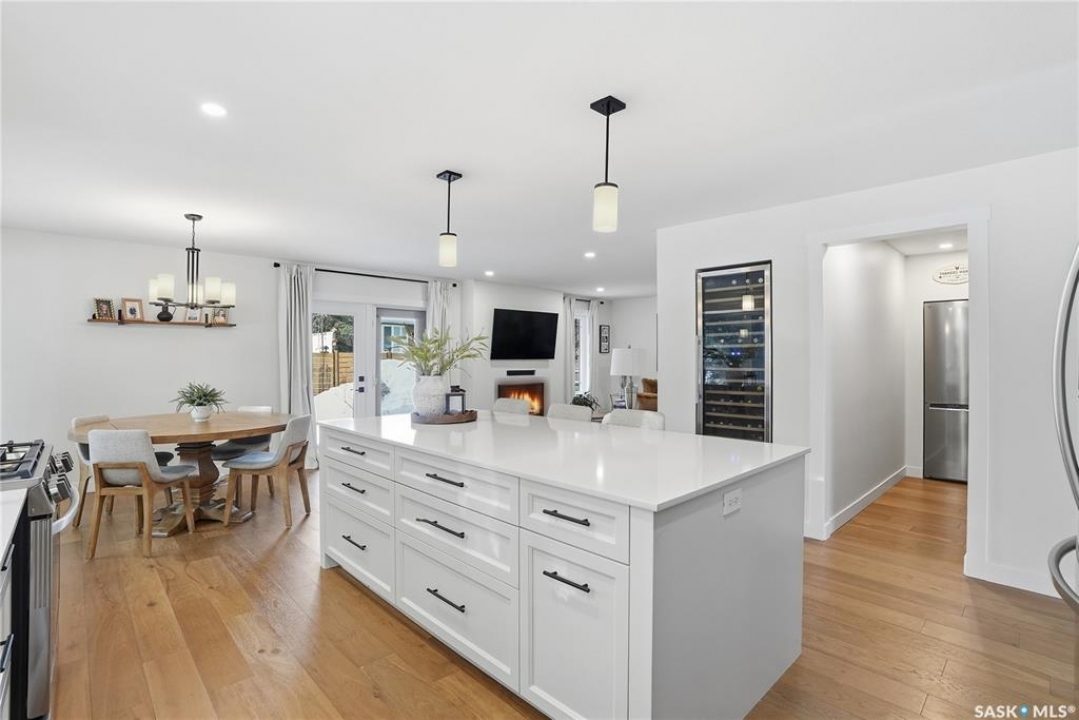 CHECK ON THE VIDEO ABOVE! Timeless style and exceptional craftsmanship define this stunning 2,691 sq. ft. bungalow in prestigious Lawson Heights, offering river views and overlooking Meewasin Trail. Welcome to 115 Whiteswan Drive, where a grand foyer with soaring ceilings creates an inviting first impression. Sun-filled living and dining areas showcase breathtaking views and feature a striking custom warm-toned wood feature wall with a sleek linear gas fireplace, ideal for both everyday living and entertaining. Beautiful new warm-coloured hardwood flooring flows throughout the main floor, enhancing the home's elegant, cohesive design. A private main-floor office with glass doors is perfect for working from home. The executive kitchen impresses with white cabinetry, an expansive island, quartz countertops, and a fully equipped butler's pantry with all new stainless steel appliances, including double refrigerators, double ovens, gas stove, beverage fridges, tall wine cooler, and warming oven—designed for hosting and convenience. The breakfast nook features a south-facing window seat, while the adjoining family room opens to outdoor living. The spacious primary bedroom (19' x 13') offers a large walk-in closet and a spa-like 5-piece ensuite. Two additional well-proportioned bedrooms share a 5-piece bath, along with rare main-floor storage and extra cabinetry. The newly fully developed lower level provides a wet bar, extra bedroom, bright 3-piece bathroom, gym/exercise space, and generous storage. Mechanical upgrades include a high-efficiency furnace and on-demand water heater. Enjoy breathtaking sunrise views from the front of the home, then unwind in a sun-filled, private backyard retreat featuring a privacy wall, stamped concrete patio, stunning brick fireplace, tranquil water fountain, lush landscaping, brand new fencing, and a shed—a truly secluded oasis.