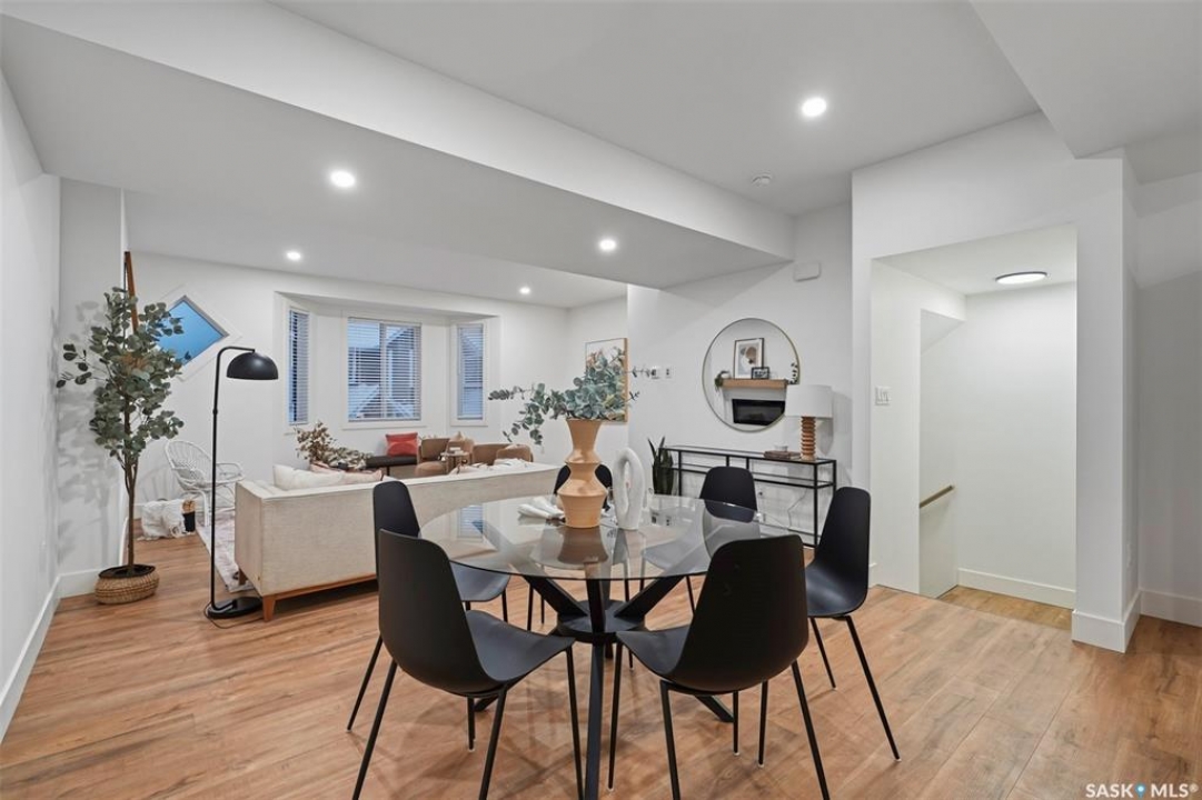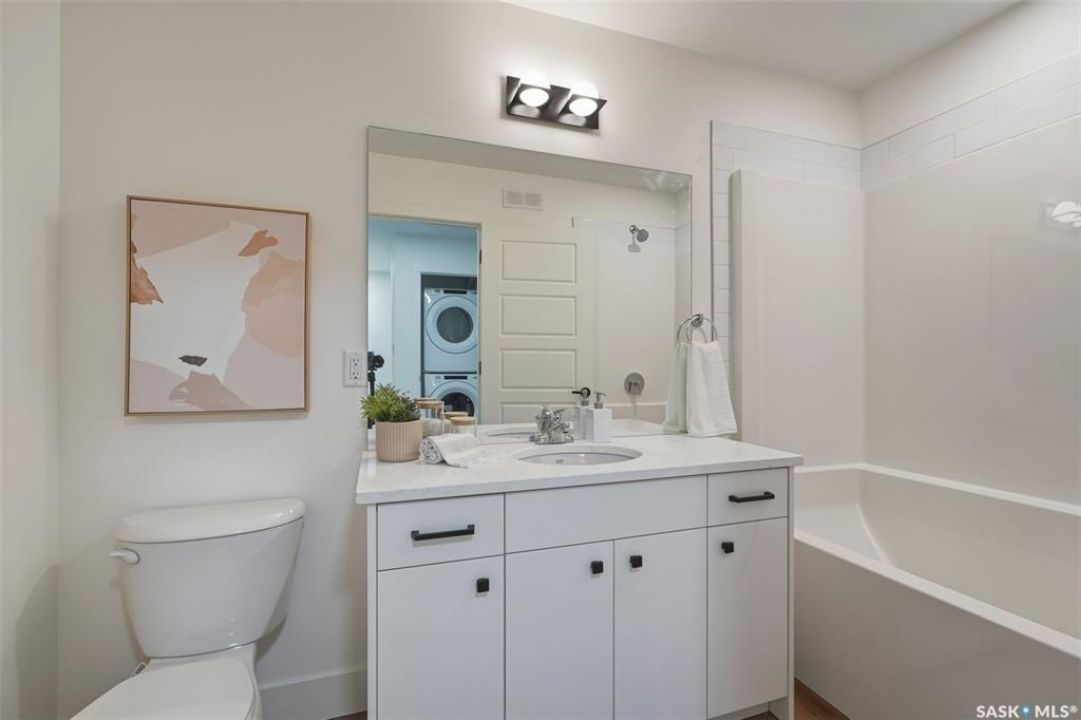 Welcome to 135–3220 11th Street West. A brand new, end unit, contemporary 3-storey townhouse offering the perfect blend of style, comfort, and functionality. Designed with modern living in mind, this home features an attached 2-car tandem style garage with a single drive and over 1,400 sq. ft. of thoughtfully designed space. Step inside to a bright and open second floor featuring 9 ft. ceilings, a spacious living and dining area, and a beautifully finished kitchen with quartz countertops, soft-close cabinetry, tiled backsplash, and a patio door to your balcony. A convenient 2-piece bath completes this level. Upstairs, the third floor offers a well-planned layout with 3 bedrooms and 2 full bathrooms, including a primary suite with a walk-in closet and beautiful ensuite. The additional 4-piece bath and laundry area are ideally located on the same floor for everyday convenience. Enjoy the practicality of a slab foundation providing durability and low maintenance, along with the peace of mind that comes with new construction. Located in the desirable Montgomery Place area, this development offers quiet residential living with quick access to Circle Drive, shopping, and amenities. Whether you're a first-time buyer, young professional, or investor, this home checks all the boxes for modern, low-maintenance living. Please note: photos are of a similar unit and the interior photos are virtually staged. This home will be move in ready mid to end of March 2026.