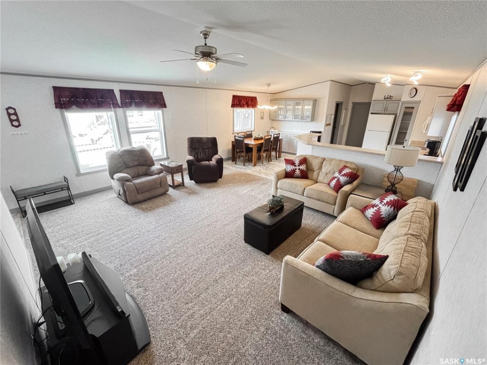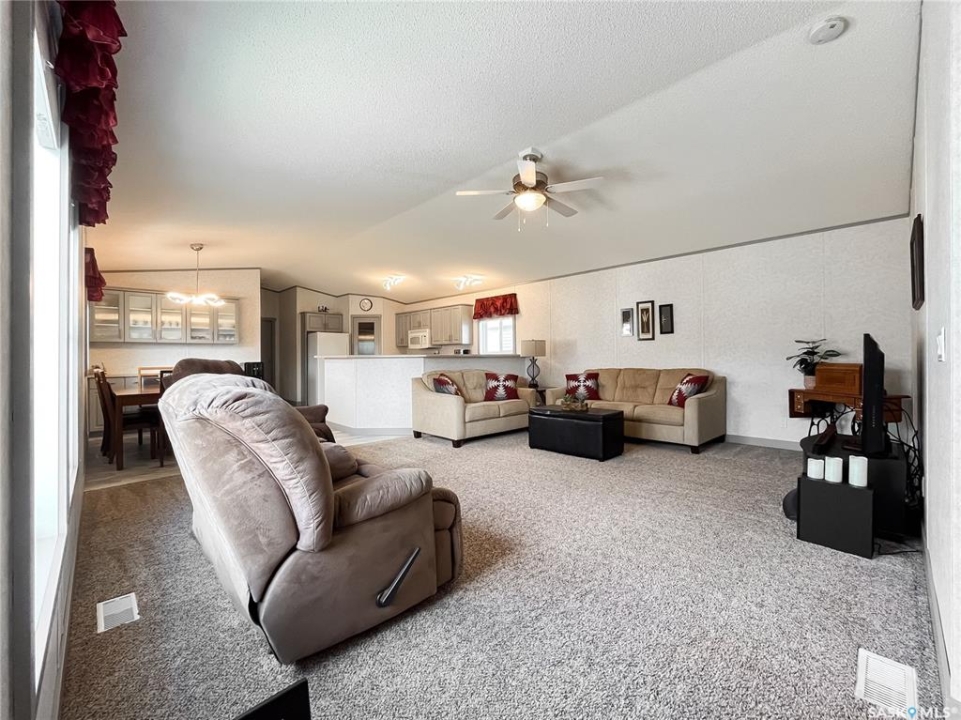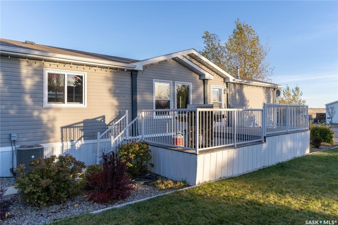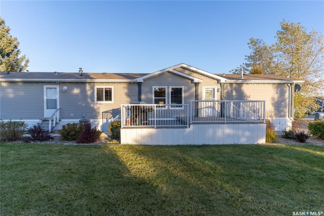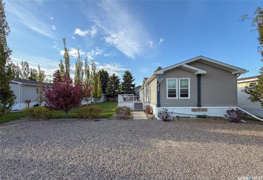 Welcome to 89 Prairie Sun Court! This fabulous 1,520 sqft modular home offers a bright, open-concept layout with a vaulted ceiling, that's perfect for families or anyone craving spacious, single-level living. Step inside, you're greeted by the open concept living room, dining area & kitchen offering updated carpet & vinyl plank(2018) throughout. Flooded w/ natural light & enhanced by newer, modern light fixtures, this space feels as bright & inviting as it is functional. You'll be amazed at the large pantry & incredible amount of cupboard space (full wall in dining area), especially for a modular home. Whether it's everyday meals or hosting friends & family, this kitchen is designed to impress! Now, let's talk about the primary bedroom! It's tucked away on the north side for extra privacy & features a generously sized closet & an amazing 5-piece ensuite w/ his-and-hers sinks, a jacuzzi tub/shower combo & linen closet. The other 2 bedrooms are spacious - both offering ample closet space. This home is packed w/ practical perks too: energy-efficient double-pane PVC windows, central air conditioning, a new water heater(2025) & a water softener. Next, the laundry room—complete w/ a storage closet & features a handy secondary entrance leading straight to the backyard. The two-tier deck is made for BBQs, or simply unwinding while taking in a stunning sunset. There's even a storage shed included in the sale to keep all your tools & toys organized. Worth noting - the skirting has been spray foam insulated in the past 3 years, so floors inside stay extra warm. Additionally, the park fees include water, and the property taxes are incredibly affordable at just $35 per month. Don't miss out on this incredible opportunity to own an affordable home in a wonderful neighbourhood on the outskirts of Swift Current.