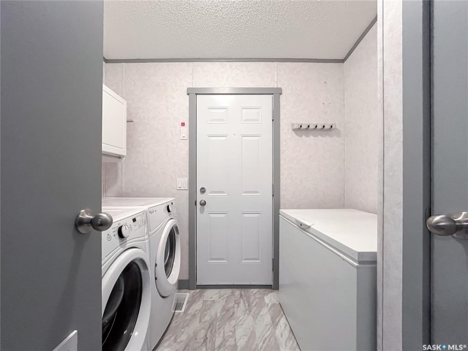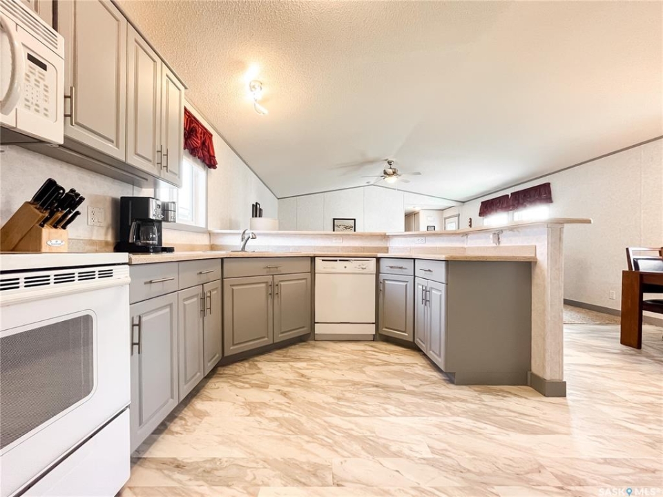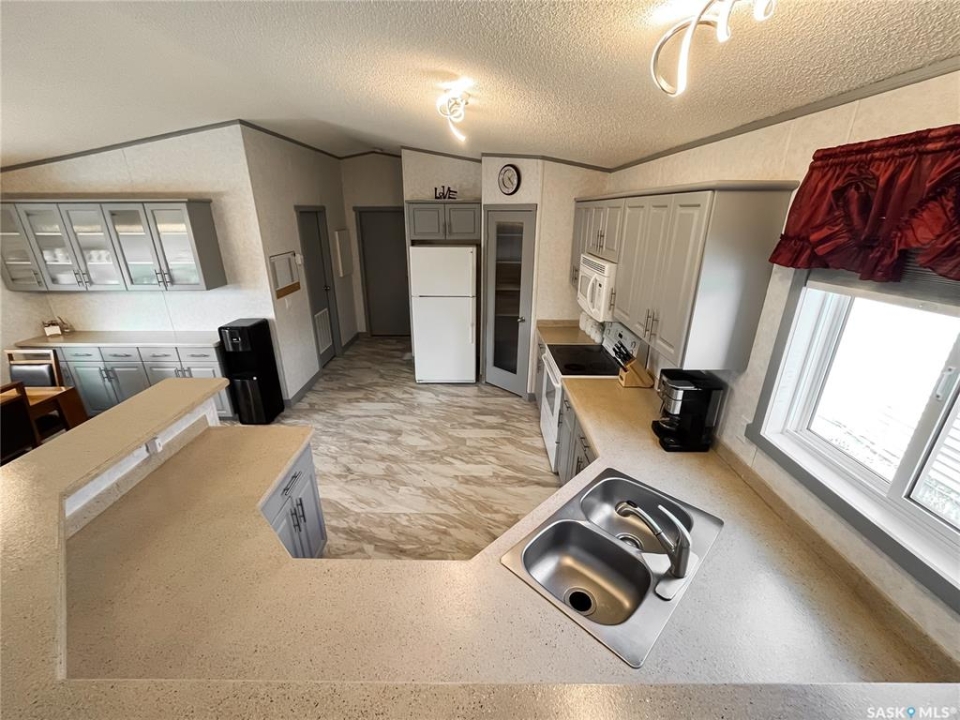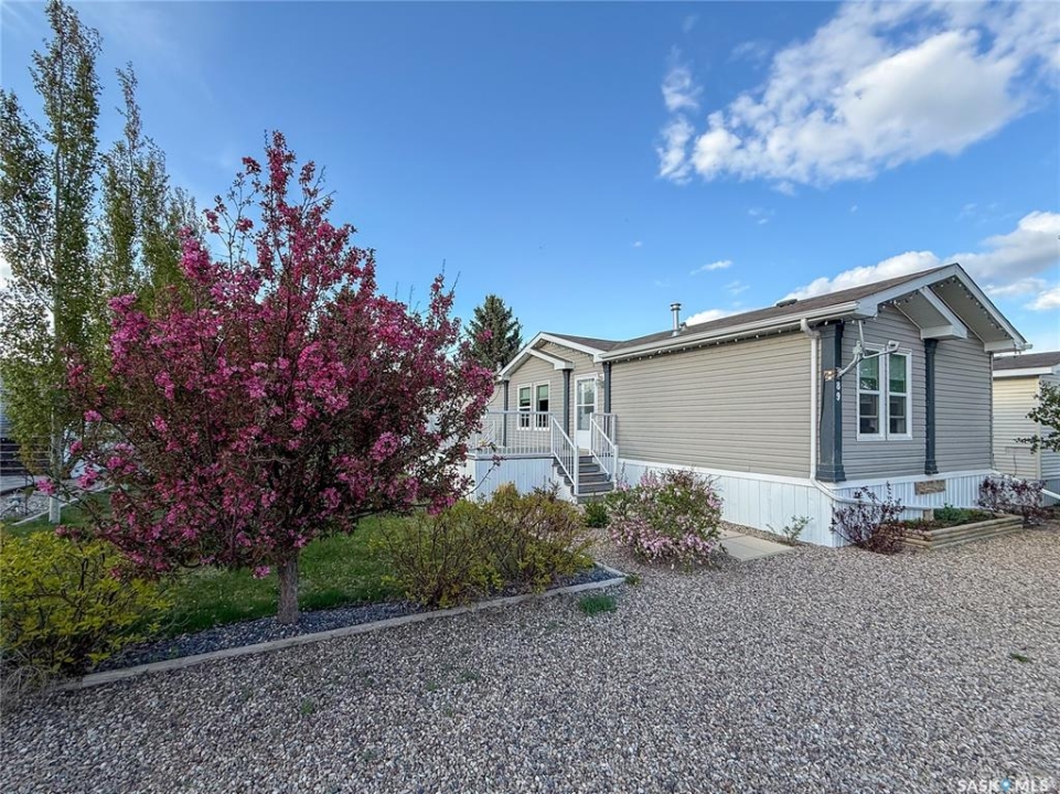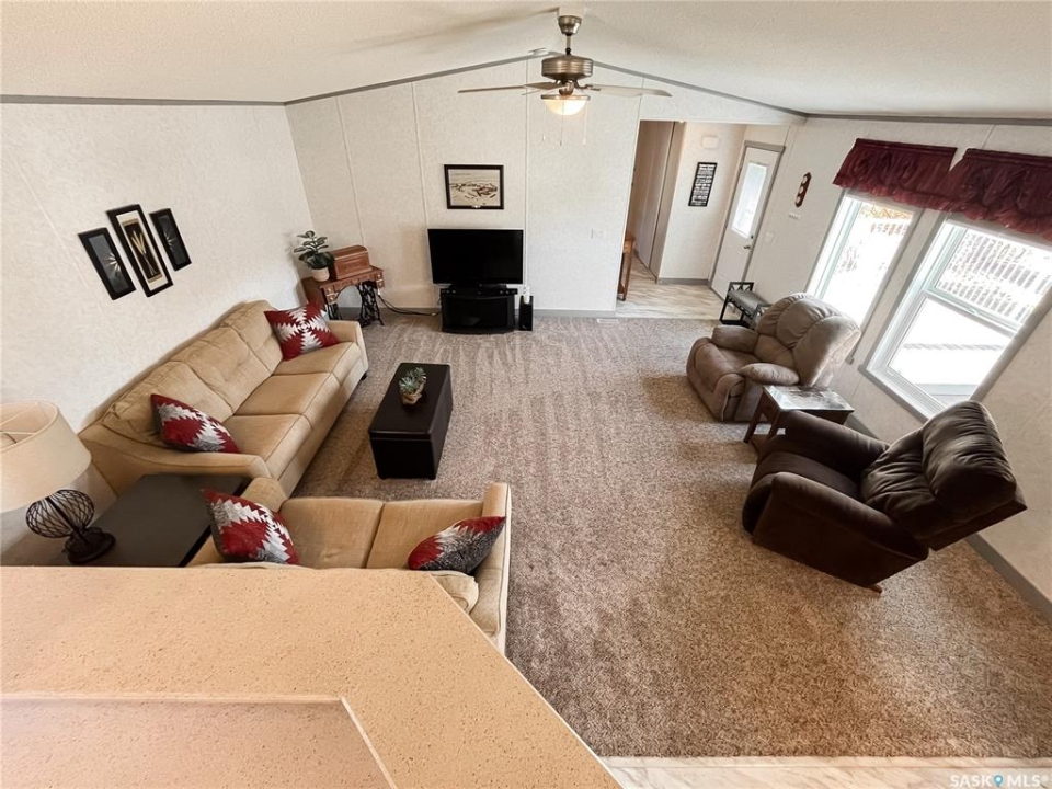 Welcome to 89 Prairie Sun Court! This fabulous 1,520 sqft modular home offers a bright, open-concept layout with a vaulted ceiling, that's perfect for families or anyone craving spacious, single-level living. Step inside, you're greeted by the open concept living room, dining area & kitchen offering updated carpet & vinyl plank(2018) throughout. Flooded w/ natural light & enhanced by newer, modern light fixtures, this space feels as bright & inviting as it is functional. You'll be amazed at the large pantry & incredible amount of cupboard space (full wall in dining area), especially for a modular home. Whether it's everyday meals or hosting friends & family, this kitchen is designed to impress! Now, let's talk about the primary bedroom! It's tucked away on the north side for extra privacy & features a generously sized closet & an amazing 5-piece ensuite w/ his-and-hers sinks, a jacuzzi tub/shower combo & linen closet. The other 2 bedrooms are spacious - both offering ample closet space. This home is packed w/ practical perks too: energy-efficient double-pane PVC windows, central air conditioning, a new water heater(2025) & a water softener. Next, the laundry room—complete w/ a storage closet & features a handy secondary entrance leading straight to the backyard. The two-tier deck is made for BBQs, or simply unwinding while taking in a stunning sunset. There's even a storage shed included in the sale to keep all your tools & toys organized. Worth noting - the skirting has been spray foam insulated in the past 3 years, so floors inside stay extra warm. Additionally, the park fees include water, and the property taxes are incredibly affordable at just $35 per month. Don't miss out on this incredible opportunity to own an affordable home in a wonderful neighbourhood on the outskirts of Swift Current.