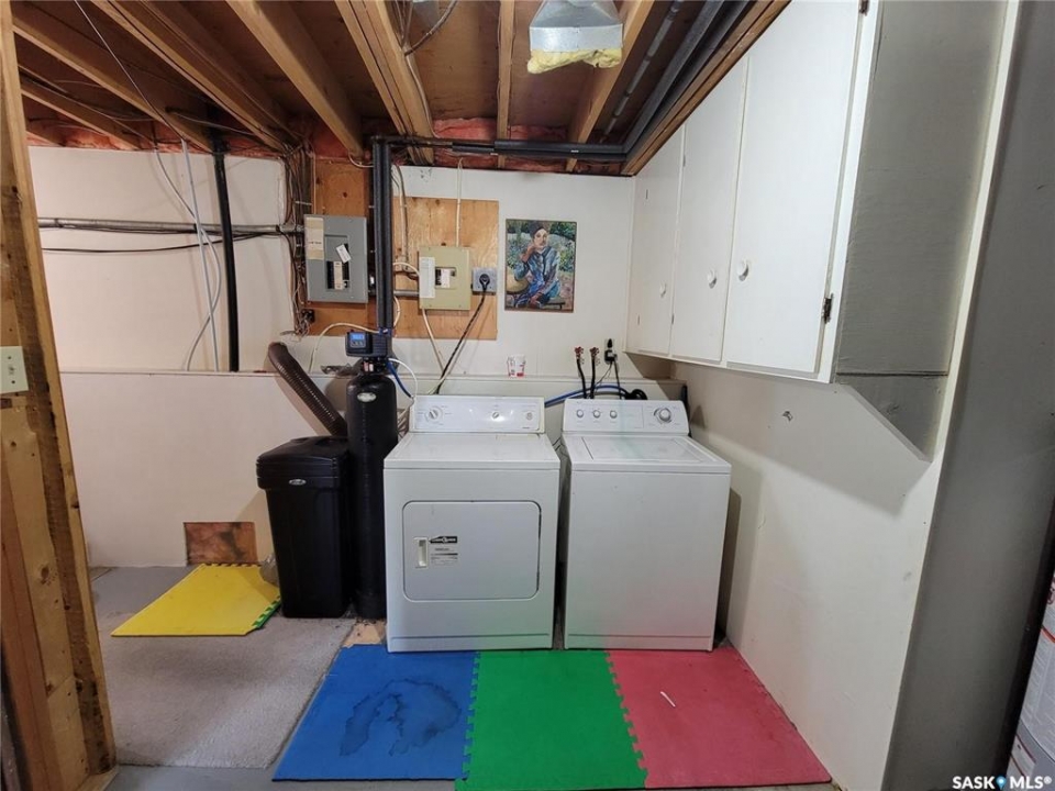 This solid 2+2 bedroom family home offers great bones and a dry, well-maintained basement. Triple-pane PVC windows, updated in 2006, remain in excellent condition, and the home is equipped with an updated high-efficiency furnace. The main floor features a mostly open layout with large windows that bring in abundant natural light, a solid oak kitchen, two bedrooms, and a bright four-piece bathroom. The fully developed basement provides additional living space with a spacious family room centered around a natural brick, wood-burning fireplace that adds warmth and character. Two generously sized basement bedrooms both offer excellent natural light. The basement has no history of water issues and stays dry thanks to the weeping tile system, with smooth concrete in outstanding condition throughout. The exterior of the home is well maintained and finished with low-maintenance X-90 siding and stucco. Landscaped front yard offers ample curb appeal, with backyard is ideal for outdoor enjoyment, featuring a large garden area, fruit trees, mature pine trees, two storage sheds, and a double detached garage.