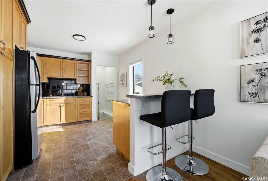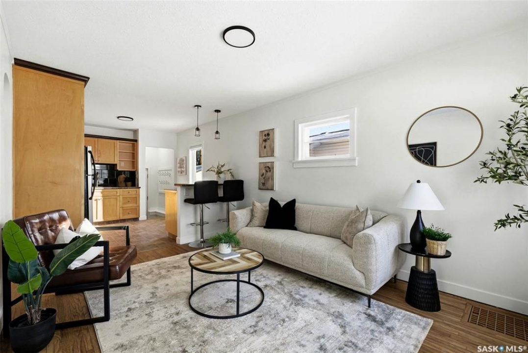 This charming home is the perfect opportunity for first-time buyers! Ideally located on a great block of Forget Street with new construction enhancing the neighbourhood, this 2 bedroom, 1 bathroom property offers a blend of character and many recent upgrades. The renovated kitchen opens to the living room and features beautiful maple cabinetry with a wall pantry, laminate countertops, tiled backsplash, new pendant lighting, stainless steel appliances including an induction stove, and a new kitchen faucet (2026). The living room showcases original hardwood floors, adding warmth and character to the space. The updated bathroom includes a soaker tub, new vanity and skirted toilet, tiled flooring, and a PVC window. Both bedrooms feature updated laminate flooring, and one bedroom and the kitchen also offer upgraded PVC windows. Additional 2026 updates include professionally painted main floor walls, ceilings, baseboards, and trim, freshly painted basement floors, replaced closet flooring, new light fixtures throughout the main floor, new blinds, updated electrical cover plates, new air returns on the main floor, replaced and added shut-off valves, a new sump pump, and a freshly cleaned sewer line. The full concrete basement is open for future development and includes rough-in plumbing for a second bathroom. Other major upgrades include PVC plumbing, a high-efficiency furnace, and central air conditioning. Outside, you'll find a fully fenced 37' x 125' lot, a single detached garage off the back alley, and extra parking space. A fantastic starter home in a growing area!