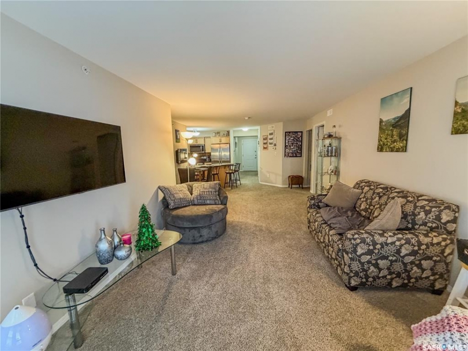Beautiful and well maintained, one owner condo! This Large condo (ovr 1100 sqft) hosts 2 bedrooms, plus 1 office, 2 parking stalls and a storage unit. One parking spot in the underground parking and one outside. There are 2 bedrooms in the condo, with the bonus of an extra room for an office. The living room faces East and has garden door access to the covered balcony. The condo has some added custom features such as feature wall and backsplash in kitchen, custom motorized privacy blinds, a beautiful primary ensuite bathroom, in-unit large laundry room and three custom murphy beds in each private room. The condo building has a common room for gathering in and socializing. Some features include: Underground parking, mail boxes in building, security doors and wheelchair accessible. This condo building does allow small pets, with restrictions.