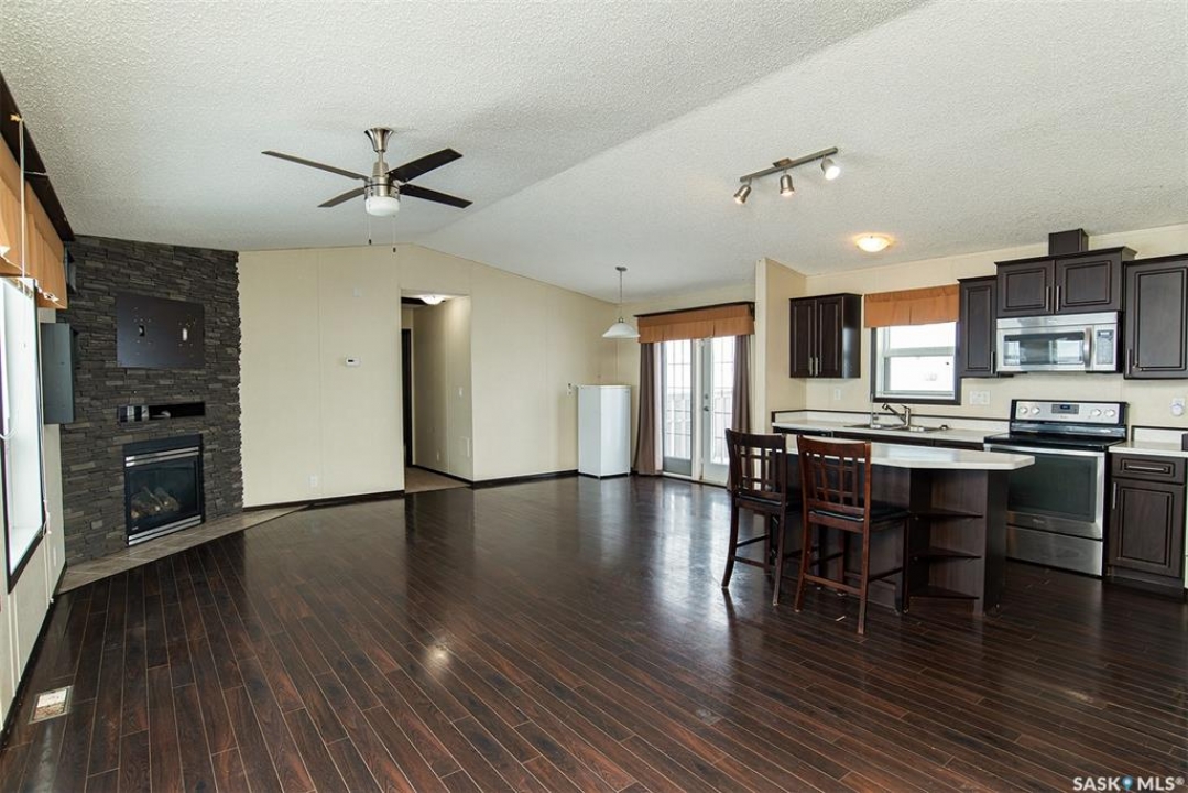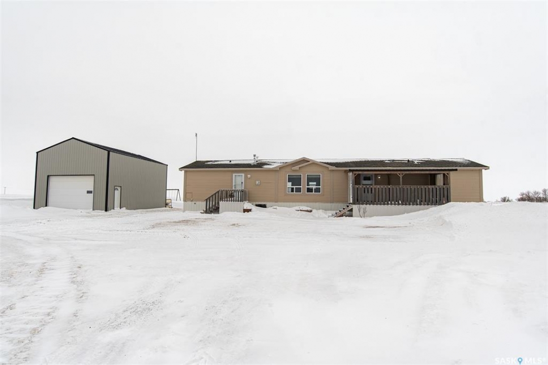 Located near Kandahar just minutes from Wynyard, this well-kept 3 bedroom, 2 bathroom mobile home sits on 1.9 acres offering space, privacy, and comfortable country living. The home features a cozy fireplace, functional layout, and a versatile bonus room ideal for an office, playroom, or extra living space. Enjoy beautiful prairie sunsets from the west-facing back deck, plus a covered front area that provides sheltered entry and a relaxing spot to unwind. The yard provides plenty of room for gardening, recreation, or outdoor storage, and the owners have recently planted 150 hybrid poplar trees, creating a future shelterbelt for added privacy and wind protection. A major highlight is the 24 x 32 shop with 16-foot walls, perfect for vehicles, projects, storage, or hobby use. This property offers the peace of rural living with the convenience of a short drive to town amenities, schools, and services.