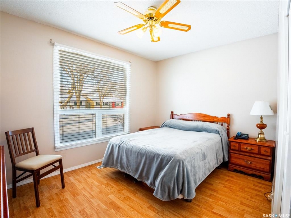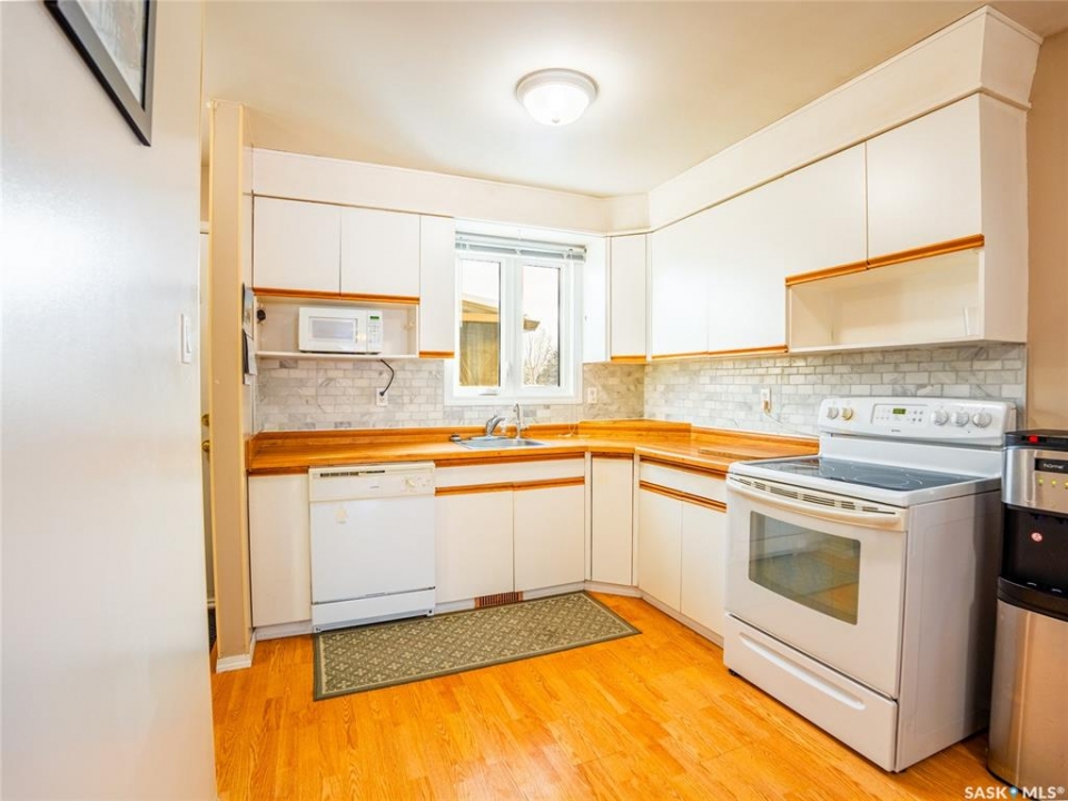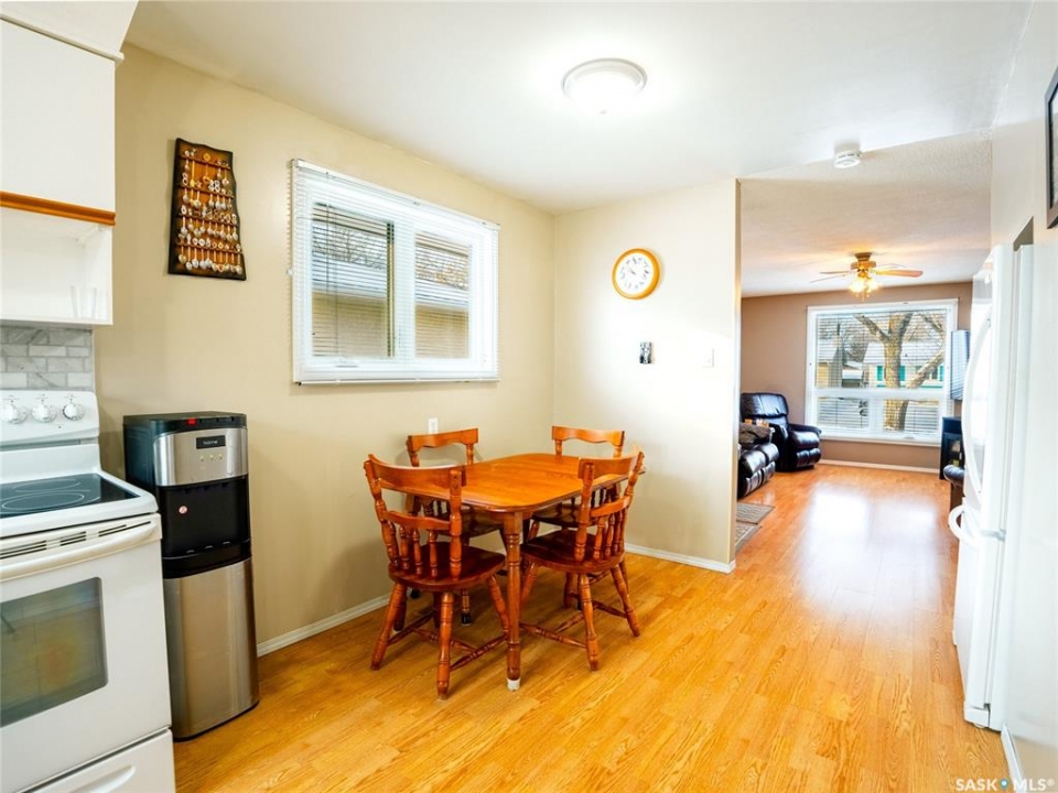 Loaded with upgrades and ready to move into! This original owner, fully developed bungalow is well maintained and offers desirable features throughout. The bright, spacious living room has attractive laminate flooring. The kitchen and dining room offers laminate flooring, tile backsplash and all major appliances. There are three bedrooms on the main floor and a four piece bath. Basement development includes a large recreation room, a bedroom and an utility room offering plenty of storage. Additional features and upgrades include triple pane PVC windows (2023), a mid efficiency furnace (2025) and shingles (2023). Enjoy the fenced and meticulously maintained landscaped backyard from the sunroom. A rubber resurfaced driveway off of the street leads to a wooden deck on the side of the house. A single car garage with alley access completes the exterior. Located in the quiet, family friendly Normanview neighbourhood this exceptional property backs a green space. Don't miss out on the opportunity to make it yours, call today to book your viewing!