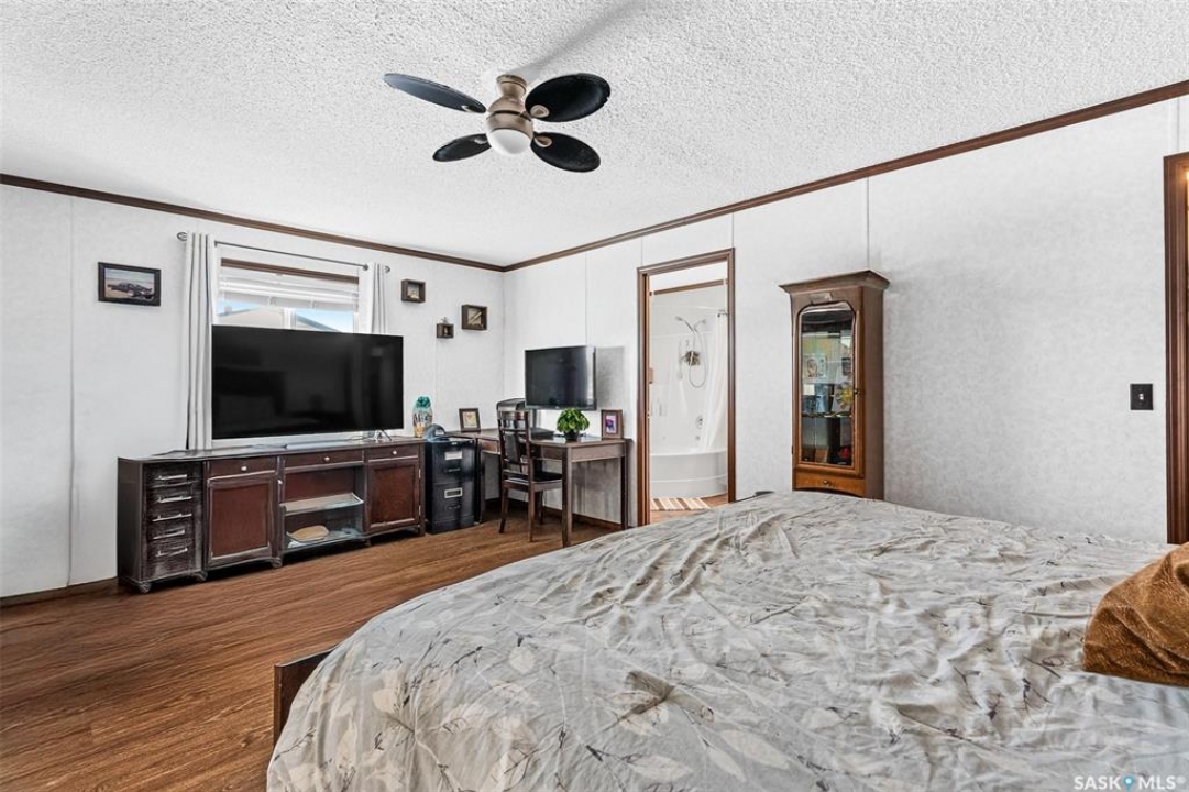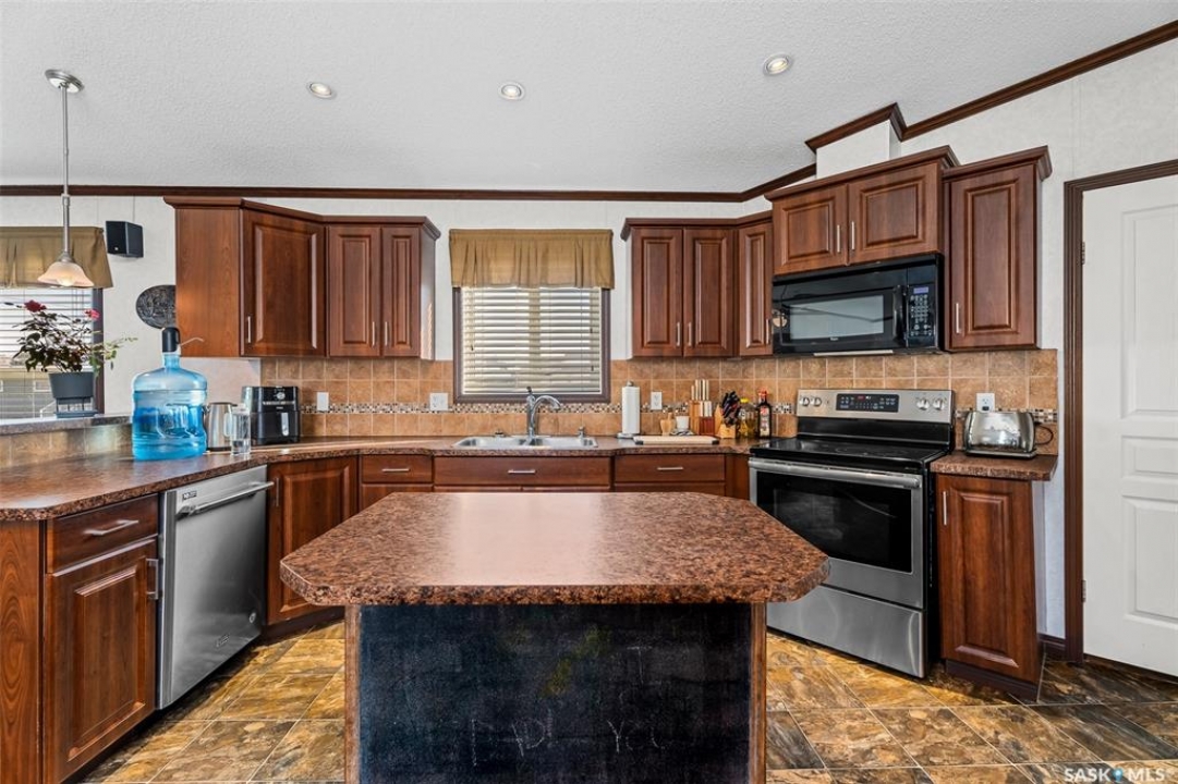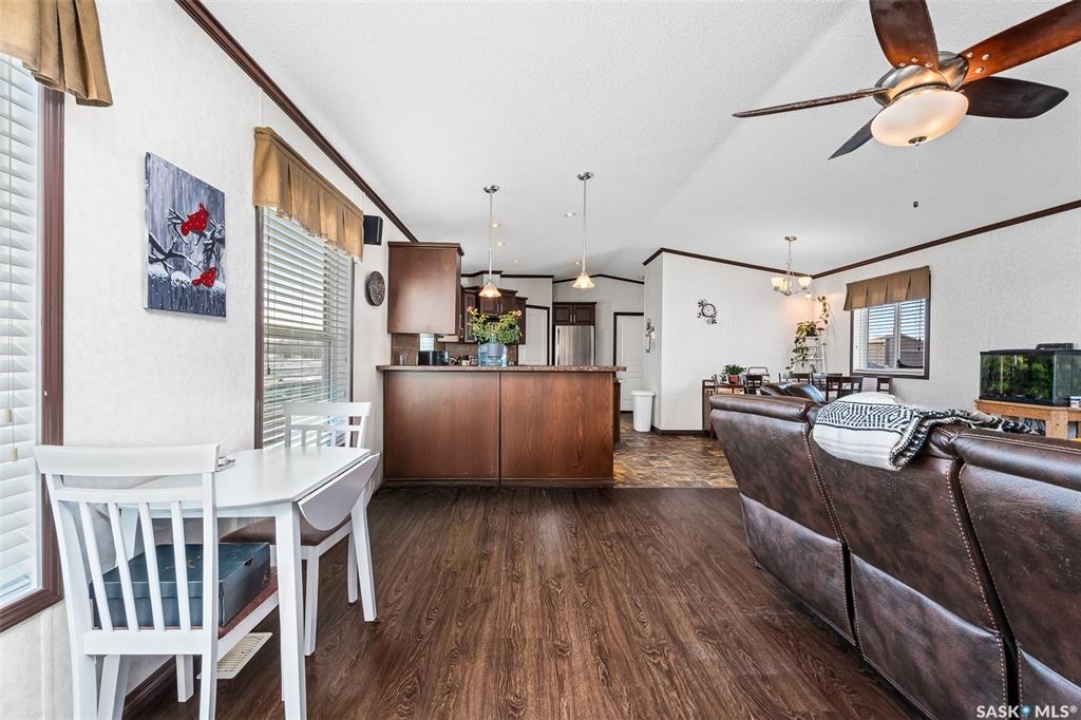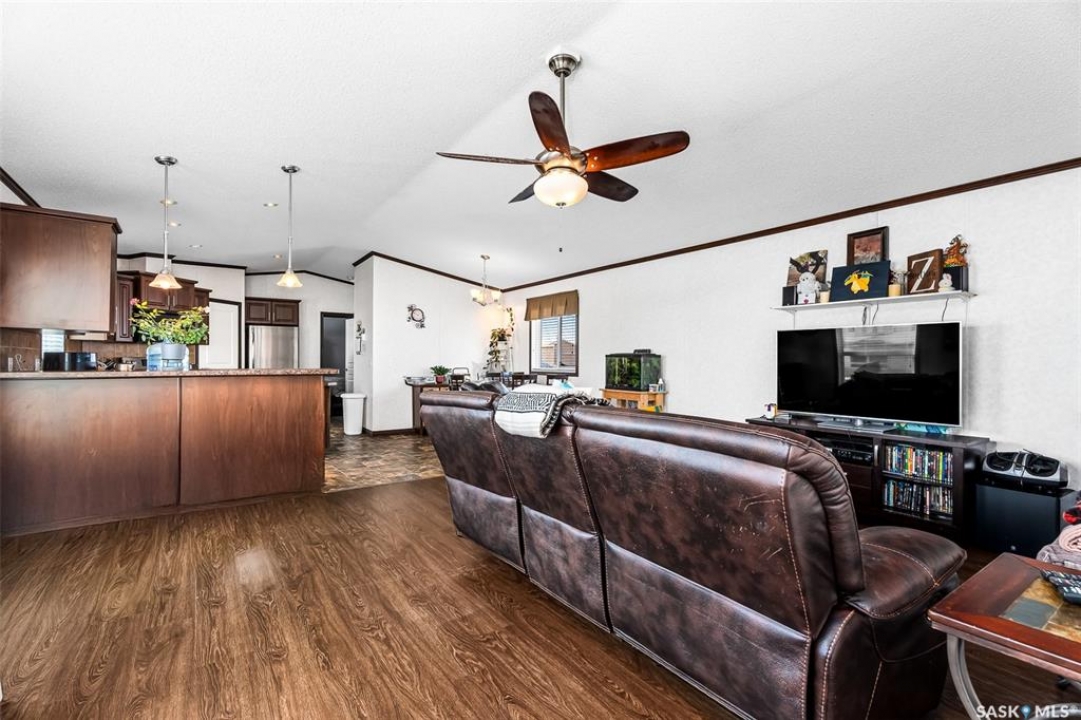 Looking for modern and easy living in the bustling town of Chamberlain? This 2012 modular home boasts 3 beds / 2 baths and more than 1,500 sq.ft.. This home is situated on a huge corner lot which is 3 separate lots (78' x 130') giving you lots of space for both parking and a large backyard! Coming inside you are greeted by a nice size foyer with a coat closet. You then enter the spacious living space - complete with vaulted ceilings! The open concept living, dining and kitchen are sure to be the heart of the home! The kitchen boasts lots of cabinets / counter space, a walk-in pantry, an island and a stainless steel appliance package. Off the kitchen we find a mudroom complete with laundry setup and access to your backyard. At one end of the home we find a massive primary suite with a walk-in closet and a huge 4 piece ensuite boasting a huge corner soaker tub! This primary suite is hard to compare! At the other end of the home we have 2 more good sized bedrooms along with a 4 piece bathroom. The backyard is fully fenced, features a deck and patio - the perfect place for pets and kids to hang out! The bustling town of Chamberlain is located right along Highway #11 between Saskatoon and Regina - located about 30 minutes from Moose Jaw and 50 minutes from Regina. Reach out today to book a showing!