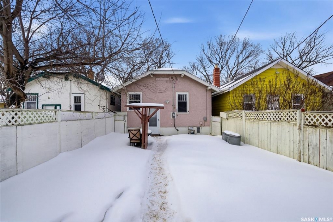 This adorable 2 bedroom, 1 bathroom, 714 sq ft single-detached bungalow is packed with charm and value. Built in 1929, the home showcases classic character while offering important updates and maintenance that make it an excellent choice for the budget-conscious buyer seeking a move-in-ready option. The fully fenced backyard provides privacy and a great space for outdoor entertaining. An oversized single garage with a newer garage door offers secure parking plus extra room for storage, hobbies, or toys. Recent work includes sewer cleaning and inspection, furnace servicing, duct cleaning, and plumbing service. All appliances have been tested and are included in as-is condition. Inside, the main floor features a bright and spacious living room, a quaint kitchen with a cozy dining area, two comfortable bedrooms, and a 4-piece bathroom. Off the kitchen, you'll find access to the backyard and garage. Stairs lead to the unfinished basement, which is concrete, braced, and home to the laundry area — a perfect spot for storage or future development. Located within walking distance to Pasqua Hospital, Mosaic Stadium, public transit, and numerous amenities, this home offers convenience and community. With its manageable size, essential updates, and attractive price point, it's a fantastic opportunity for a first-time or budget-minded buyer looking to build equity instead of paying rent. Call your agent to schedule a viewing.