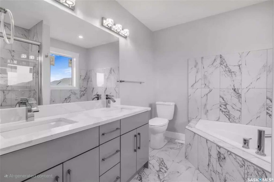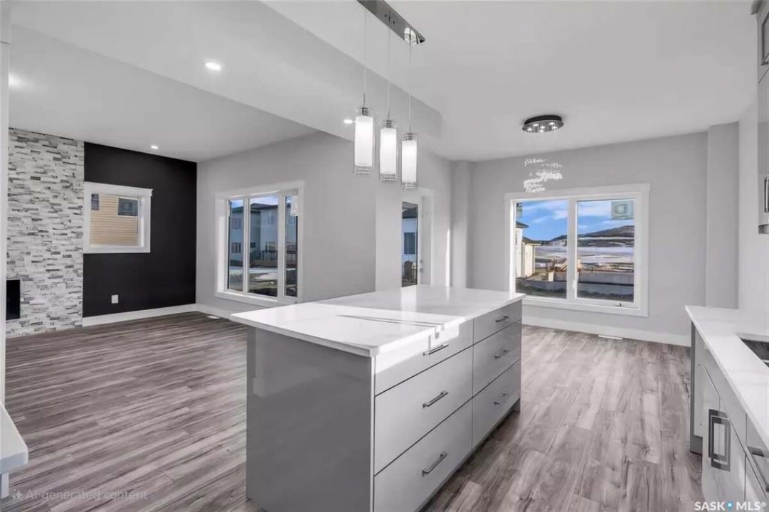 For more information, please click the "More Information" button. Welcome to this beautifully crafted custom home located in the heart of Brighton, one of Saskatoon's most sought-after communities. Thoughtfully designed with space, light, and comfort in mind, this home offers an ideal balance of elegance and everyday functionality. The striking tall front entry creates an impressive first impression, leading into a grand double-height foyer filled with natural light and open sightlines. The open-concept main floor is perfect for both family living and entertaining, featuring a spacious living room with a modern fireplace and large windows that flood the space with sunlight. The dining area flows seamlessly into the kitchen, making everyday meals and hosting effortless. The gourmet kitchen is both stylish and practical, offering premium cabinetry, elegant finishes, and generous counter space. A fully equipped spice kitchen adds exceptional convenience, ideal for preparing aromatic or oily dishes while keeping the main kitchen clean and show-ready. Upstairs, the home is designed with families in mind, offering four well-appointed bedrooms and a versatile bonus room suitable for a home office, media room, or play area. The primary suite serves as a private retreat with a large walk-in closet and a stylish 4-piece ensuite. Two additional bedrooms share a convenient Jack & Jill bathroom, combining comfort and practicality. From the elegant staircase overlooking the foyer to the abundance of natural light throughout, this home feels bright, welcoming, and timeless. Located close to parks, walking paths, schools, and amenities, this is a perfect opportunity for families seeking a modern, high-quality home in one of Saskatoon's best neighborhoods.