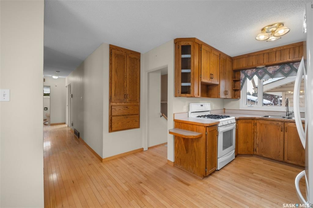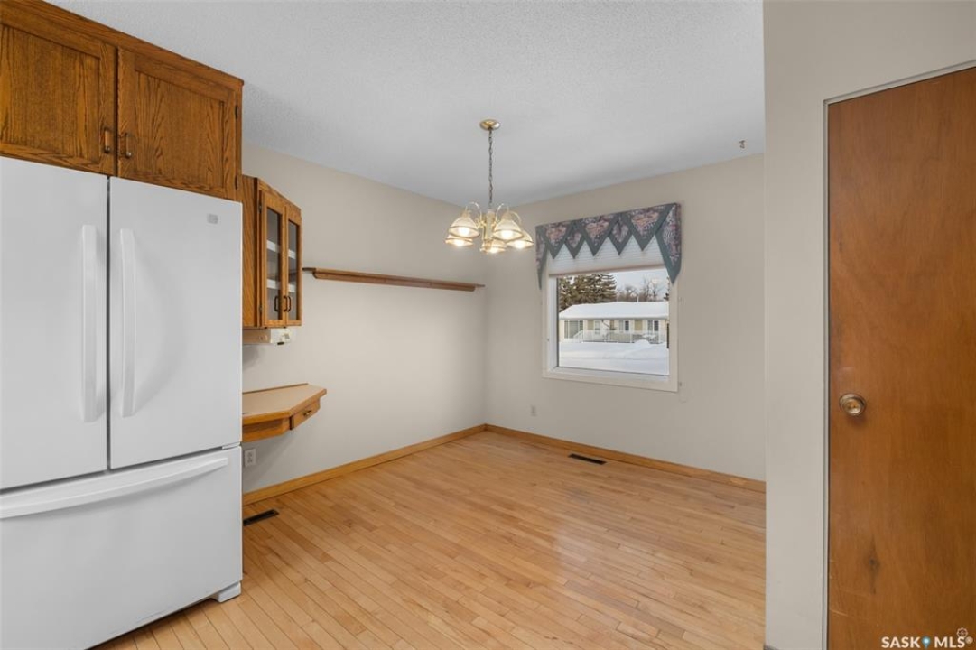Exceptionally well maintained 3 bedroom and 2 bathroom bungalow located in the desirable Crescent Heights neighbourhood! From the moment you step inside the hardwood floors throughout the main living areas set a warm and inviting tone. The main floor offers a large living room filled with natural light, a generously sized dining area and a spacious kitchen featuring a south facing window, ample cabinetry and counter space. There are also 3 good size bedrooms and a 4 piece bathroom that complete this level. The fully finished basement offers a cozy family room that features a gas fireplace that is ideal for relaxing or entertaining. This level also includes a 3 piece bathroom, convenient laundry room, versatile den suitable for a home office or hobby space, and a storage room that could easily be used as a workshop. Notable upgrades include shingles, furnace (2023), windows and doors. Situated on a beautifully maintained, fully fenced yard, complete with a garden area ideal for the green thumb, a south facing patio for outdoor enjoyment, and a single detached heated garage that has a new heater (2024). Located close to Cooke Municipal Golf Course, John Diefenbaker school, St. Catherine School and École Holy Cross School! Act now and make this your next home!