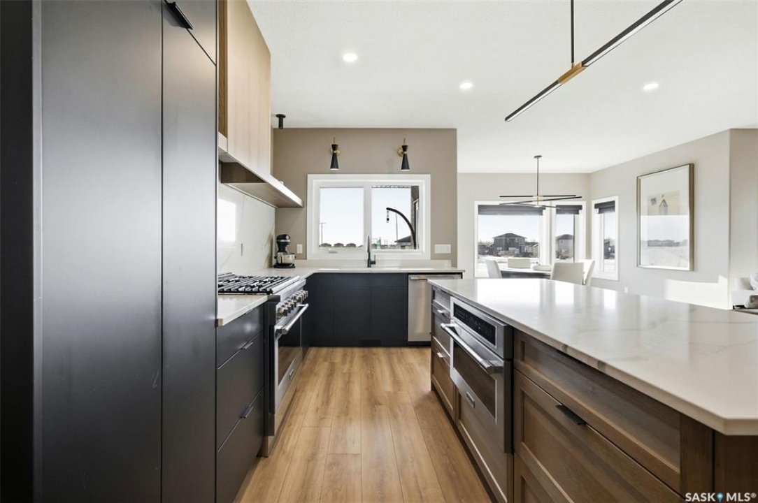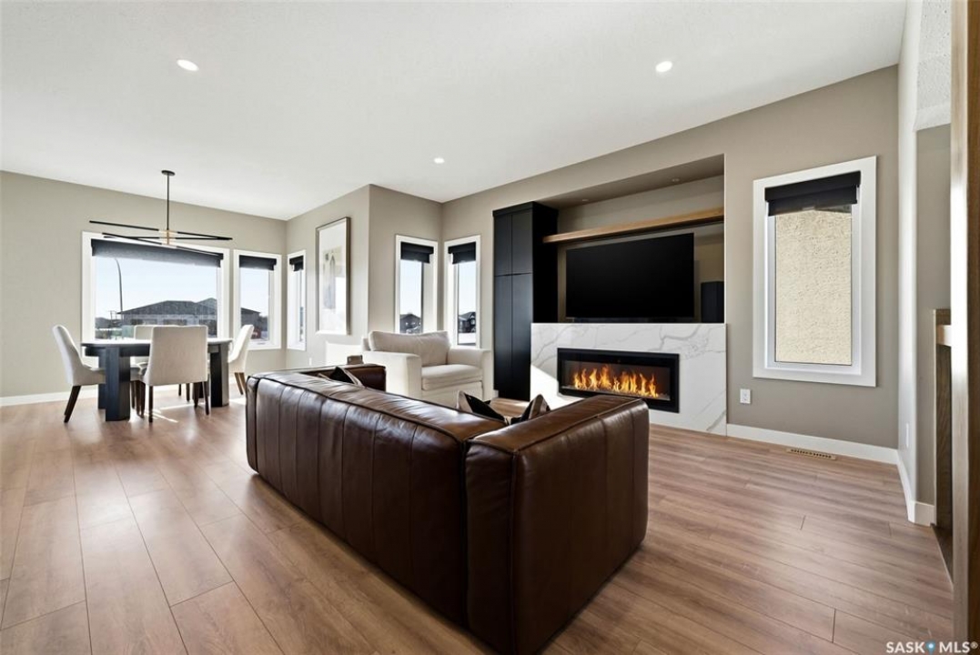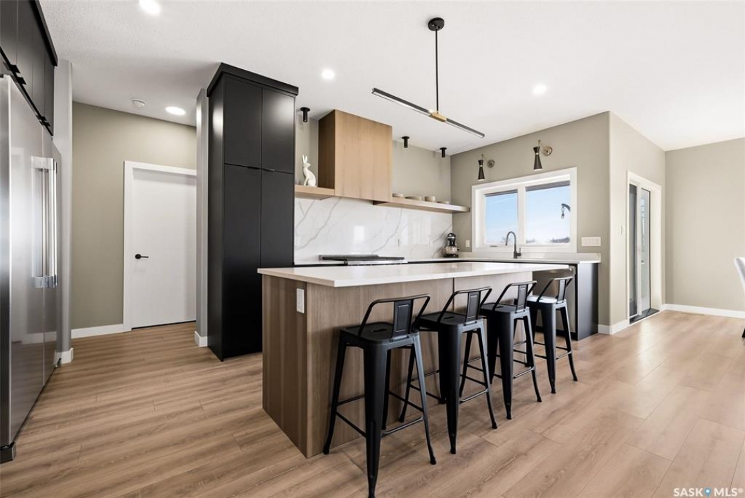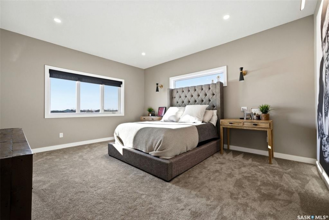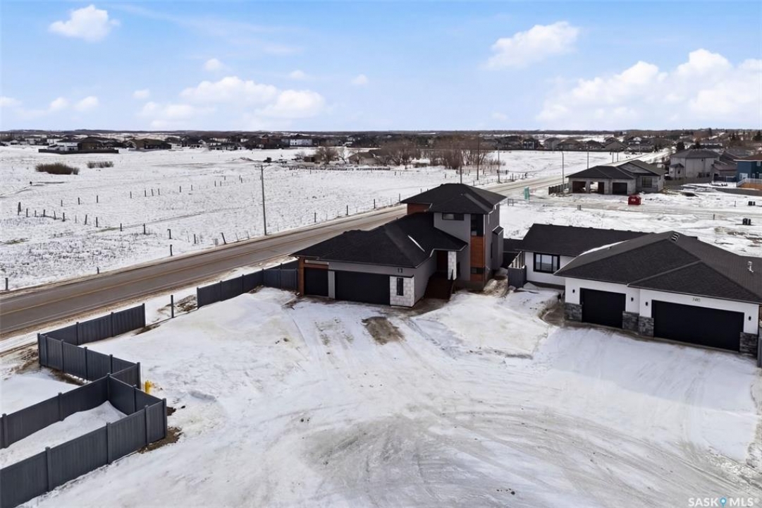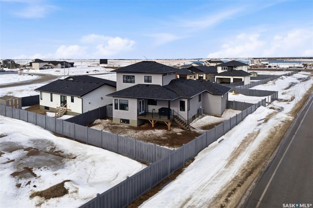 Welcome to 13 Plains Green, a stunning 2025 custom-built Scandinavian modern home located in the sought-after community of Pilot Butte. This thoughtfully designed bunga-loft style two-storey blends modern architecture with warm, functional living. The home features a unique and highly desirable layout with a private primary suite upstairs, creating a peaceful retreat complete with a spacious bedroom and spa-inspired ensuite. On the main floor, you'll find two additional bedrooms, ideal for family, guests, or a home office; perfect for those seeking main-level living without sacrificing space. Designed with intention and quality throughout, the home features 9' ceilings on all three levels, enhancing the sense of space and light. Clean lines, expansive windows, and a neutral Scandinavian palette fill the open-concept main living area, making it ideal for both everyday living and entertaining. The chef-inspired kitchen is equipped with a 6-burner gas range and a double-wide, side-by-side refrigerator and freezer, combining style with serious functionality. The home is solar power ready and includes a natural gas BBQ hookup, offering future-forward efficiency and convenience. Step outside to a covered back deck, perfect for year-round enjoyment, all within a fully fenced yard—ideal for kids, pets, or private outdoor living. The north side of the lot offers additional space, well-suited for a large shed or other desired use, adding flexibility and future potential. An extra-wide concrete walkway leads to the front door, enhancing curb appeal and creating a welcoming first impression. A triple attached garage provides ample space for vehicles, storage, and recreation. Located on a quiet street in a growing community just minutes from Regina, Pilot Butte offers small-town charm with city convenience. Modern. Functional. Timeless. 13 Plains Green is a rare opportunity to own a truly distinctive new build in one of Saskatchewan's most desirable bedroom communities.