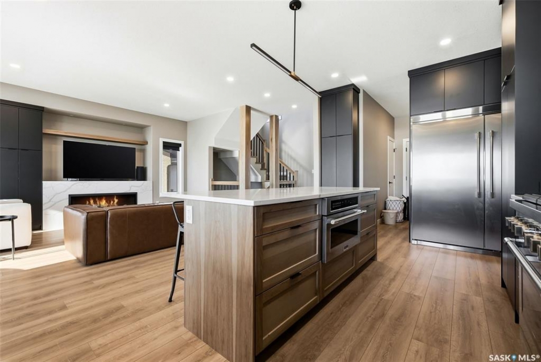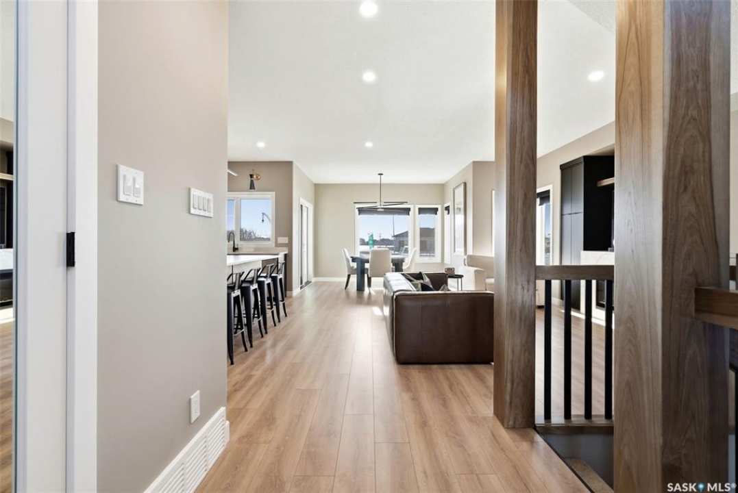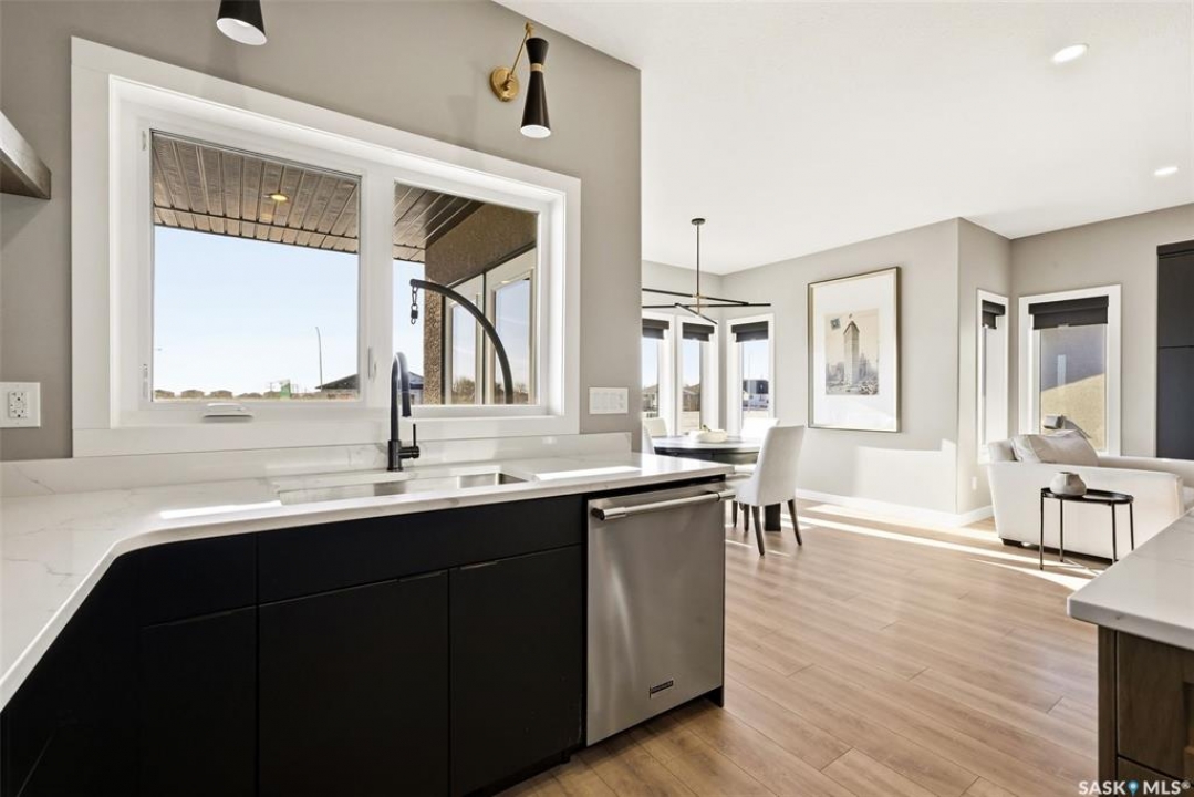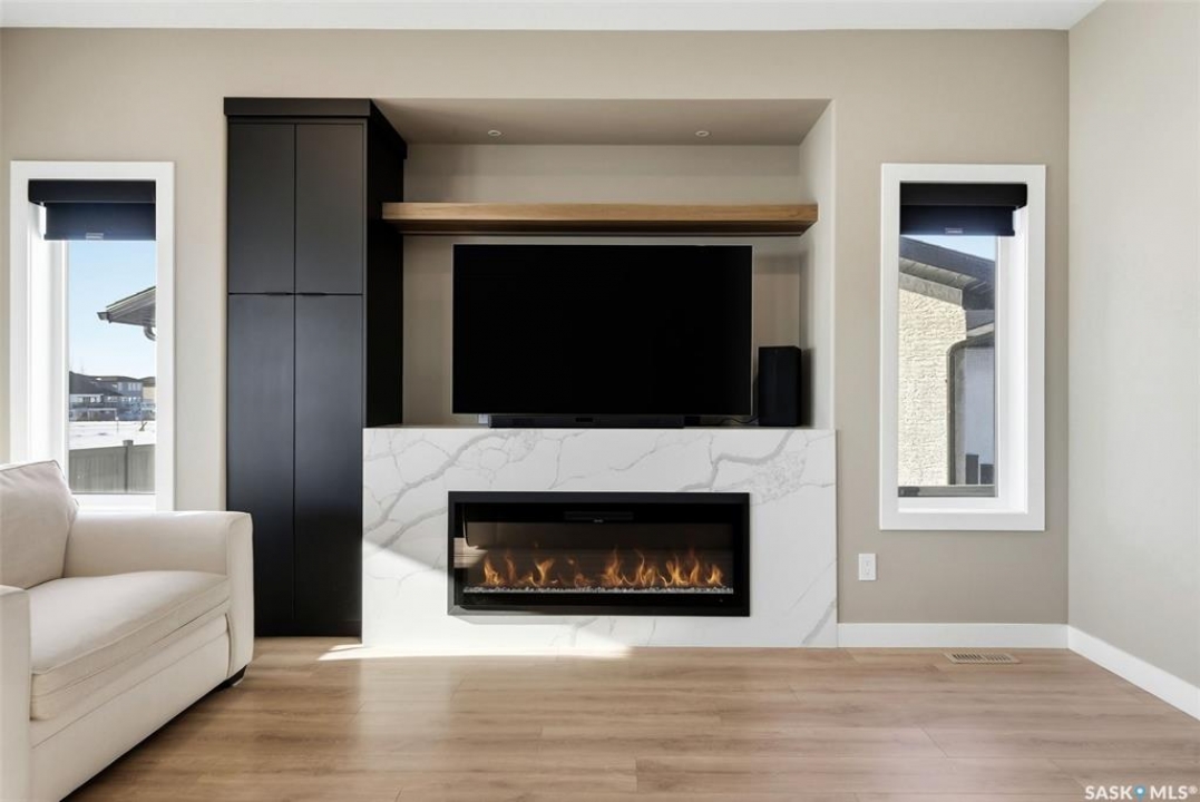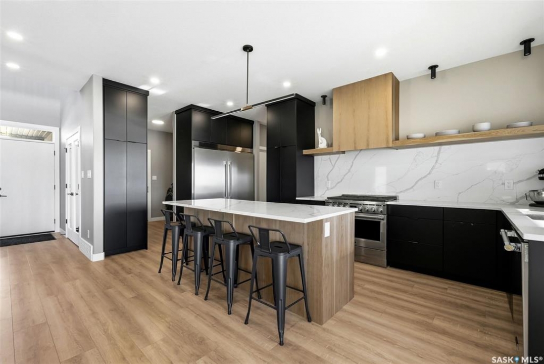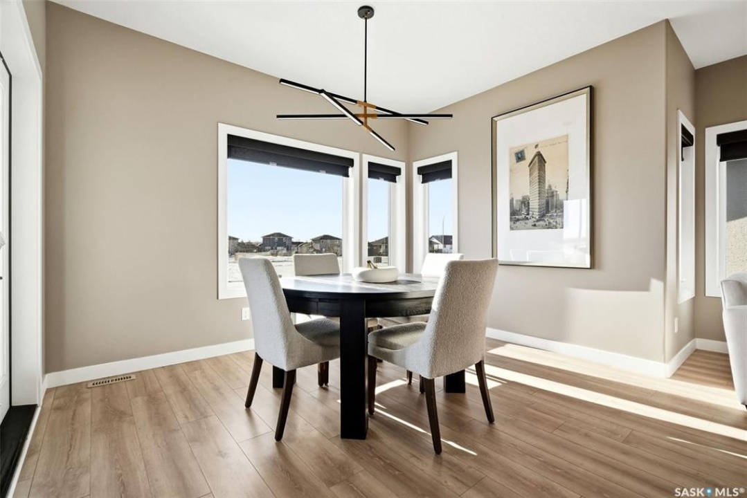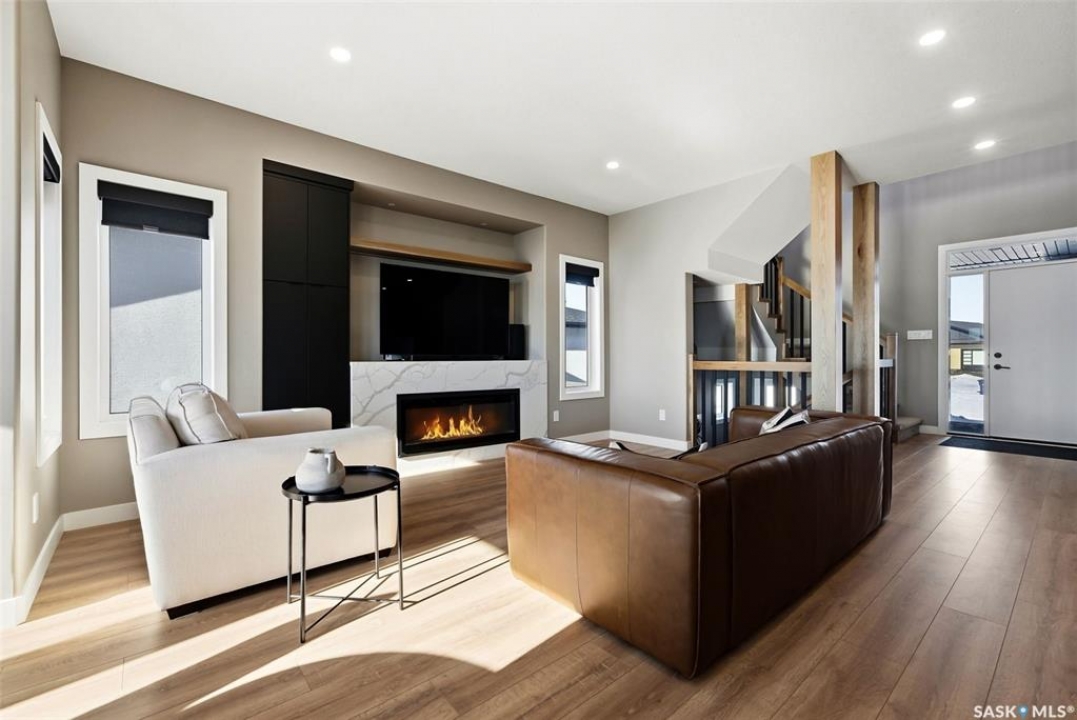 Welcome to 13 Plains Green, a stunning 2025 custom-built Scandinavian modern home located in the sought-after community of Pilot Butte. This thoughtfully designed bunga-loft style two-storey blends modern architecture with warm, functional living. The home features a unique and highly desirable layout with a private primary suite upstairs, creating a peaceful retreat complete with a spacious bedroom and spa-inspired ensuite. On the main floor, you'll find two additional bedrooms, ideal for family, guests, or a home office; perfect for those seeking main-level living without sacrificing space. Designed with intention and quality throughout, the home features 9' ceilings on all three levels, enhancing the sense of space and light. Clean lines, expansive windows, and a neutral Scandinavian palette fill the open-concept main living area, making it ideal for both everyday living and entertaining. The chef-inspired kitchen is equipped with a 6-burner gas range and a double-wide, side-by-side refrigerator and freezer, combining style with serious functionality. The home is solar power ready and includes a natural gas BBQ hookup, offering future-forward efficiency and convenience. Step outside to a covered back deck, perfect for year-round enjoyment, all within a fully fenced yard—ideal for kids, pets, or private outdoor living. The north side of the lot offers additional space, well-suited for a large shed or other desired use, adding flexibility and future potential. An extra-wide concrete walkway leads to the front door, enhancing curb appeal and creating a welcoming first impression. A triple attached garage provides ample space for vehicles, storage, and recreation. Located on a quiet street in a growing community just minutes from Regina, Pilot Butte offers small-town charm with city convenience. Modern. Functional. Timeless. 13 Plains Green is a rare opportunity to own a truly distinctive new build in one of Saskatchewan's most desirable bedroom communities.