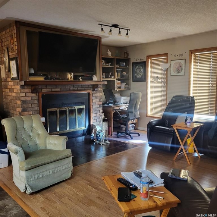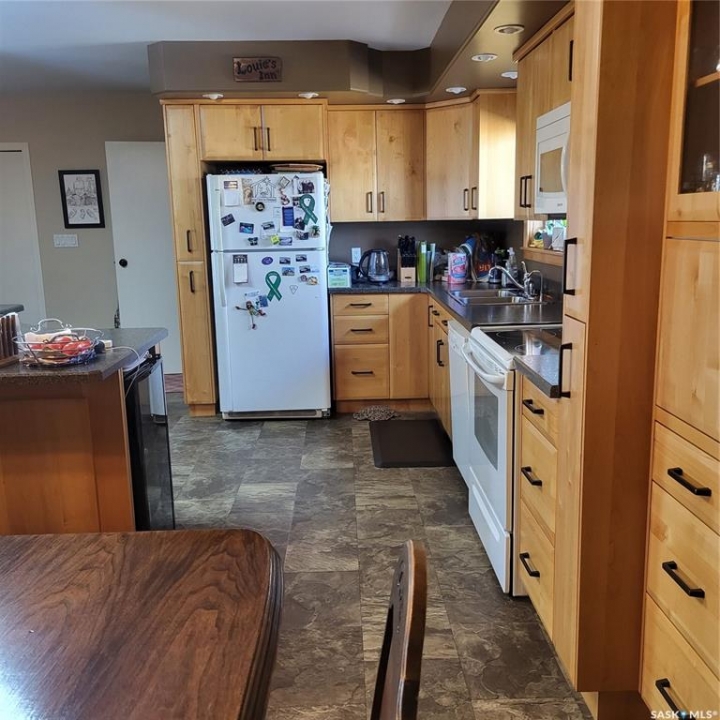 RM of Cana #214. Located only 7 miles east of Melville along Hwy #15 sits this beautiful quarter of land with an immaculate 11 acre yard site. The sellers are the original owners and built the house and developed the yard site. The house hade double 2" x 4" walls, newer triple pane PVC windows, stucco exterior, custom built kitchen cabinets, wood fireplace and composite decking on both decks. there are 3 bedrooms on the main floor plus another bedroom in the basement. the master bedroom also has a 2 pc ensuite. The laundry room is conveniently setup at the back entrance. The basement is fully developed with a huge family room, wet bar and another bathroom. The property is hooked up to the Yorkville water pipeline for an excellent water source. there is also a large dugout with a well beside it and has a pressure system in the house and can be used to water the garden and lawn area. The 28' x 32' garage has matching stucco finish with the house and has power and cement floor. There are numerous garden sheds, some with power, for extra storage. The fire pit area has brick walk way, with a TV stand and is well sheltered with trees and shrubs. The balance of the attached quarter has 151 acres of good quality cultivated grain land.