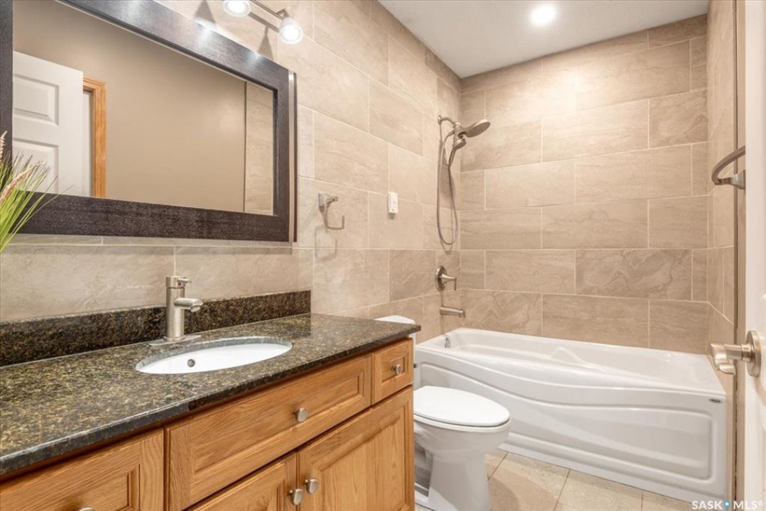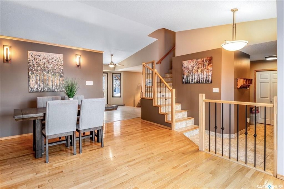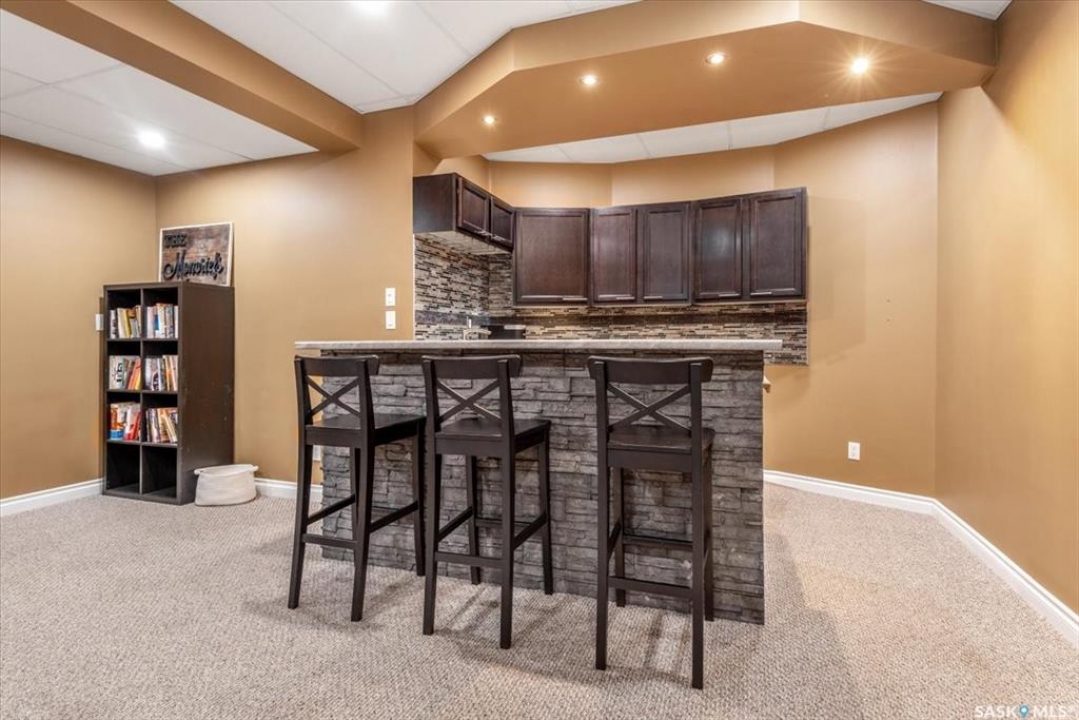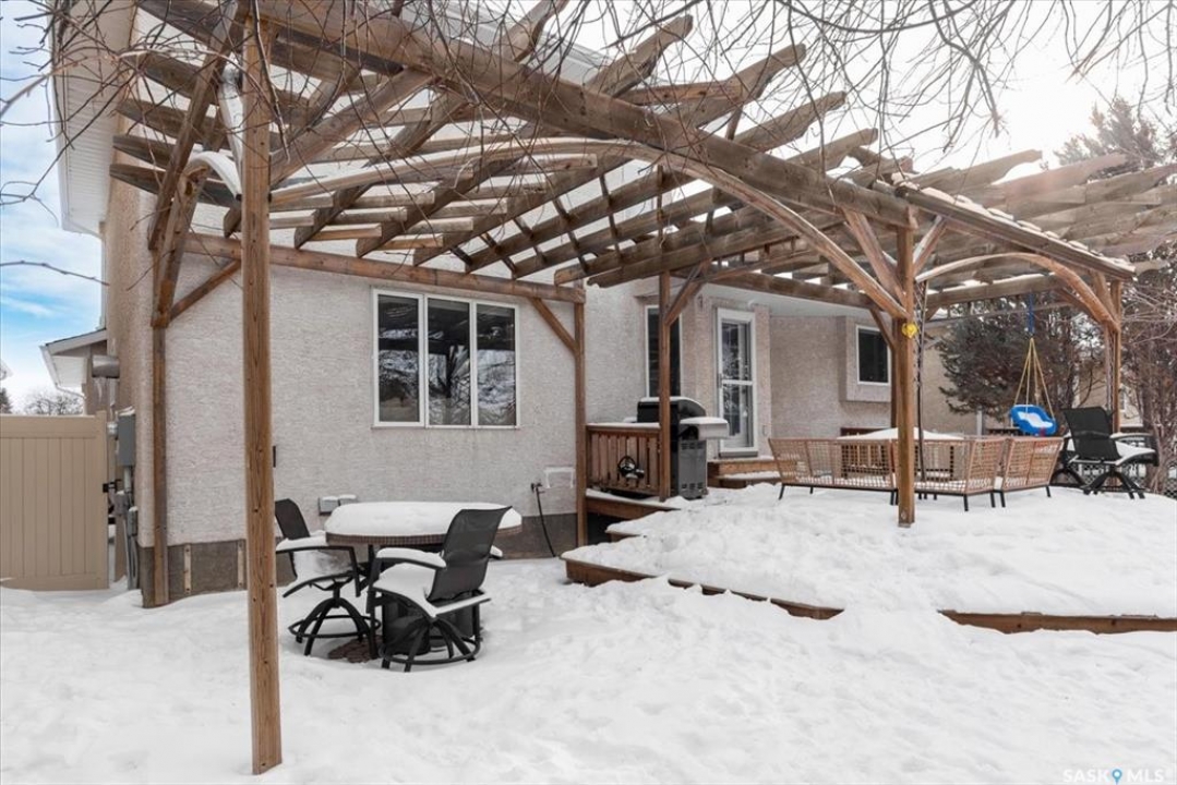 Welcome to 2916 Wimbledon Drive, located in Windsor Park one of Reginas most sought after neighbourhoods. Just steps from scenic walking paths, parks, and walking distance to schools.Set on a quiet, safe, family friendly street, the home offers an exceptional blend of lifestyle, comfort, and longterm value.Inside this 1837sqft home showcases thoughtful updates and warm character throughout.Vaulted livingroom ceilings and hardwood floors give a warm and welcoming feel.The beautifully renovated kitchen features rich charcoal cabinetry, striking raw-edge granite countertops, appliances package and in floor heat. A sunken, cozy living room anchored by a stunning stone fireplace provides an inviting space to unwind, while the bright front room with bay windows and a skylight offers an abundance of natural light and the perfect spot for morning coffee or quiet moments. Convenient main floor laundry complete the main level. Upstairs, you'll find four spacious bedrooms, including a serene primary suite with east-facing windows, a generous walkin closet, and a private ensuite.Heated floors in every bathroom add a level of comfort rarely found.The main bathroom has been tastefully updated, and the large bedrooms have been refreshed. The fully renovated basement is an entertainer's dream, ideal for hosting family and friends or a space for the kids to play. Complete with a stone brick wet bar, fireplace, large games or pool table area, additional spacious bedroom, a bathroom with heated floors, and extra storage space complete the home.The backyard is a true private oasis, centred by a large pergola and surrounded by mature trees that create a peaceful, park-like setting with exceptional privacy, a rare find in the city. An amazing family home polished, welcoming, and exceptionally well cared for, this home offers an unbeatable combination of location, layout, and luxury. Please contact your real estate professional for more information or to schedule a private viewing today!