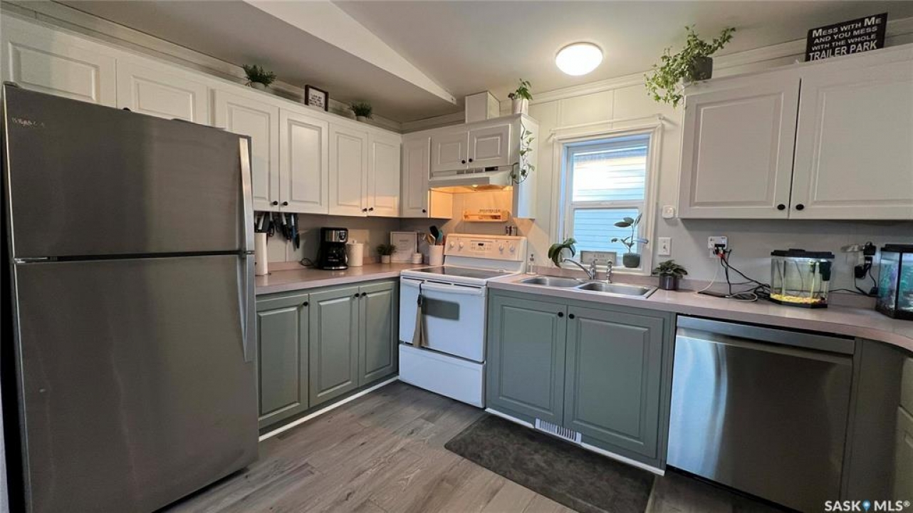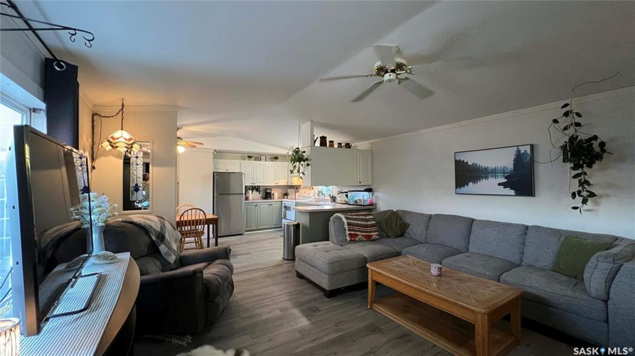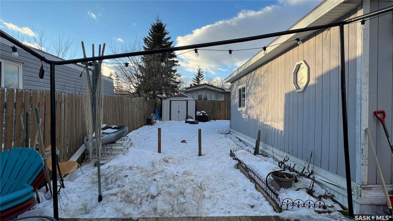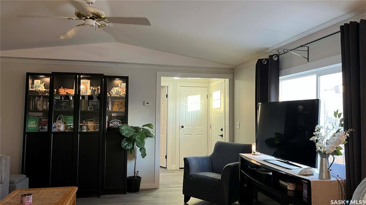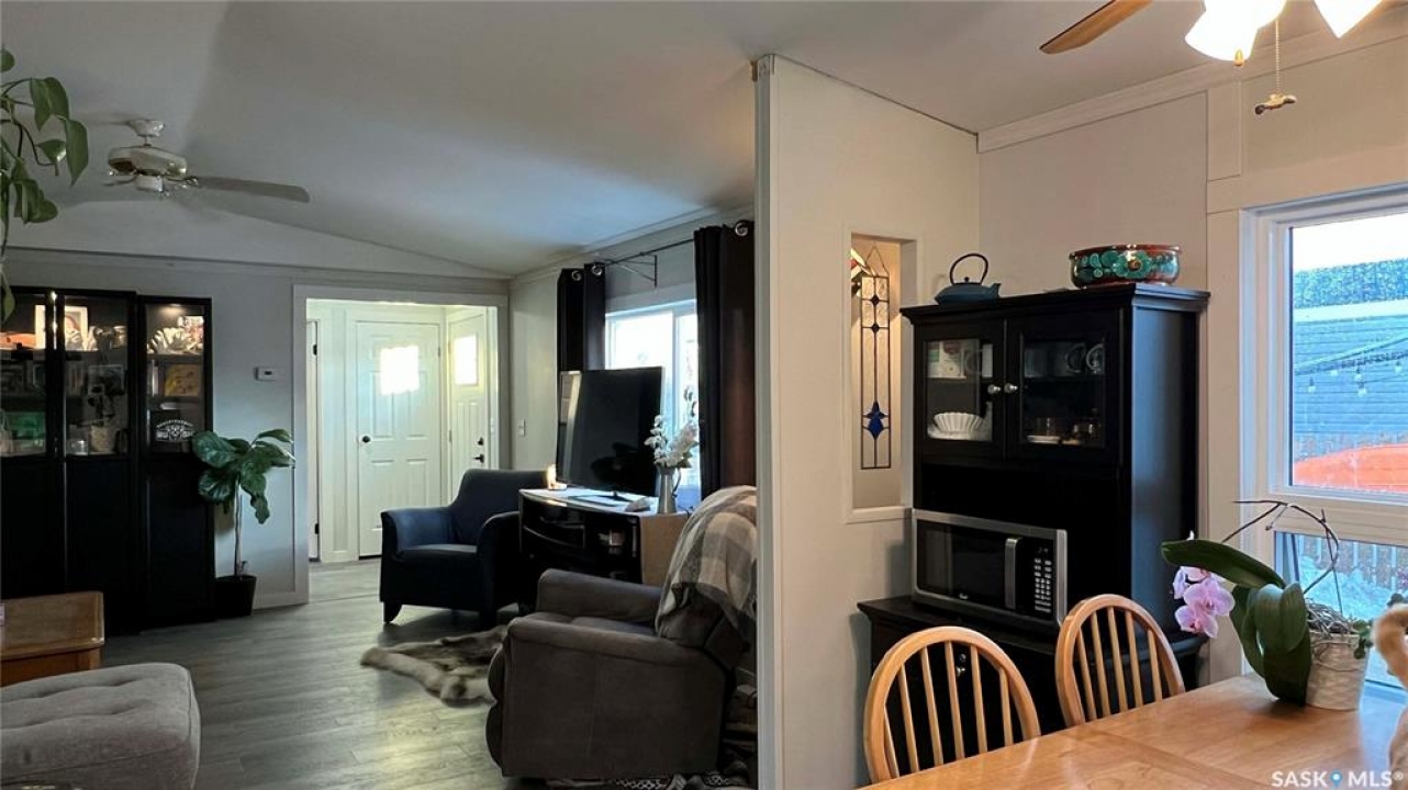 Your next chapter awaits at Sunset Estates! This move in ready mobile located 15 minutes from Costco on HWY 5 provides a warm and inviting feel. The owners have re-faced the entire inside of the home to provide a modern look and updated appliances help a buyer to feel at home. The water heater was replaced 2025 and the furnace is maintained original. The completed addition provides a porch and an extra bedroom for guests and growing families. The property is close to all the amenities of the city, while giving peace and quiet outside the city. The school bus runs to Clavet school and the park is home to many seniors and young families. Sellers are motivated to give quick possession! Book an appointment today!