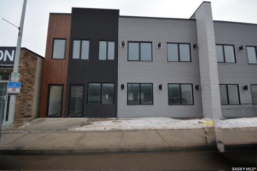 Located in Regina's vibrant Warehouse District, 1143A Winnipeg Street offers a modern and versatile commercial leasing opportunity in a building completed in 2023. This contemporary property features clean lines, appealing street-facing fronts, high visibility with excellent Winnipeg Street exposure, and a prominent storefront with excellent signage opportunities. The space is well suited for a variety of uses, including a personal training gym, massage therapy clinic, architectural firm, or other professional, wellness, or creative businesses. Tenants may lease both levels—comprised of a 960 sq ft main floor and an 870 sq ft second level—for a total of $2,500 plus GST per month, or lease a single level for $1,328 plus GST per month. Easy access from major roadways and public transit enhances convenience for both clients and staff. All utilities are included under standard operating use, providing predictable monthly costs. This is an excellent opportunity to establish a strong presence in one of Regina's most sought-after and high-traffic districts.