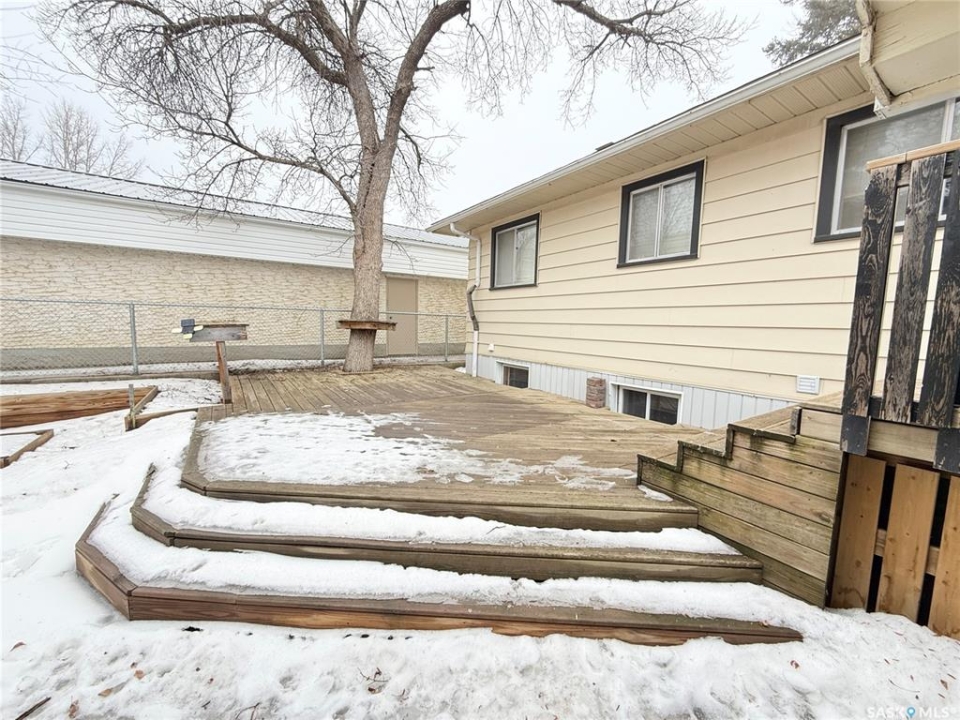 Welcome to 223 4th Street, right in the heart of downtown Weyburn! This home features a modern, updated kitchen with stylish cabinetry, countertops, and stainless steel appliances. Just off the kitchen is a bright, cozy living room, plus two good-sized bedrooms and an updated 4-piece bathroom on the main floor. Downstairs offers extra space for the family with a rec room for the kids, a third bedroom, a renovated 3-piece bathroom, and laundry with plenty of storage. Out back, you'll love the private, fully fenced yard—perfect for pets—complete with a two-tiered deck, shed, single garage, and a great fire pit area for relaxing evenings. Priced right and move-in ready, this is one you'll want to see. Call your favourite agent to book a showing!