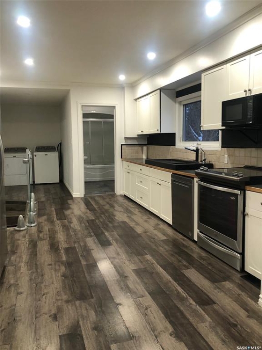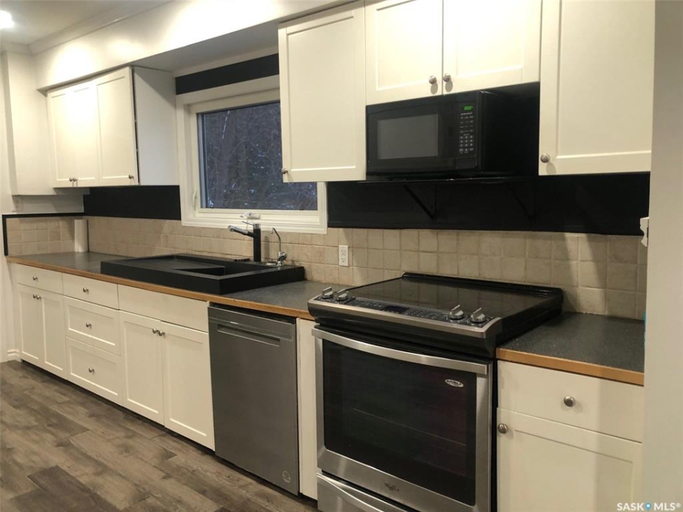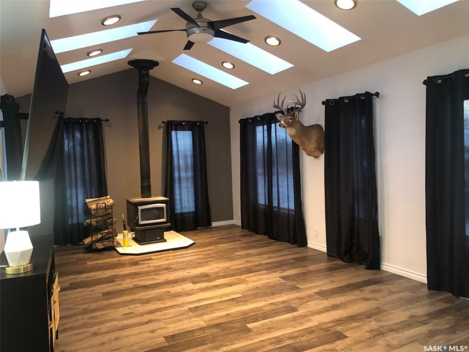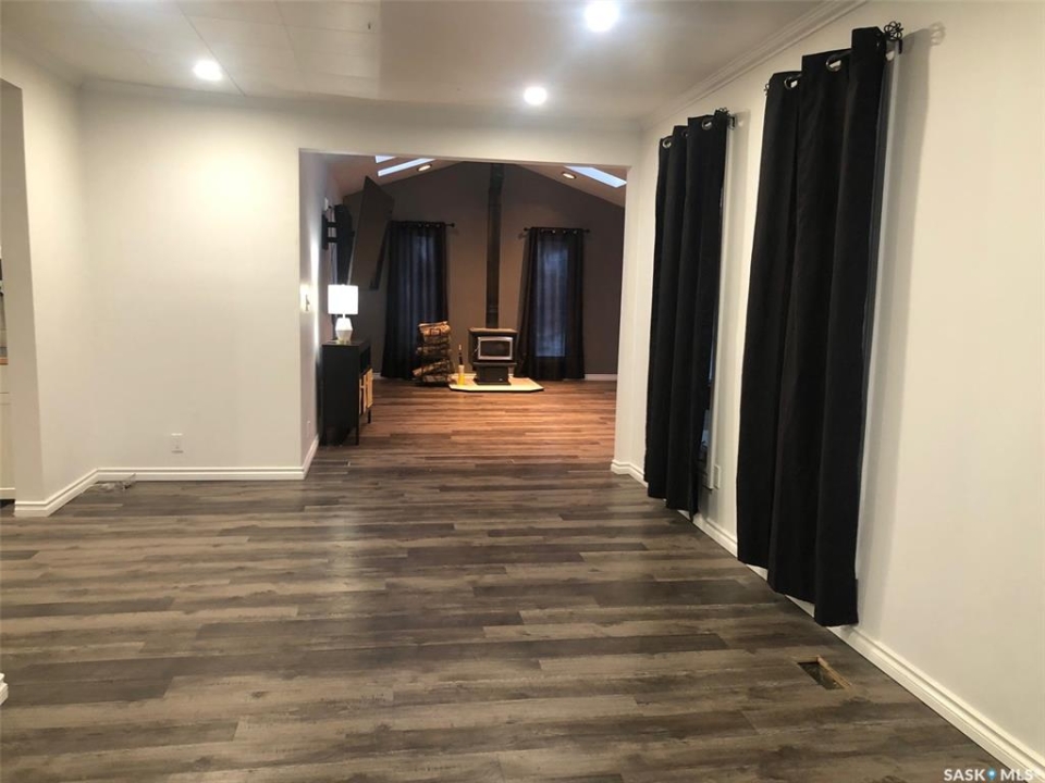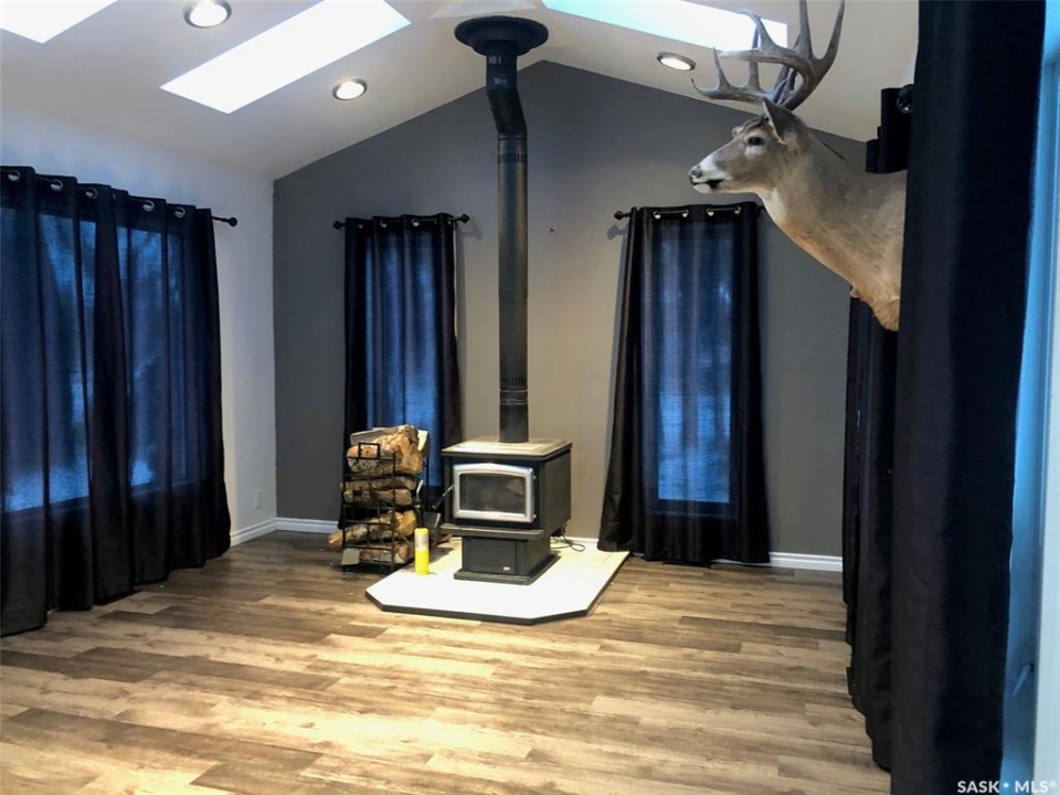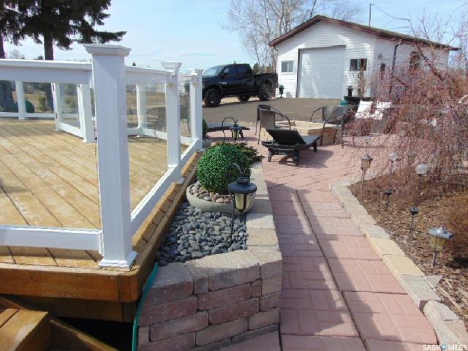 PARADISE AWAITS YOU IN THE TOWN OF NORQUAY SK!... Welcome to 224 Service Road. Upon arrival you are greeted to an exquisite design and unique parklike setting capturing beauty with modern day design. Do you dream about having a luxurious back yard with a state of the art patio area? This beautiful oasis is sure to tick off all the boxes boasting professional landscaping and meticulous design throughout! The spectacular views can be viewed along the edge of town on an elevated massive lot measuring 75' x 234'. Upon entry quality meets your eye... a spectacular wrap around deck, glass railing with a custom patio/firepit finished in quality stone, barkman products and tall majestic spruce trees that overlook the lush greenery of such a dreamy escape!. The backyard expands way back to an orchard of cherry, grape, saskatoon and apple trees as well as the detached 20 x 30 insulated garage with automatic garage door opener. Inside enjoy the fresh and brightly lit interior that features vaulted ceilings and skylights while cozying up to the wood burning fireplace. A large foyer upon entry connects to the open concept design leading to a state of the art functional kitchen featuring stainless steel appliances, built in dishwasher and Blanco Modex M60 granite sink. The main floor has been extensively updated with new paint, flooring, triple pane windows, kitchen cabinets, electrical, lighting, patio doors, and added insulation. Featured is main floor laundry and a second laundry facility in the basement. With 2 bedrooms, 2 baths and 1,156 square feet of living space this would make a great starter or retirement home. Norquay provides all basic amenities; k-12 school, gas station, grocery & hardware store, restaurants, and much more! One must view to appreciate, call for more information or to schedule a viewing. Taxes:$2,200/year. Heating; Natural gas/forced air; RO town water and town sewer.