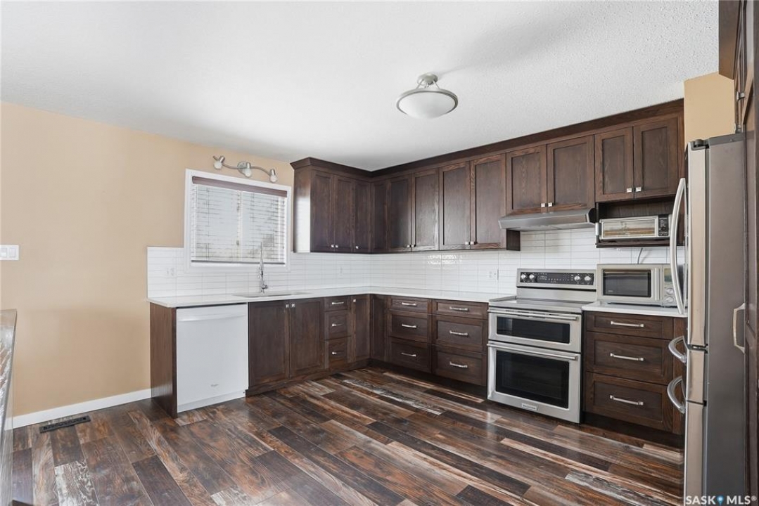 Great Family Home in Martensville! This 1,140 sq ft, 4-bedroom bungalow offers a bright and open floor plan. Step into a spacious entry and a large living room open to a beautiful kitchen featuring newer cabinets, quartz countertops, a pull-out pantry, and stainless steel appliances. The generous dining area has garden doors to the deck, perfect for outdoor entertaining. The primary bedroom includes a walk-in closet, and the main bathroom has been upgraded with a soaker tub and a freestanding shower. The lower level just needs some finishing touches but already includes a large family room, two bedrooms, a bathroom foundation, laundry and plenty of storage. Outside, you'll enjoy a lovely large mature yard, a wraparound deck, and a double drive-thru garage. This well-maintained home has seen many recent improvements, including a newer kitchen and bathroom, newer flooring, shingles, deck, water heater as well as upgraded windows and a maintenance-free exterior. An excellent location in Martensville!