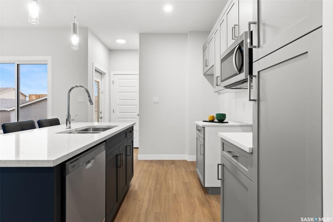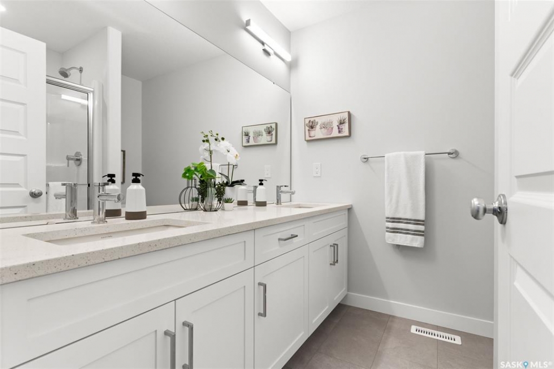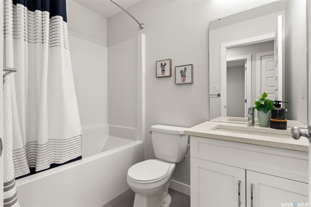 Welcome to “The Ashwood” by premier builder Ehrenburg Homes, located in the desirable Eastbrook community. This thoughtfully designed two-storey home offers 1,404 sq. ft. of above-grade living space and showcases quality craftsmanship with modern finishes throughout. The main floor features an open-concept layout ideal for entertaining and everyday living, finished with vinyl plank flooring. A welcoming living room greets you with a stylish electric fireplace as a focal point. The contemporary kitchen is designed for functionality and flow, featuring a central island with eating bar, ample cabinetry, and a seamless connection to the dining area—perfect for family gatherings. A convenient 2-piece bathroom completes the main level. Upstairs, the primary bedroom includes a walk-in closet and a private 4-piece ensuite. Two additional well-sized bedrooms are complemented by a full 4-piece bathroom, while a comfortable bonus room provides flexible space for a family lounge, playroom, or home office. The second-floor laundry adds everyday convenience for busy households. The basement is unfinished, offering excellent potential for future development such as a recreation room, gym, or additional bedroom. The home is built with wood-frame construction, a forced-air natural gas furnace, and a gas water heater, ensuring efficiency and comfort. Outside, enjoy a double detached garage, underground sprinkler system, and a manageable lot—perfect for low-maintenance living. The home is currently under construction, with possession to be determined upon completion. Backed by the Saskatchewan New Home Warranty and Ehrenburg Homes' reputation for quality, The Ashwood delivers a perfect blend of style, function, and peace of mind. PST & GST are included in the purchase price.