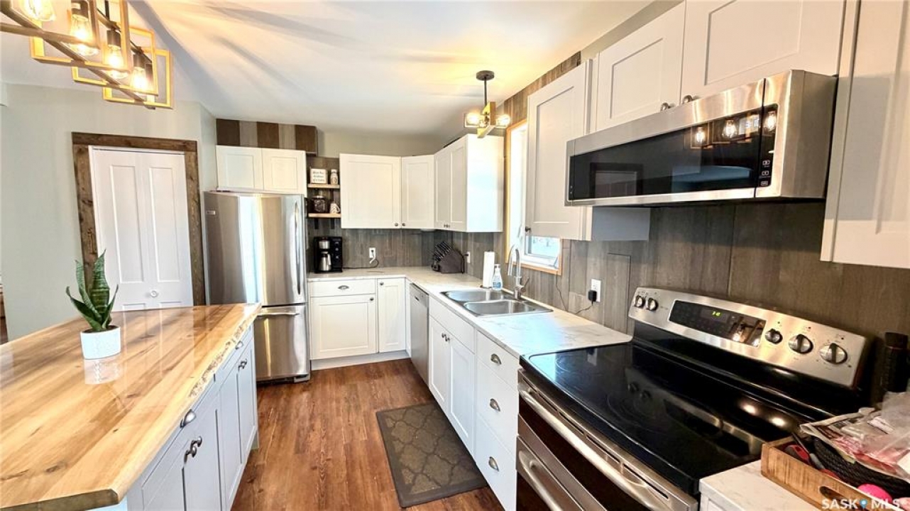 80 ACRES with Updated CHARACTER HOME, Outbuildings & PRODUCTIVE FARMLAND This versatile 80-ACRE FARM PROPERTY with G soil rating offers strong potential for HOBBY FARMING, livestock farming, or rural living with income opportunity. The cultivated land was seeded to wheat in 2025 and could be rented to offset annual costs. The UPDATED 1,340 sq. ft. CHARACTER HOME retains its original charm and features two mudrooms (one with MAIN FLOOR LAUNDRY and nearby 3-piece bath), an upgraded country kitchen with STAINLESS STEEL APPLIANCES, island, open shelving and coffee bar, formal dining area, LARGE LIVING ROOM with play area, and an additional bedroom/office/den. Upstairs offers two more bedrooms and a renovated bathroom, with original hardwood floors, staircases, banisters, and storage. Updates over past several years include GEOTHERMAL HEATING AND COOLING with back-up electric heat if needed, ON DEMAND HOT WATER HEATER, windows, insulation and siding, PEX water lines, drilled well (2008), underground power, and metal roof on house and garage. Outbuildings include a LARGE BARN and heated, insulated double detached garage with concrete pad. Treed yard-site provides shelter, privacy, and ample garden space. CONVENIENTLY LOCATED: 19 km to Outlook or Dinsmore (school access), 9 km to Macrorie, 16 km to Lake Diefenbaker, and approx. 1.5 hrs to Saskatoon. A rare, WELL-ROUNDED RURAL PROPERTY offering lifestyle, land, and income potential. Directions: West of Outlook on HWY 15 to Surbiton Rd; Turn left (south) at directional realtor sign and head approx 15 km south on Surbiton Rd; Turn left at realtor sign, then left at end of shared road.