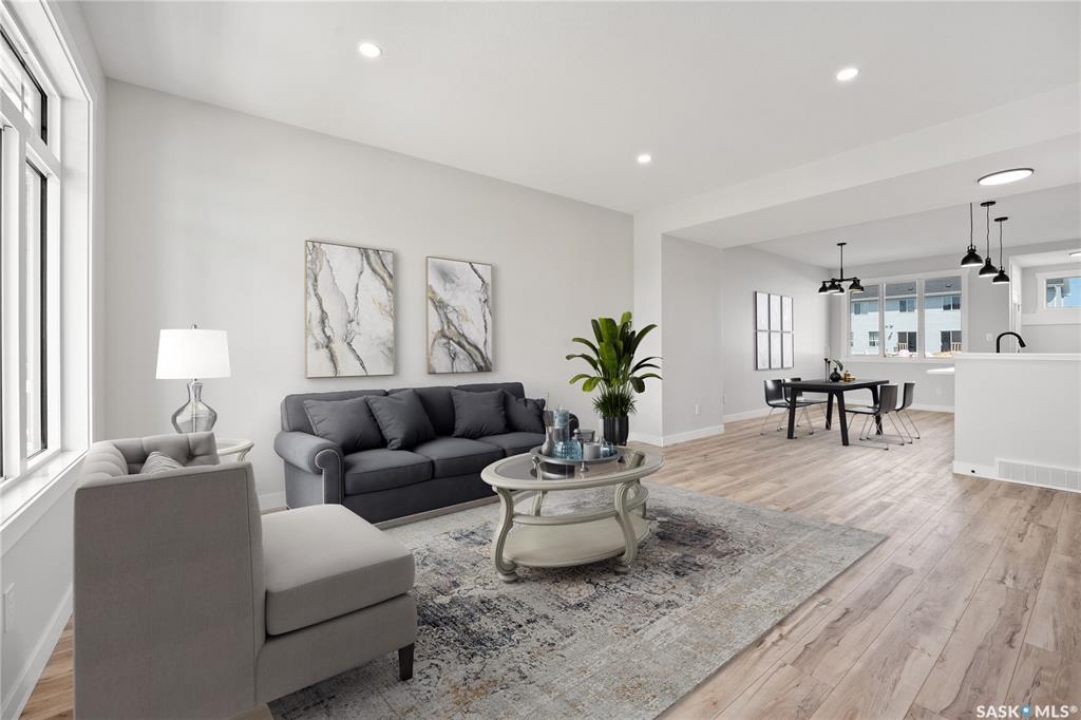 Please note: This home is currently under construction. All images shown are for reference purposes only. Discover the Talo — now offered at a new price and including a full appliance package featuring a fridge, stove, built-in dishwasher, microwave hood fan, washer, and dryer. This thoughtfully designed 1,457 sq ft single-family home balances comfort and functionality. The main floor features an open-concept layout centered around a spacious kitchen island that seats up to six and flows seamlessly into a bright, welcoming living area. A practical rear entry with built-in bench and coat hooks adds everyday convenience, also offering an optional side entry. Upstairs, the layout is efficient and well planned. The primary bedroom serves as a private retreat, while two additional bedrooms are positioned on the opposite side of the home. A flexible bonus space and upper-level laundry sit between them, creating excellent separation and a natural flow. This home is perfectly situated for families and those who value community-focused living. A double concrete garage-ready pad completes the package, setting the stage for your next chapter.