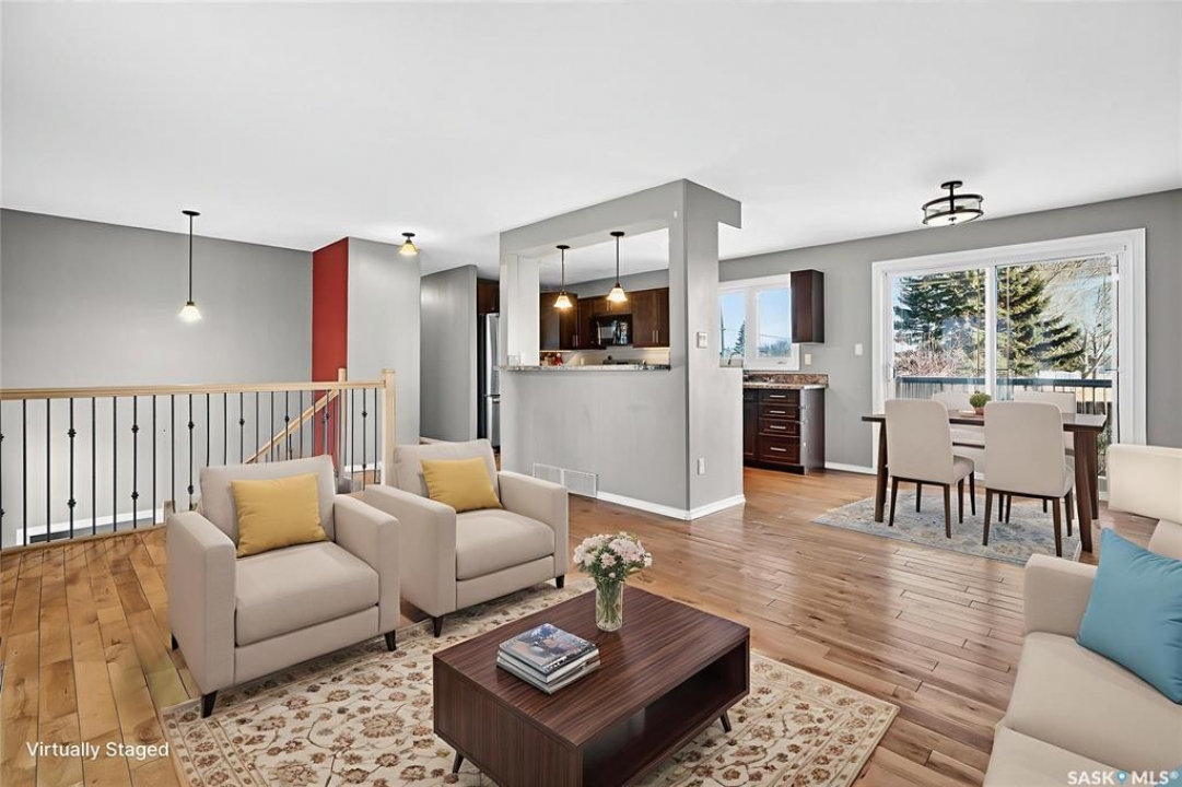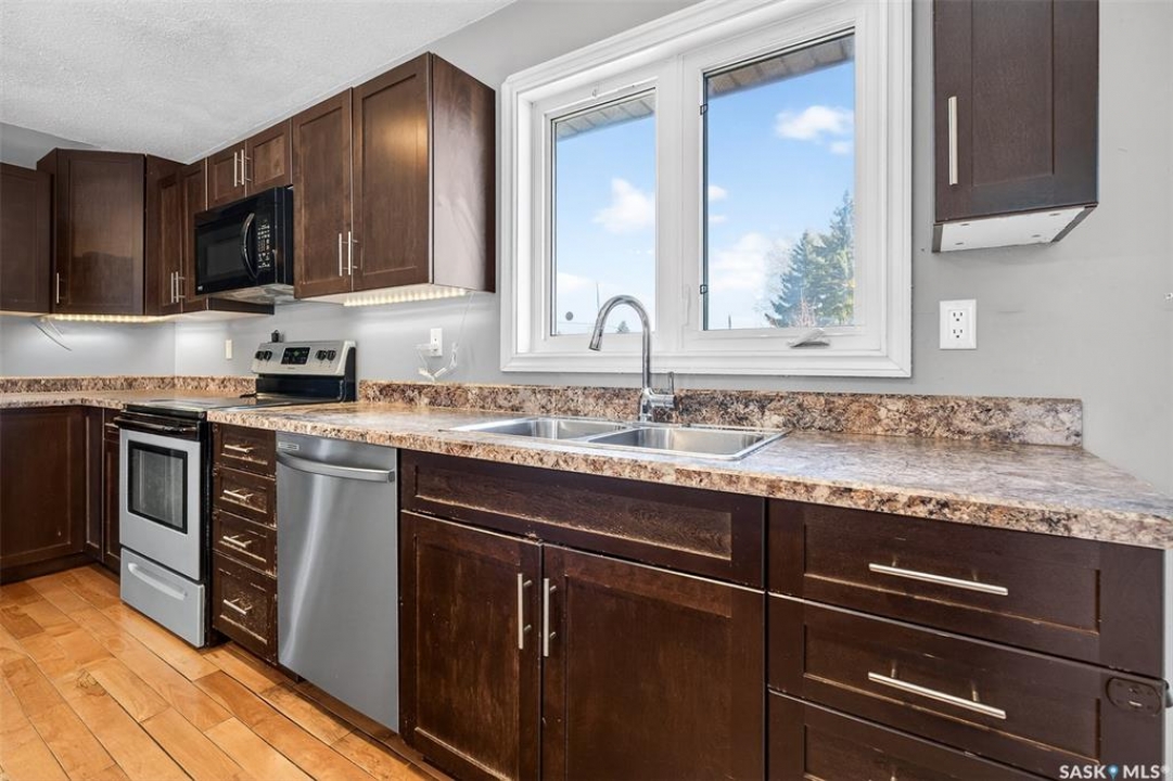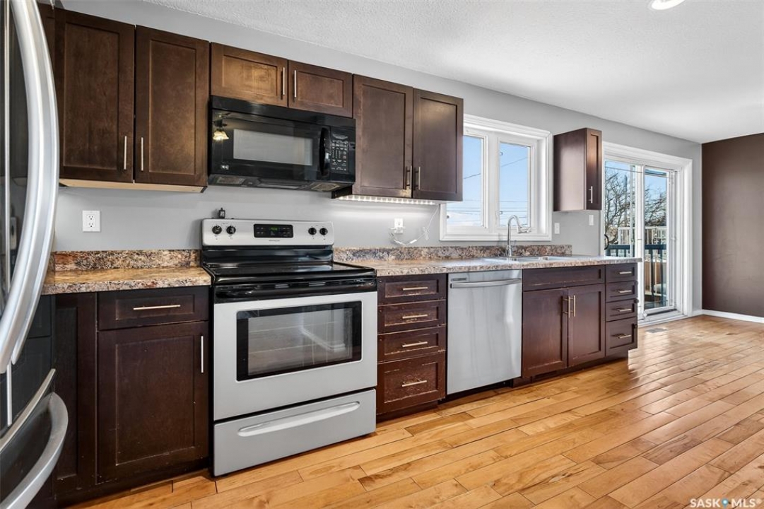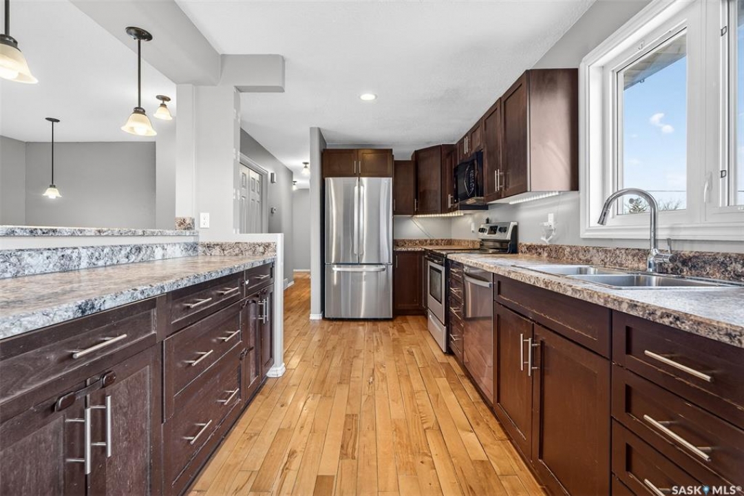 You won't want to miss this one! This 5 bed, 2 bath bi-level showcases more than 1,000 sq.ft. of living space complete with a walk-out basement suite. This home shows well as you walk-up and you are sure to love the location where you back a park! Heading inside you find we are greeted with a spacious open concept living area boasting hardwood running throughout the main floor! The large living room has a large west facing window providing lots of natural light! The kitchen is sure to be a hit - lots of counter and cabinets, a newer stainless steal appliance package and an island with an eat-up breakfast bar. Next we have the dining space with patio doors leading to your huge deck - very relaxing and nice views of the green space behind you! Down the hall we find a spacious 4 piece bath along with 3 bedrooms on the main floor! Heading to our walk-out basement we find our second suite. There is a spacious living room and open concept kitchen and dining area. Down the hall we find 2 bedrooms, a second 4 piece bath and a good size laundry / mudroom by the walk-out door. There is also a utility and a storage space. Heading outside - the large backyard is fully fenced with lots of space for a future garage. Out front we have 2 off-street parking spots. Lots of updates to the home over the years. Rare to find an 80's bi-level with a walk-out basement and a suite down there. Reach out today to book your showing!