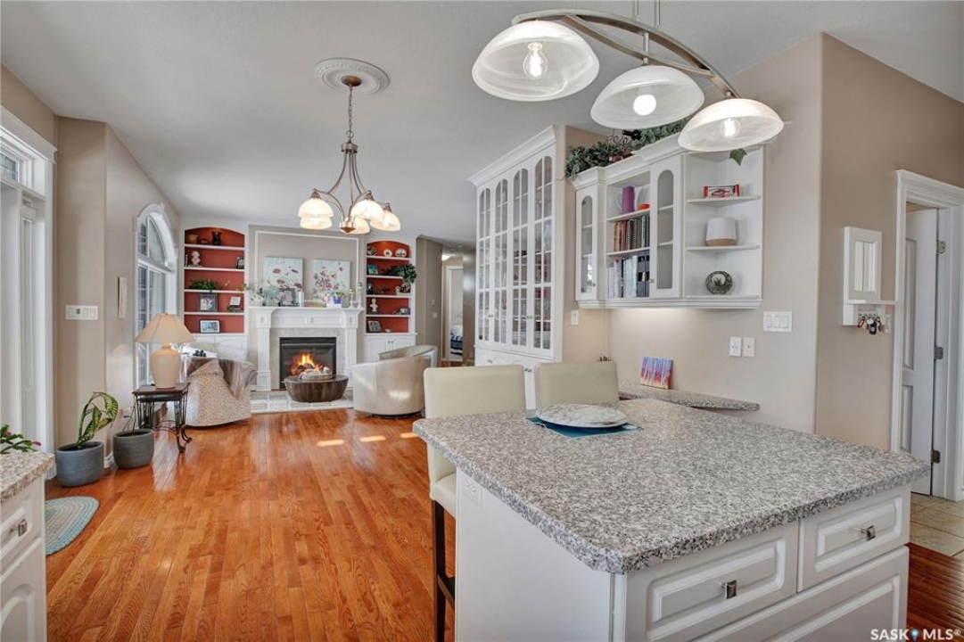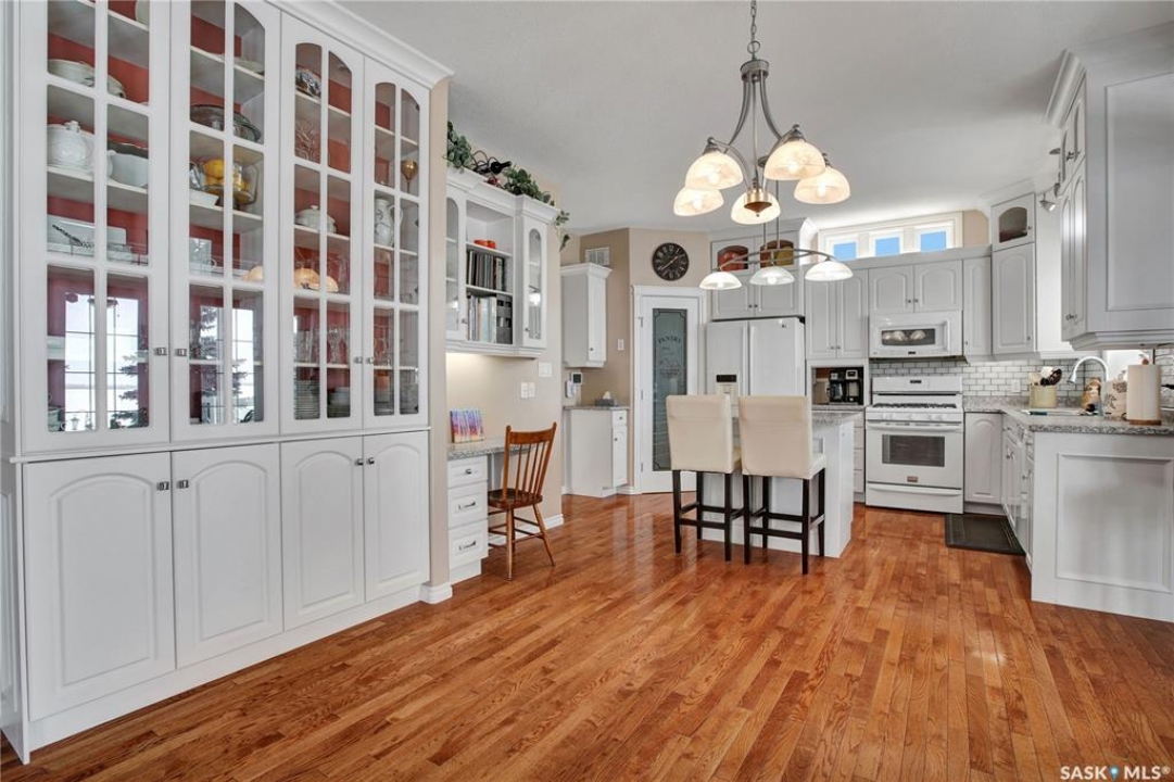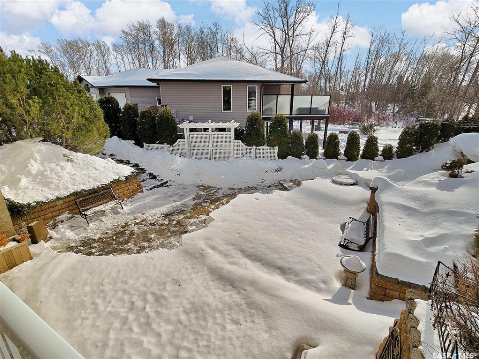 Welcome to this impressive 1,500-square-foot bungalow in Rosthern, thoughtfully designed for comfort, function, and style. This walkout home offers an elevated living experience with exceptional flow and natural light throughout. The main floor features two spacious bedrooms plus a dedicated office that easily adapts to your needs. A refined gas fireplace anchors the living area, creating warmth and atmosphere without overpowering the space. The well-appointed kitchen includes a gas stove, generous storage, and seamless connection to the dining area. Main-floor laundry adds everyday convenience and practicality to the layout. The attached 26x26 garage provides ample space for vehicles, storage, and hobbies. Downstairs, the walkout basement expands your living options with two additional bedrooms. A separate craft room offers flexibility for creative projects, work, or extra storage. The large family room is ideal for relaxing, entertaining, or accommodating guests. Step out to a beautifully treed and landscaped yard that feels both private and inviting. A dedicated firepit area enhances outdoor living and evening enjoyment. The covered west-facing deck backs onto wide-open spaces, delivering stunning prairie sunsets and peaceful views. Recent upgrades include a new boiler and air exchanger within the last year, ensuring efficiency and peace of mind. Located in a diverse and growing community, Rosthern offers a new composite school, 18-hole golf course, upgraded arena, swimming pool, vibrant downtown, and a new hospital in development, along with twin highway access to Saskatoon and Prince Albert.