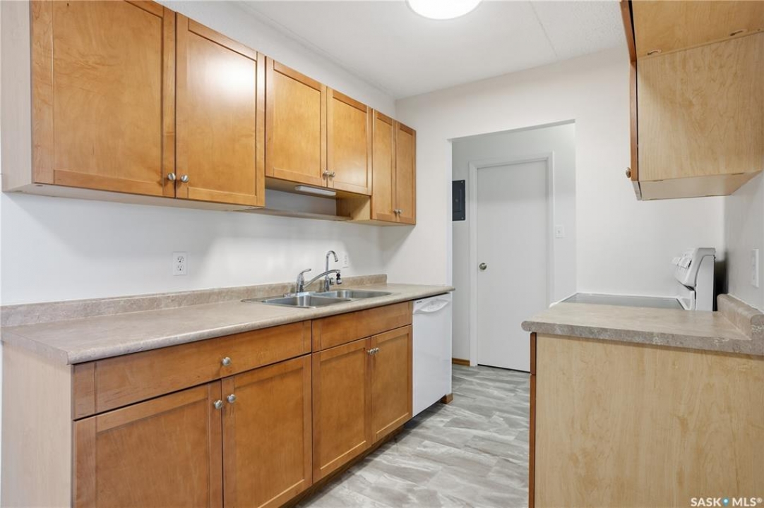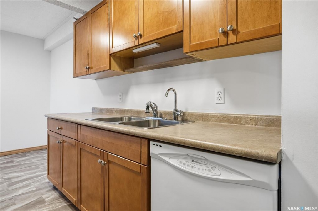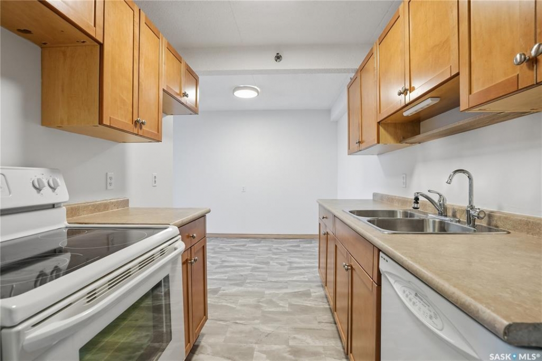 Located in the Atrium on Rae, this move in ready 1 bedroom condo comes with maple kitchen cabinets, dishwasher and stove included. This unit has an in-suite storage room, wall air conditioner and large West facing balcony. Shared coin operated laundry is down the hall. This unit comes with one covered parking stall. Condo fees include heating, water, sewer, garbage, common building insurance, common area maintenance, external building maintenance, snow removal, lawn care and reserve fund.
