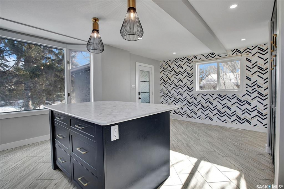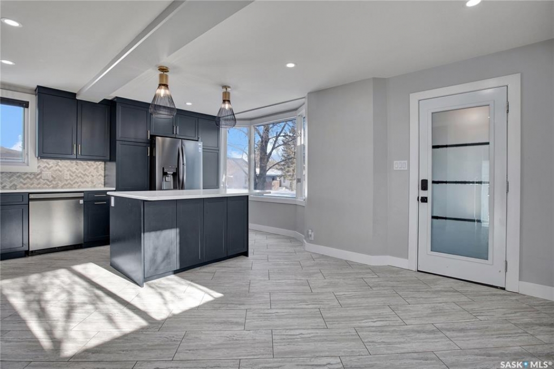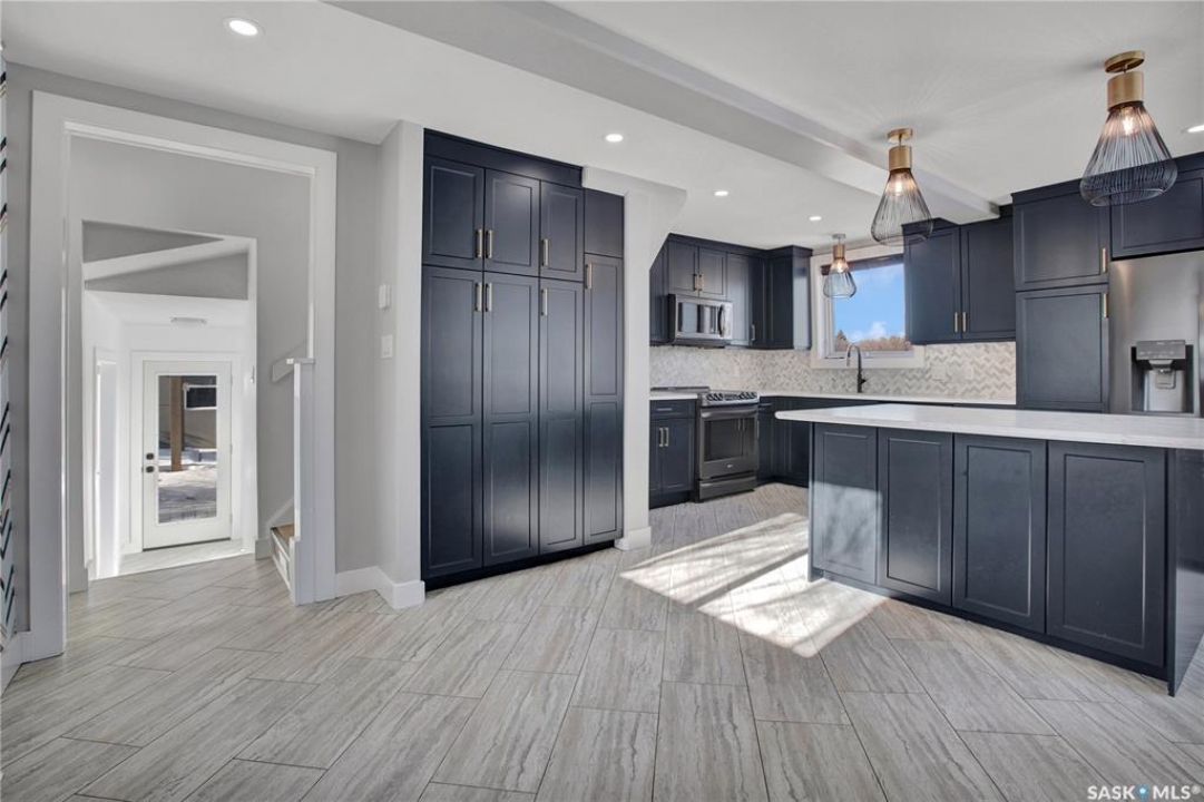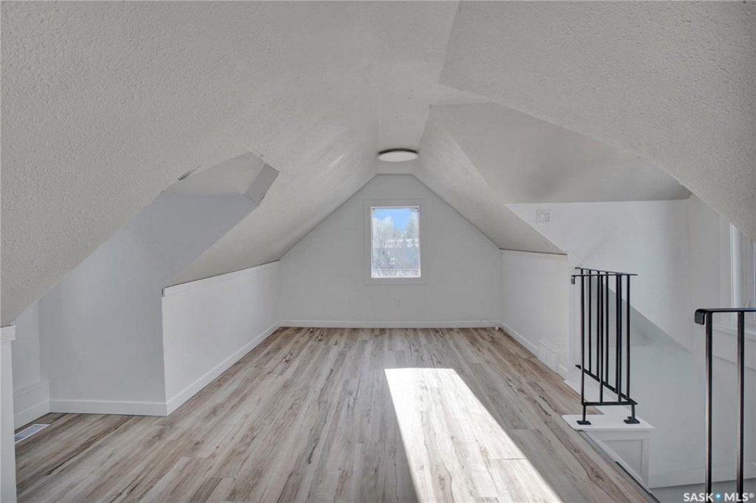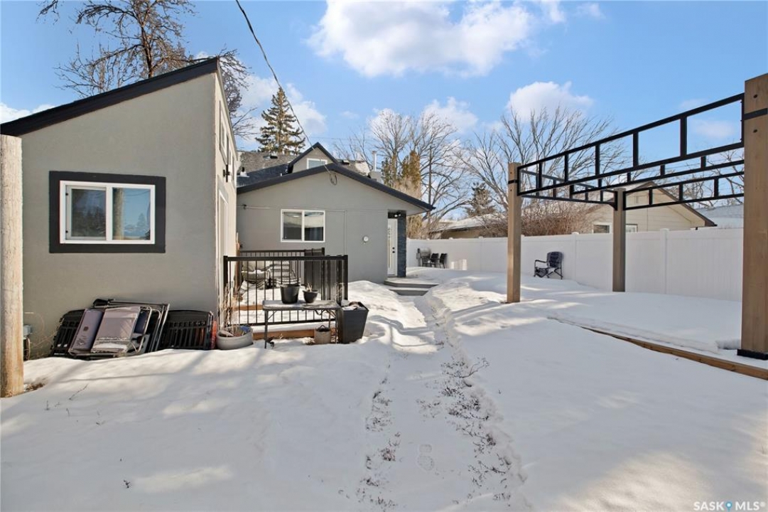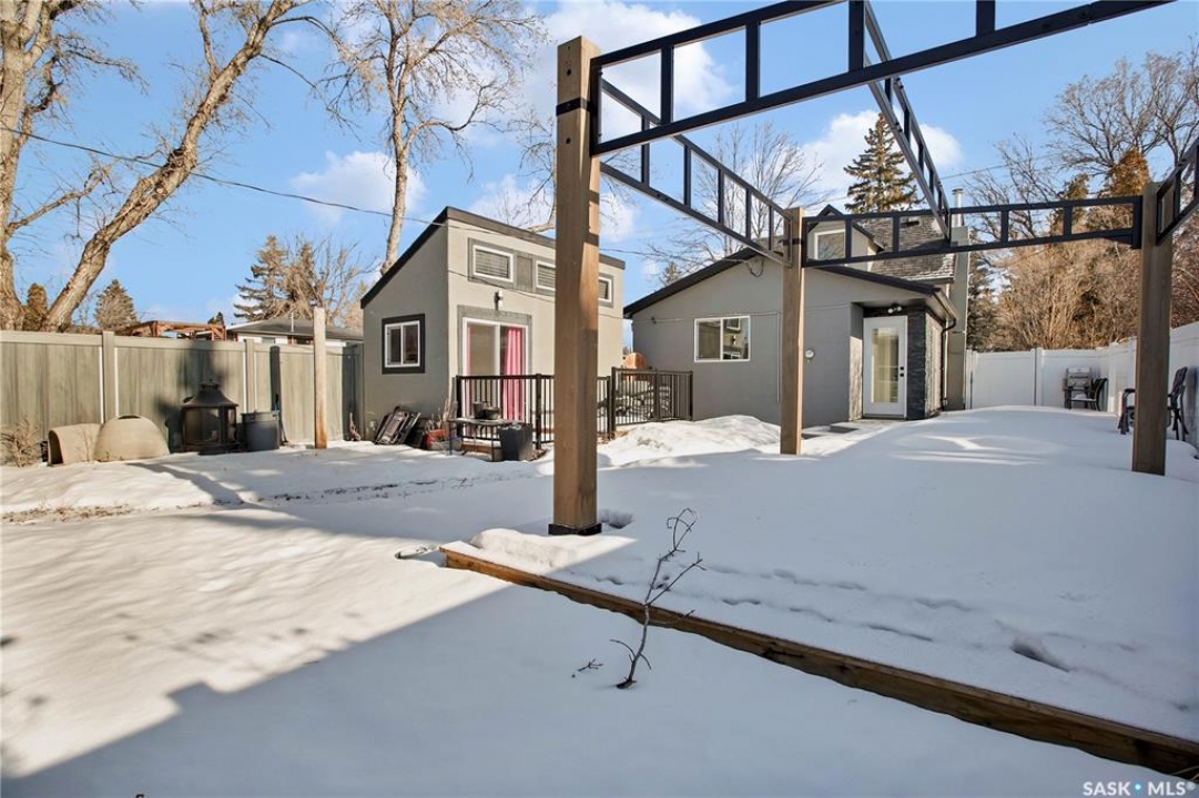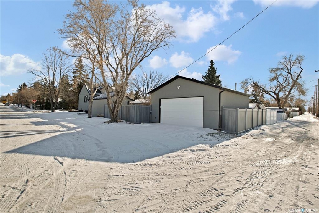 Wow — check out this extensively renovated, move-in-ready home in Hudson Bay Park. There is truly nothing left to do here but move in & enjoy. Set on a corner lot backing a park & dog park, this property offers privacy, functionality, & a level of finish that's hard to come by. Your huge dream kitchen awaits, designed for both everyday living & entertaining. It features designer cabinetry w full ceiling-height uppers, tile backsplash, built-in pantry, high-end appliances, & tons of counter space. The eat-up island flows into a spacious dining or lounging area, ideal for hosting family & friends. This approx. 900 sq. ft. 1.5-storey, 2 bedroom, 1 bath home is incredibly unique & tastefully updated throughout. Upstairs is a loft-style primary bedroom filled w natural light. The main floor also offers a second bedroom w large closet & custom built-in shelving. The renovated 4-pce bath features a granite countertop & 12x24 tile tub surround. Downstairs you'll find a great family or theatre space plus a dedicated laundry area. The home is set up for summer entertaining w patio doors leading to a large composite side deck & pergola. Man-cavers & mechanics will love the 24x24 heated garage w 10' ceilings. An additional heated flex building adds even more versatility — ideal as a home office, studio, or nail/salon space w vaulted ceilings & its own private deck. Extensive upgrades over the last 3-8 years include: 2” foam acrylic stucco, air conditioning, shingles, new garage, full kitchen reno w Superior Cabinets, updated electrical, insulation, drywall, plumbing & flooring on main level, renovated bathroom w Superior Cabinets, vinyl fencing, new driveway, heated flex building, composite deck, & newer doors & windows (excluding front bay window). You won't find many homes offering this level of quality & extensive renovations at this price point. Located close to parks, schools, & everyday amenities, this is a fantastic turn-key opportunity in an established neighbourhood.