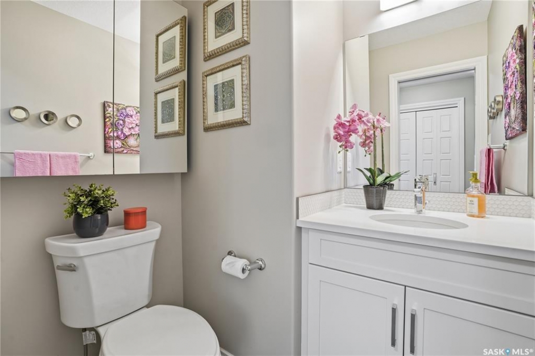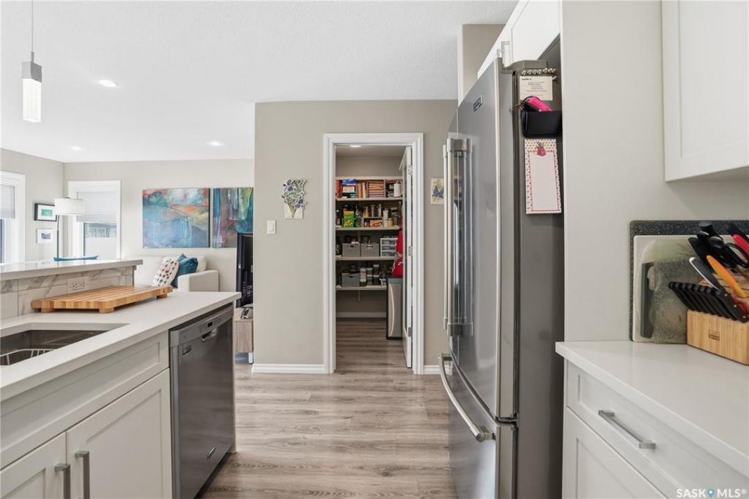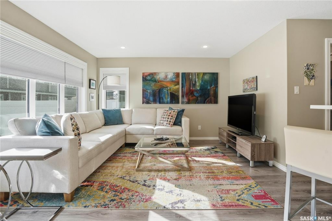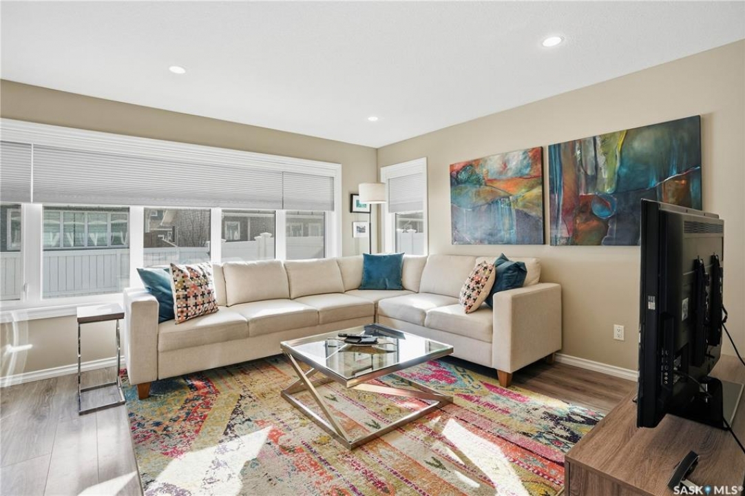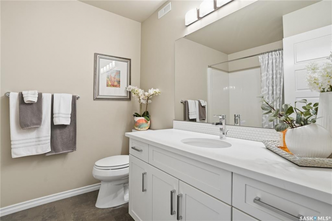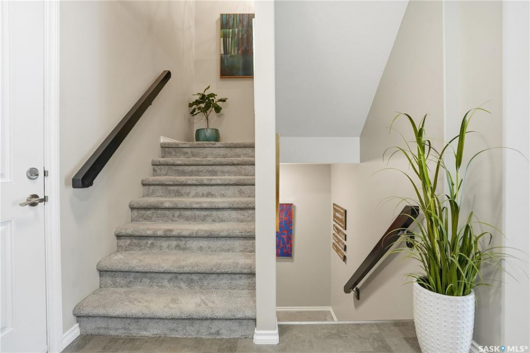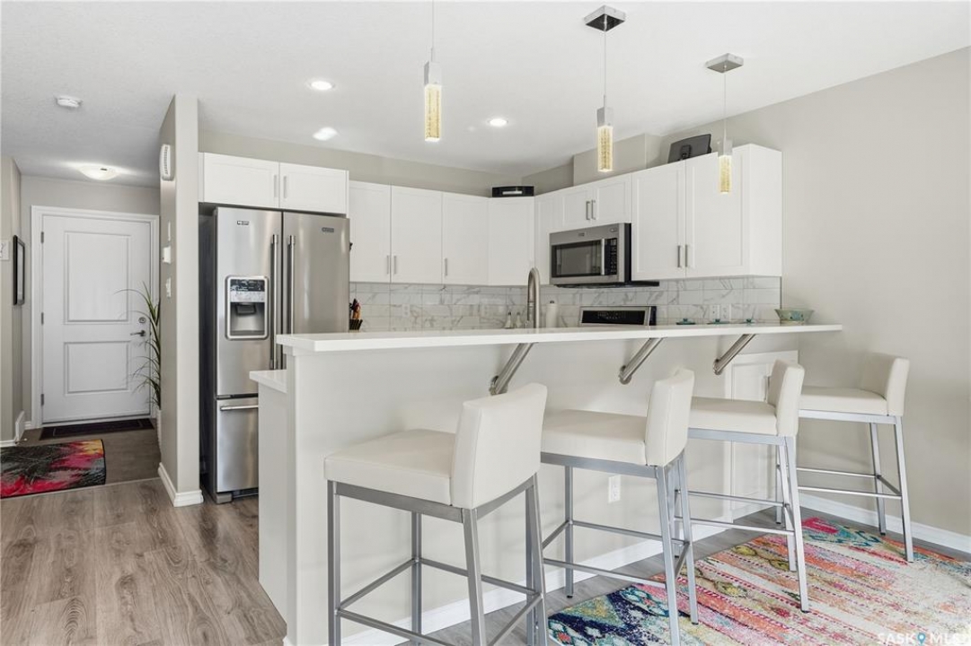 Welcome to 341-4000 Sandhill Cr. in the desirable & highly sought after Creeks neighborhood. This beautifully maintained townhouse features 1530 sq ft, was built in 2017, & it feels brand new & truly looks like a show suite. Immaculate throughout & an elegant entry welcomes you to this move-in-ready condo that has been meticulously cared for by original owners. Just off the entry, is a conveniently located 2 pc powder room, & large entry closet. The main level showcases a bright & inviting open-concept layout encompassing the kitchen, living, & dining area, complemented by stylish vinyl plank flooring throughout. The east-facing windows allow light to naturally illuminate the entire space. The dream kitchen with plenty of soft-close cabinets is complimented by an amazing walk-in pantry & is thoughtfully designed with crisp white cabinetry, quartz counters, undermount sink, gas range, SS appliances, & an eat-up bar easily allows for 4 bar stools. Direct access to a dbl att. garage is perfectly positioned & completes this level. Upstairs, 3 bedrooms, 2 bathrooms, & laundry room are all very generous in size. A primary suite easily accommodates a king-sized bed, features a walk-in closet with custom shelving, & 3pc ensuite w' dual sinks & quartz vanity. A spacious 2nd floor laundry adds to the home's practicality. A professionally developed basement offers a distinguished retreat perfect for relaxing & entertaining in a spacious rec room complete with a stylish wet bar, & 2 pc bath. Utility & storage rooms are impressive in size ( freezer incl). East facing backyard is fenced, with a patio, turf, & natural gas BBQ will stay. Note: Custom blinds & drapery, updated lights/fans, shelving & custom storage in garage are incl. Upgraded LED lighting enhances the contemporary elegance. Ideally located with easy access to amenities, Arcola Ave, & Regina Bypass, this stunning condo offers high levels of comfort & luxury in a premier setting. A must see in a quiet condo complex.