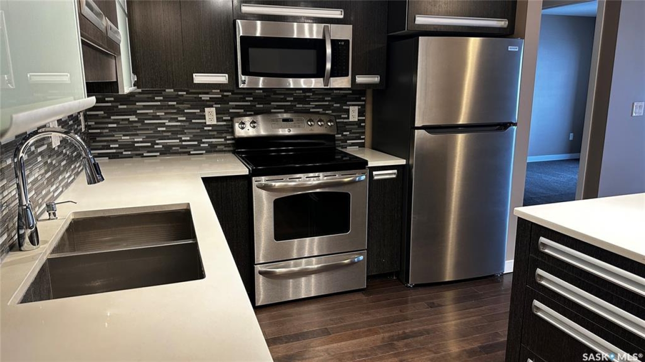 Second floor Condo in East Regina – Exceptional Value & Location! Don't miss this fantastic opportunity to own a beautifully maintained apartment-style condo in Regina's desirable east end, just minutes from shopping, restaurants, parks, and everyday amenities. This top-floor unit shows extremely well and features a bright, open-concept layout seamlessly connecting the living room, dining area, and kitchen — ideal for both relaxing and entertaining. The southwest-facing exposure fills the home with natural light while offering impressive views of the courtyard and city skyline. The condo includes two comfortable bedrooms and a full 4-piece bathroom, creating a functional space perfect for first-time buyers, downsizers, or investors. Enjoy the convenience of in-suite laundry with additional storage, plus the rare bonus of two exclusive parking stalls located close to the building entrances. Condo fees include SaskEnergy and water, adding excellent value and predictable monthly costs. Residents also enjoy access to premium amenities including a gym, amenities room, and pool area within the main clubhouse just steps from the building. The property features elevator access, making top-floor living effortless. This is an outstanding opportunity to secure a bright, low-maintenance home in a prime east Regina location.
