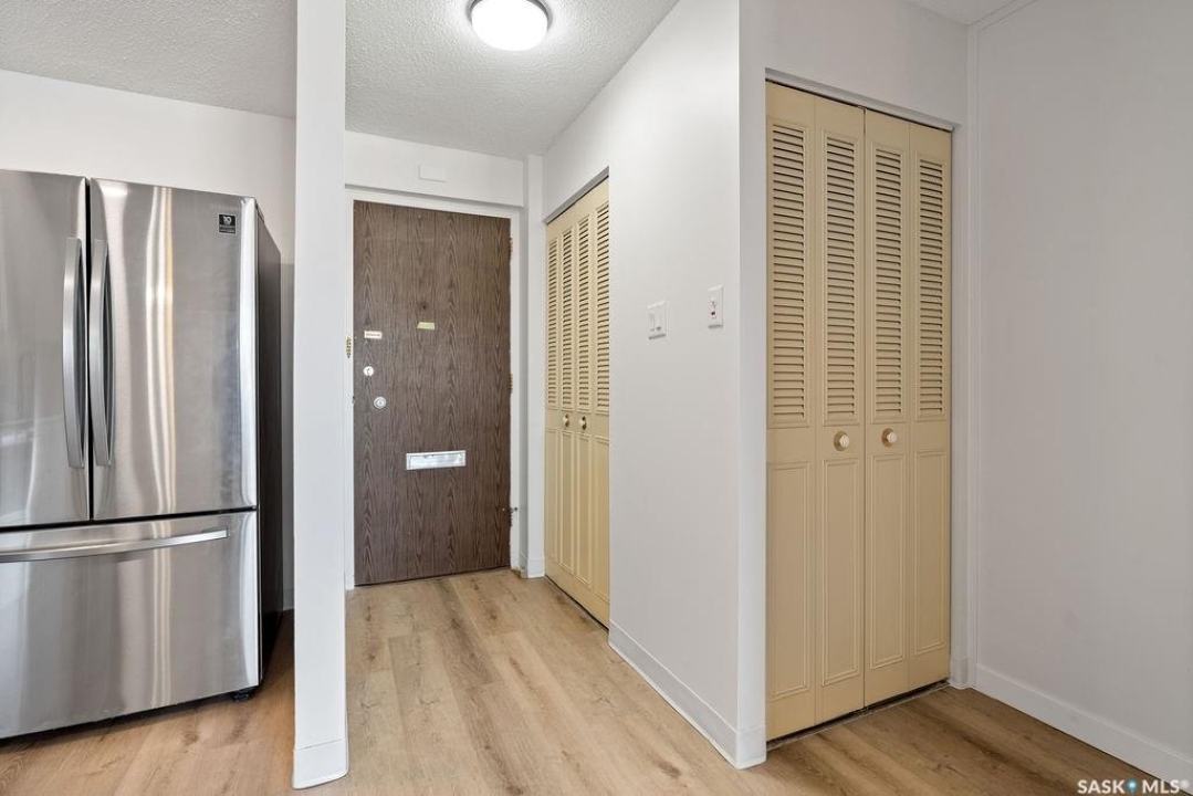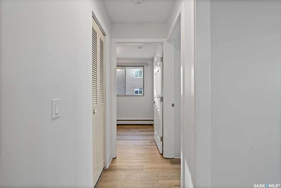 This condo is the perfect blend of homeownership and convenience, ideally located in Regina's desirable south end within walking distance to numerous amenities, parks, and public transit, making everyday living effortless. Offering just under 1,000 sq ft of living space, the unit features two well-sized bedrooms and one full bathroom, along with an updated kitchen and bathroom that add both style and functionality. Recent improvements include a fresh coat of paint throughout and brand-new flooring completed this month, making the space completely move-in ready — simply bring your furniture and settle in. Thoughtful storage is found throughout, with generous closet space as soon as you walk in for coats and household items, additional storage built into the bathroom, and even more storage available in the basement. The unit also includes a dedicated parking stall, while the well-maintained building offers shared amenities such as a common recreation room, workshop space, and shared laundry facilities, making this an excellent option for first-time buyers, downsizers, or anyone looking to start their homeownership journey with minimal maintenance and maximum convenience.