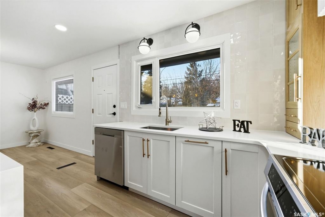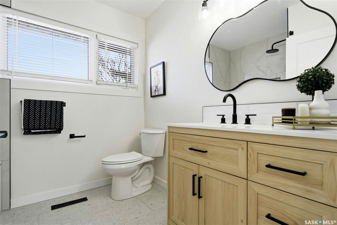 Welcome to 96 Bobolink Bay, a beautifully renovated family home tucked away on a quiet bay in desirable Whitmore Park. This move-in-ready property offers a thoughtful blend of modern design and functional living, with quality updates throughout. The main floor features a bright, open living space with large windows, durable vinyl plank flooring, and a stylish kitchen and dining area ideal for everyday living and entertaining. Three well-sized bedrooms and a fully updated 4-piece bathroom complete the upper level, showcasing clean finishes and contemporary fixtures. The lower level has been fully developed and offers an inviting rec room highlighted by a cozy electric fireplace, perfect for relaxing evenings. You'll also find an additional bedroom, a beautifully finished 3-piece bathroom with custom tile shower, and a functional laundry/utility area with front-load washer and dryer. Modern lighting, updated flooring, and eye-catching stair detailing add to the home's cohesive design. Situated on a generous lot with a spacious backyard, deck, and mature trees, this home offers plenty of room for outdoor enjoyment, gardening, or future garage potential. Located within walking distance to Massey School and Campbell Collegiate, this is an excellent opportunity to own a turnkey home in a well-established south Regina neighborhood.