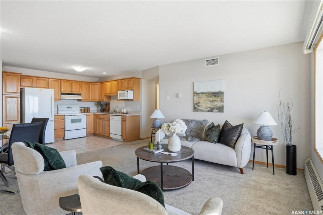 Welcome to this top-floor corner unit condo at 205 McIntyre St. N offering a bright open-concept layout. This well-maintained 2-bedroom, 2-bathroom suite features a spacious primary bedroom with a walk-in closet, 3 piece ensuite, large windows throughout, and excellent natural light. The kitchen, dining, and living areas flow seamlessly, creating an inviting and functional space. Additional highlights include in-suite laundry, central a/c, west facing balcony, newer carpet, underground parking, elevator access, and condo fees that cover water and heat. Conveniently located close to shopping, transit, and all north-end amenities. Ideal for anyone seeking low-maintenance living in a clean, well-maintained, and quiet building. Call to book your private showing today!