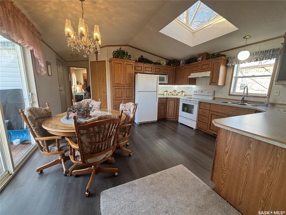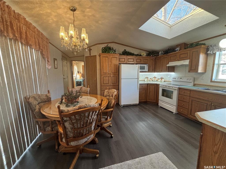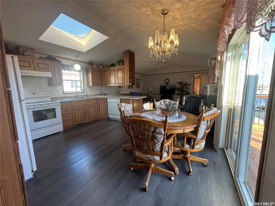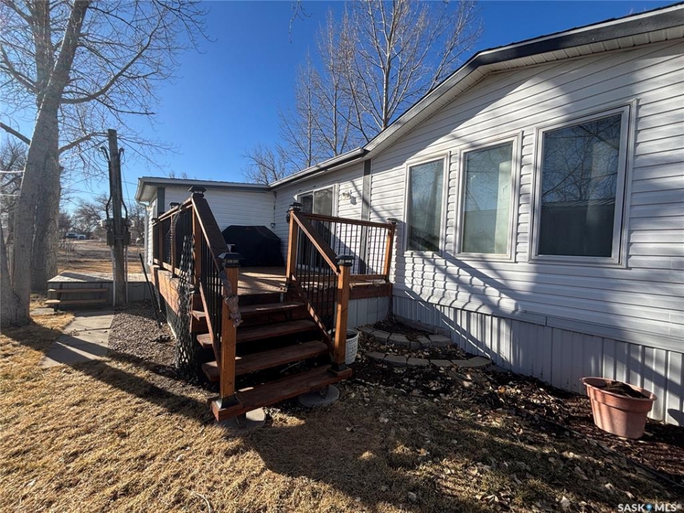 Enjoy the north-facing view of Maple Creek from this inviting mobile home, offering three comfortable bedrooms and two full bathrooms. The primary bedroom boasts a spacious walk-in closet, perfect for extra storage. Recent upgrades include a hot water tank, water filtration and softener replaced within the last decade and shingles less than one year ago, ensuring peace of mind, while a Generac system provides automatic backup during power outages. This owner customized the home adding 3 vinyl windows to bring in ample natural light. 2X6 construction makes this a well insulated, stable home. New decks added about three years ago create ideal spaces for relaxing outdoors. Two handy storage sheds and a fully fenced yard complete the package, making this home a practical and welcoming choice for buyers seeking both comfort and convenience.