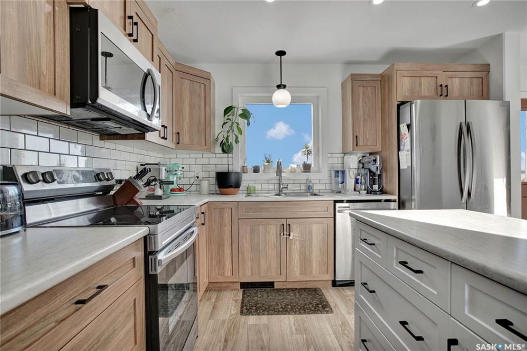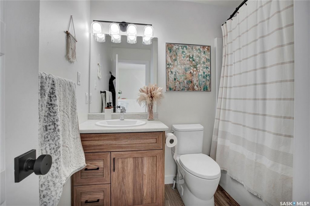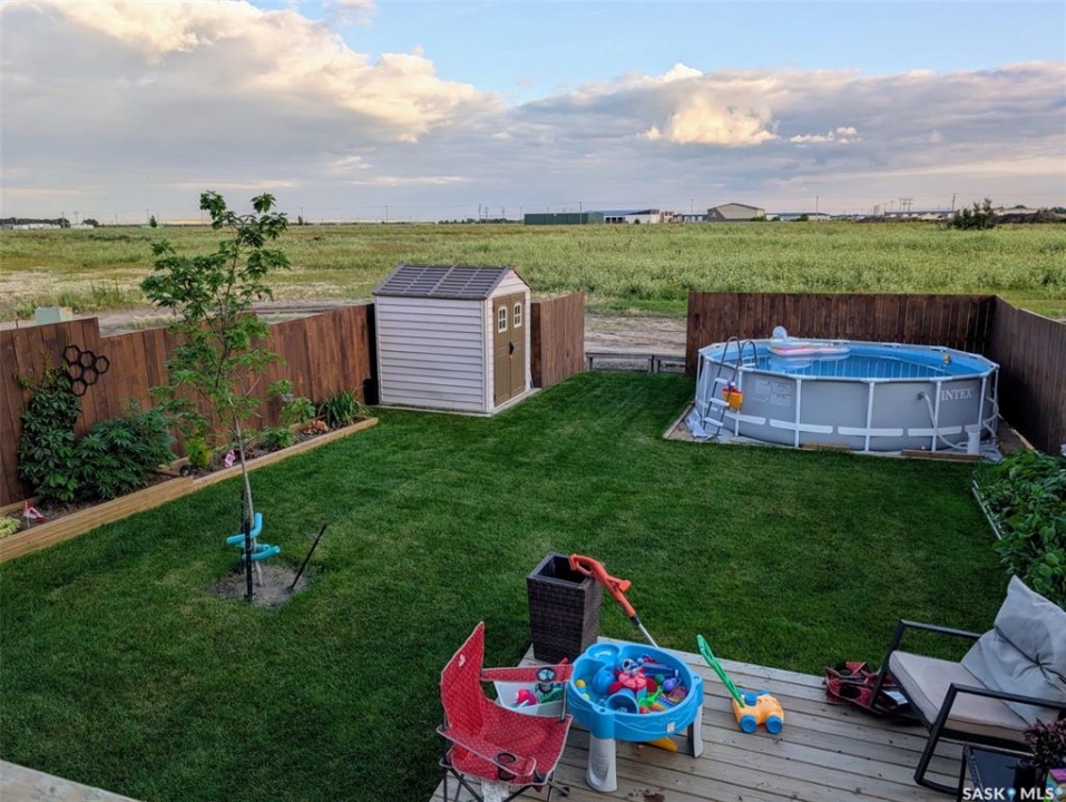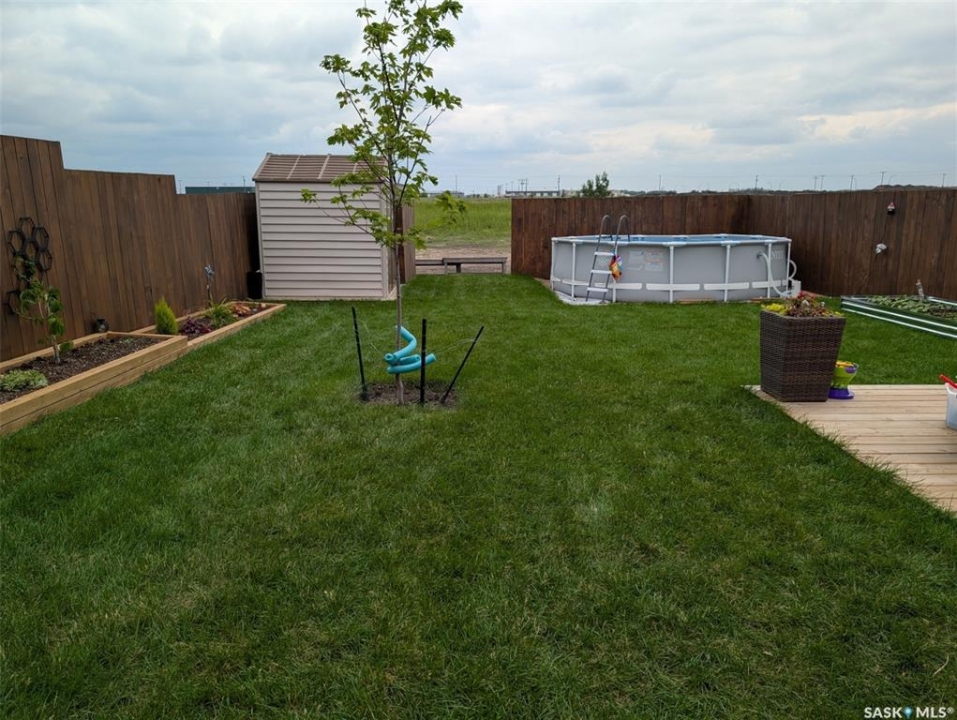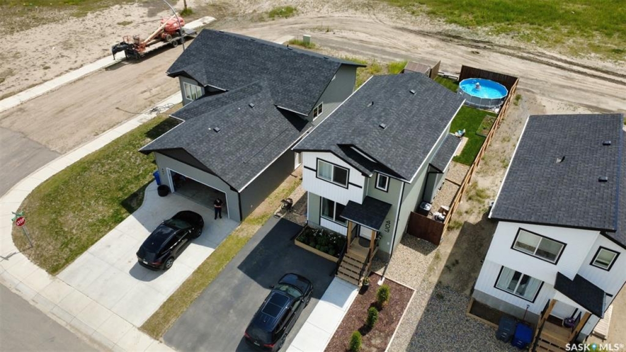 Welcome to 403 Eldorado Street Warman SK, this 2023 built 3 bedroom 1.5 bathroom home is move in ready. The main floor offers an open floor plan, with large windows letting in lots of natural lighting. The beautiful kitchen features ample counter tops space and a bonus island, tile back splash and stainless steel appliances. Back door to deck with south facing yard. Moving to the second level, there are 3 good sized bedrooms, including a primary bedroom with walk in closet, and a full bathroom. The basement is open for development with space for bedroom, family room & bath. The yard is fully developed front and back, fully fenced, garden boxes, patio and a deck. Additional items, central AC, paved driveway garden boxes, lower patio.