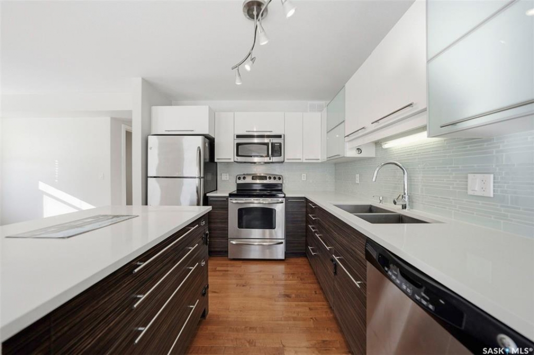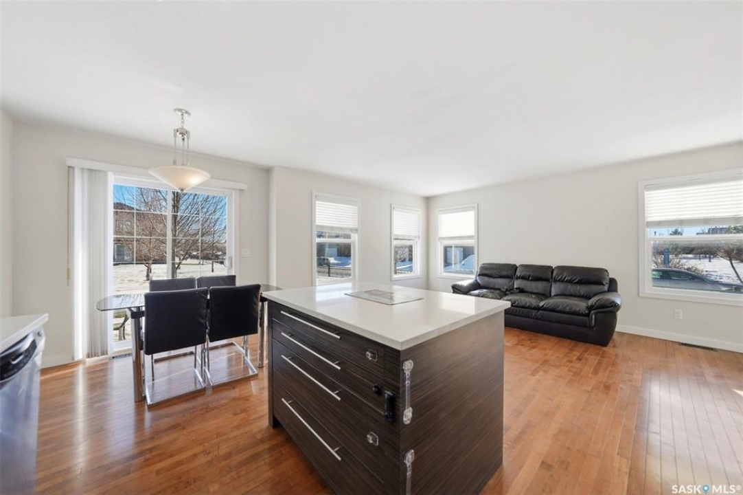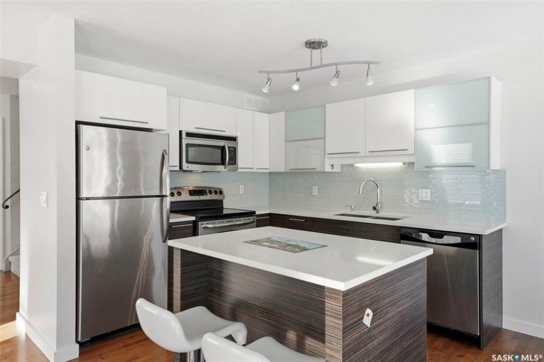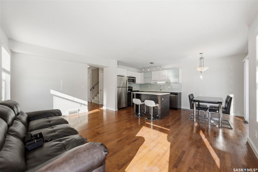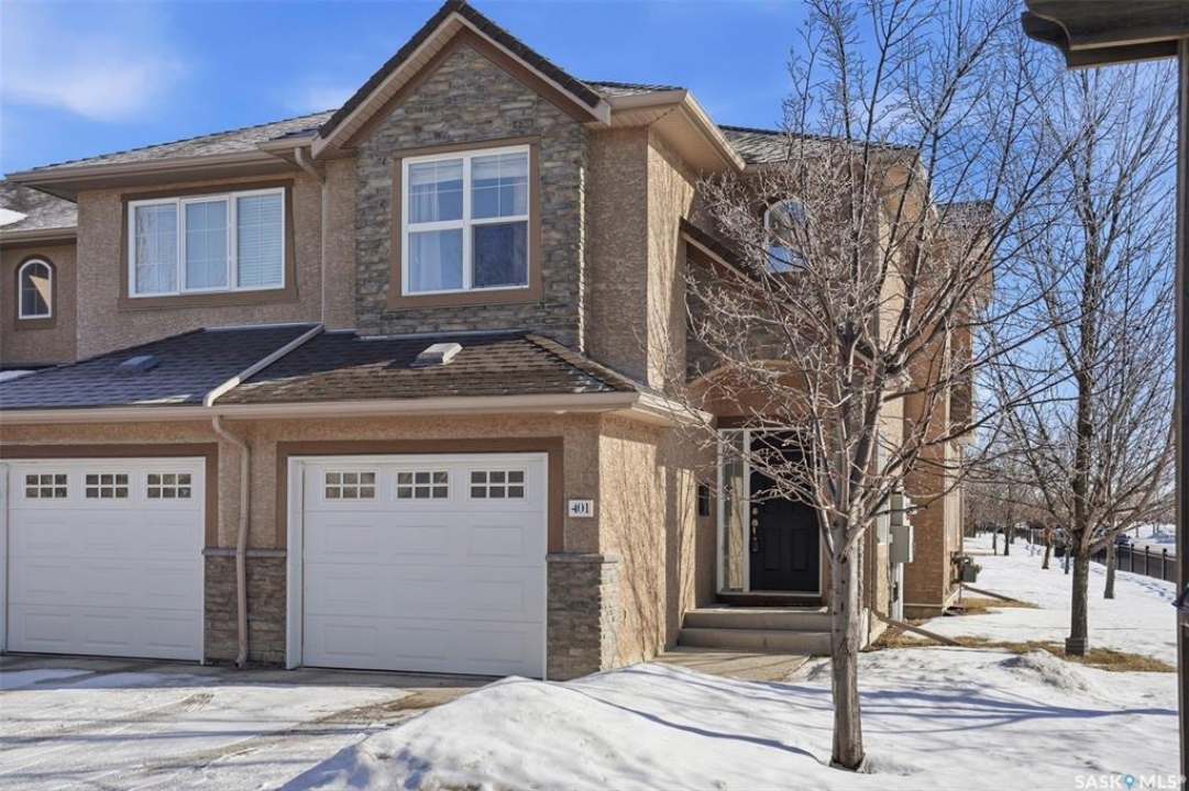 Welcome to Unit 401 – 710 Gordon Road, an exceptional end-unit townhouse ideally positioned in one of the most desirable locations within the complex, in the heart of sought-after Stonebridge. This well-appointed home offers an outstanding opportunity for comfortable and stylish homeownership. Boasting 1,330 sq. ft. of living space, this townhouse features 3 bedrooms and 3 bathrooms, enhanced by extra side windows that overlook Cren Wilson Park and provide access to additional street parking. The single attached garage adds everyday convenience. The main floor showcases a modern open-concept design with hardwood flooring, bright living and dining area, and contemporary kitchen finished with New York-style cabinetry, quartz countertops, stainless steel appliances, stylish backsplash, and ample storage. Large windows offer abundant natural light and pleasant south-east-facing green space views. Upstairs, you'll find three spacious bedrooms, including a generous primary suite with a walk-in closet and a cheater door to the full bathroom featuring a skylight. The additional bedrooms benefit from extra side windows with park views. The fully finished basement offers a spacious family room with laminate flooring, an additional bathroom with tile flooring and tiled shower, plus a separate laundry room, utility room, and storage room finished with durable vinyl flooring. Additional features include central air conditioning, central vacuum, hot water heater (2020), washer & dryer (2022), newer thermostat, Google smart doorbell, and some updated faucets. Ideally located within walking distance to schools, parks, shopping, and all essential amenities, this home truly has it all. Shows 10/10!