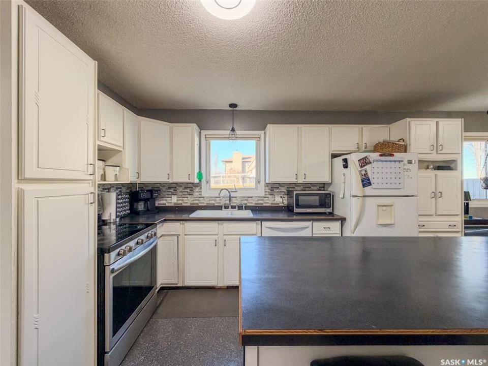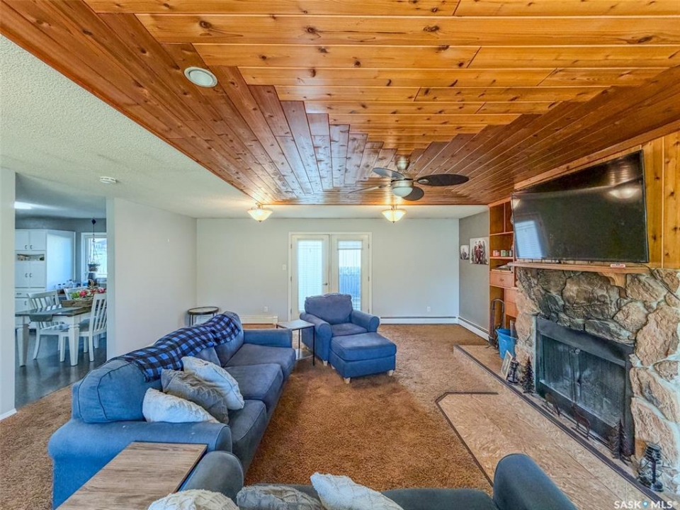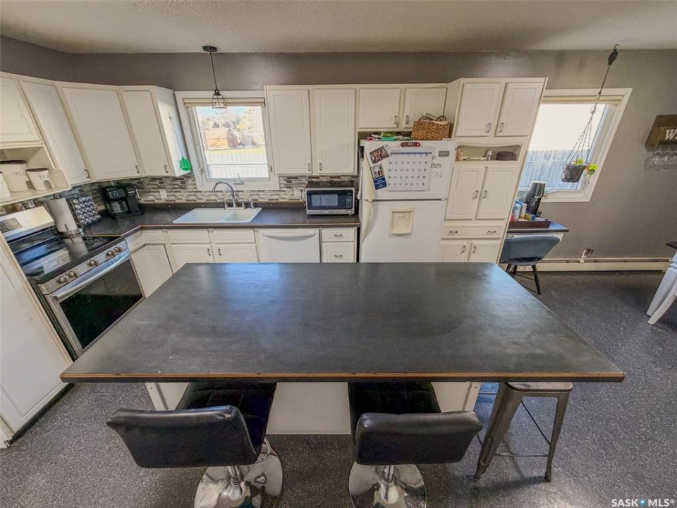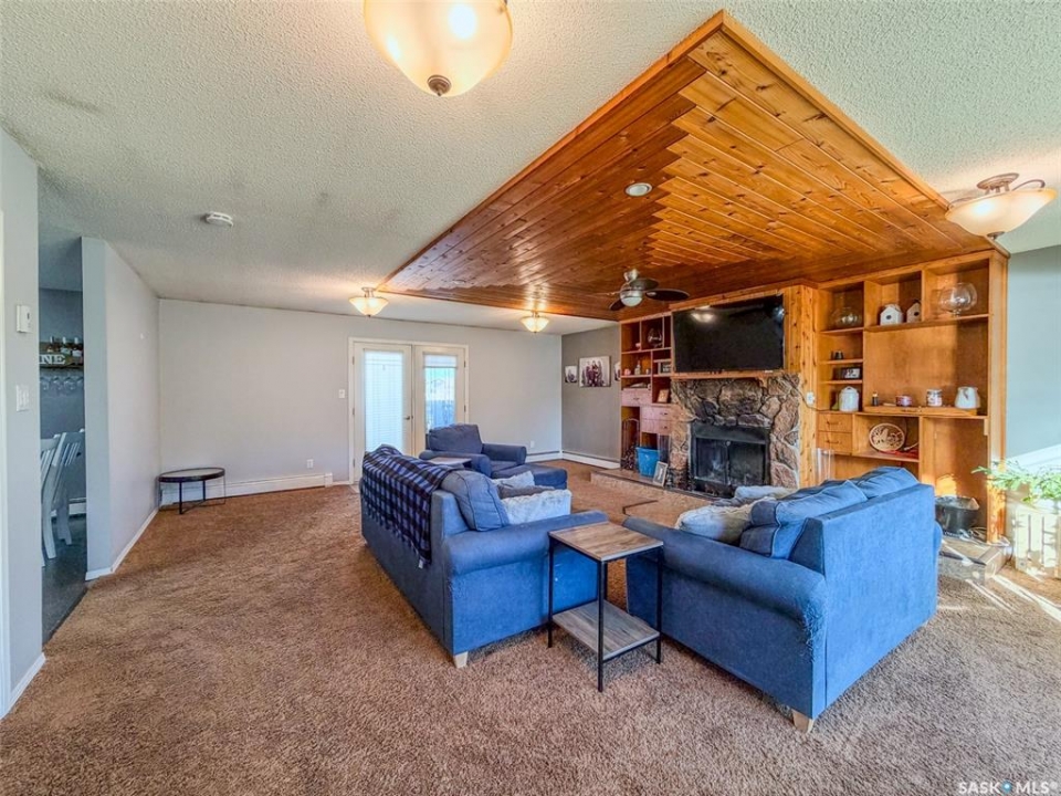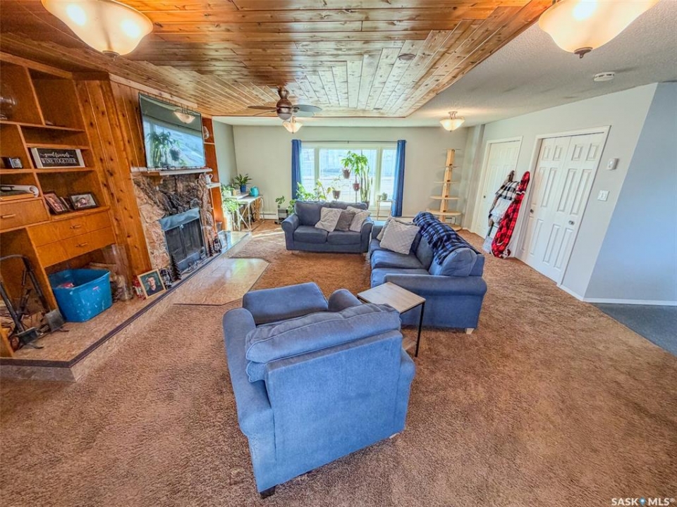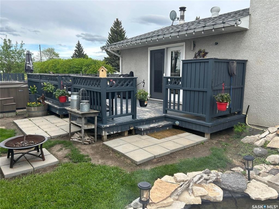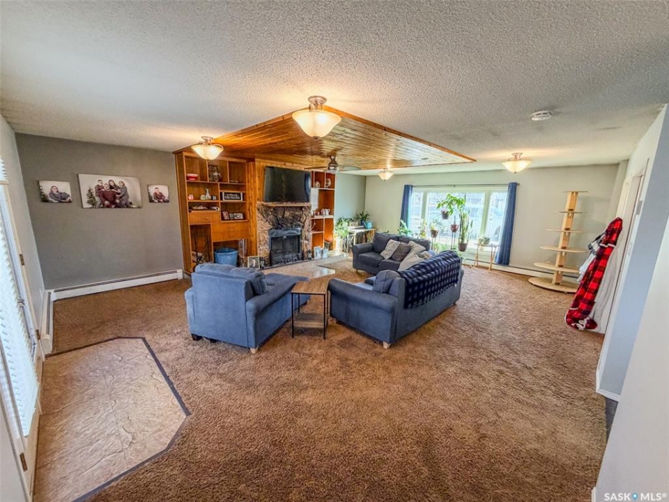 Welcome to 405 5th Street East in Shaunavon—a warm and inviting 2,056 sqft 1.5-storey home perfectly designed for family living and entertaining. Built in 1978 and set on a spacious corner lot with lane access, this home boasts both curb appeal and thoughtful functionality. Step onto the 4-car driveway and into the fully insulated double attached 24x26 garage, offering plenty of room for vehicles and storage. Inside, the main entry welcomes you with immediate access to the second-floor sleeping quarters, where you'll find a total of three good-sized bedrooms - the spacious primary bedroom offers a large walk-in closet complete with a built-in dresser and a dedicated makeup counter—perfectly blending comfort and functionality. A 4-piece bathroom completes the upstairs living space. Just off the entry, a cozy front living room with large windows and a stylish built-in feature wall offers flexible space—ideal as a lounge, office, or main-floor bedroom conversion. The heart of the home is the updated kitchen, complete with modern finishes, an eat-up island, and seamless flow into the dedicated dining area. One wing off the kitchen leads to the detached garage entry, a generous storage/utility room, and a 3-piece bathroom/main floor laundry room. The opposite end opens up to the stunning great room—your future favourite space— with a stunning ceiling feature and a statement wood-burning fireplace wall that brings character and warmth. Step outside through the great room to discover your backyard oasis. The fully fenced yard is designed for relaxation and gatherings with a wrap-around deck, a hot tub, a tranquil pond feature, and raised garden beds—all nestled into the corner lot with privacy and space to spare. Shaunavon is a vibrant community offering schools, shopping, dining, healthcare, and recreation. If you're looking for a well-maintained, spacious home with personality and potential—405 5th Street East delivers it all!