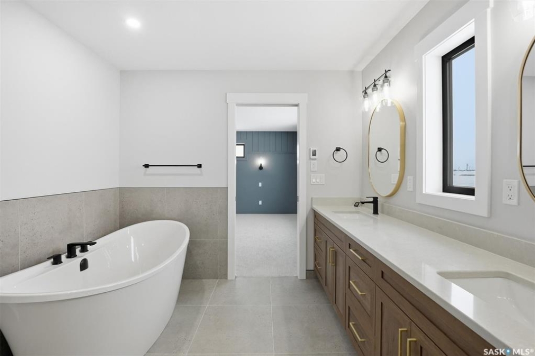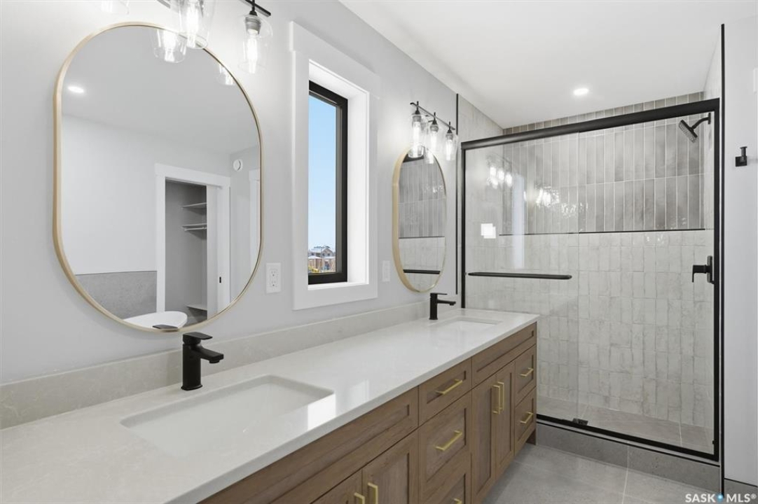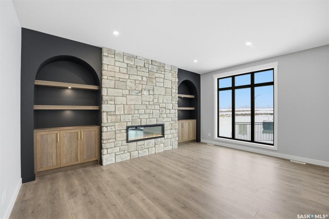 Stunning 2,341 sq ft two-storey by Edgewater Homes designed with style & function throughout. Features an oversized insulated garage, mudroom with walk-through pantry & prep sink, designer kitchen with quartz countertops & large island, bright great room with oversized patio doors & fireplace, plus a front office/flex space. Upstairs offers a spacious primary suite with tiled shower, standalone tub, walk-through closet to laundry, 2 additional bedrooms, bonus room & 4-pc bath. Saskatchewan New Home Warranty. PST & GST included with rebate to builder.