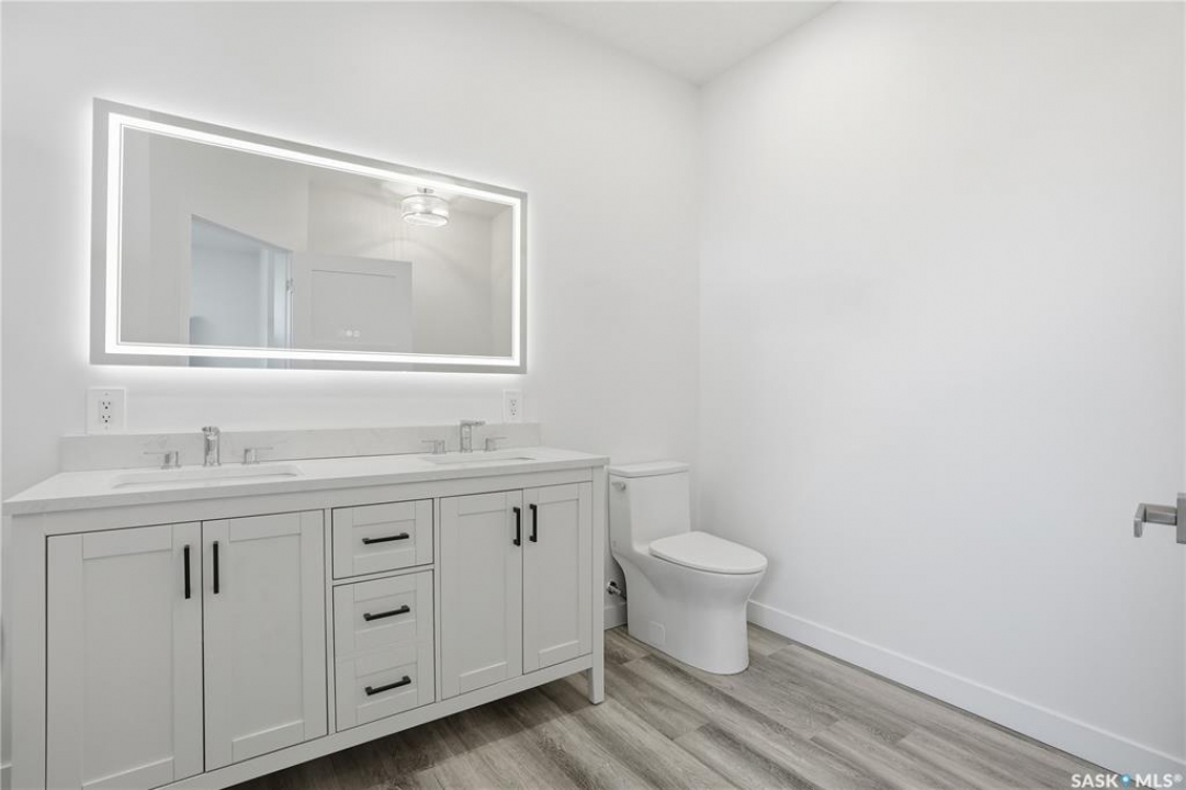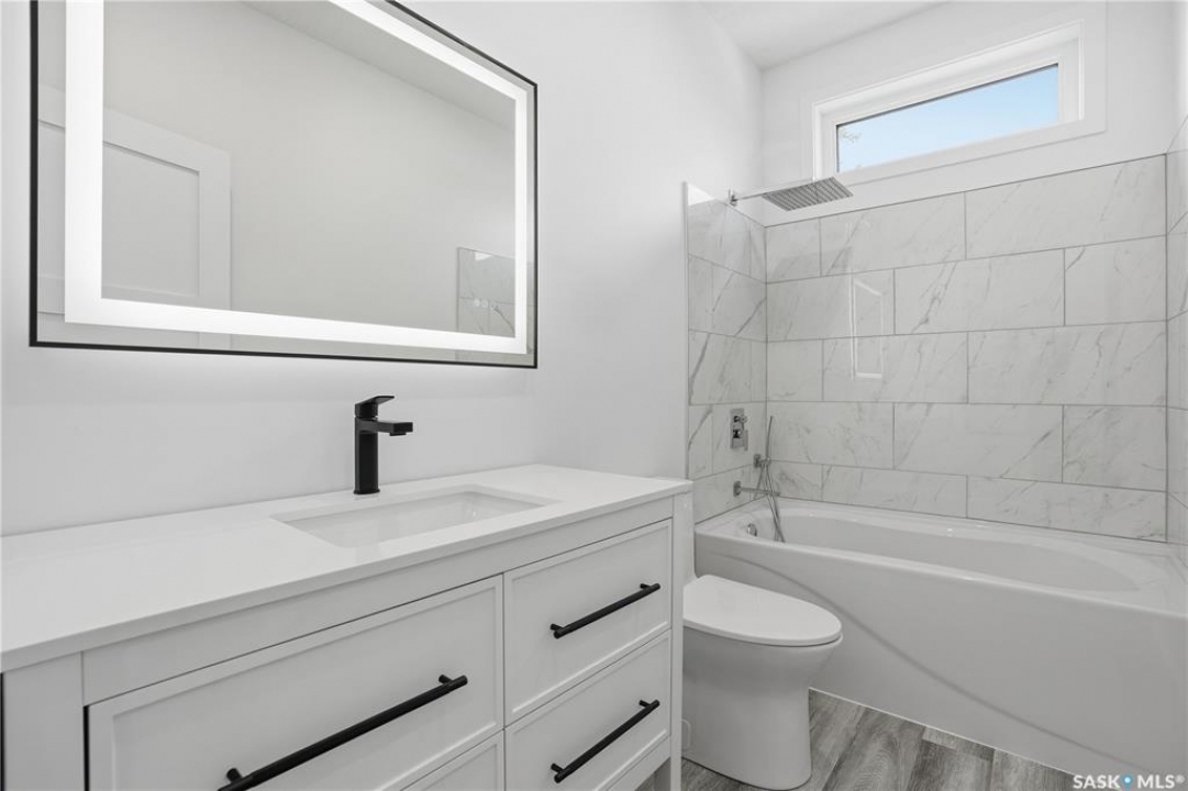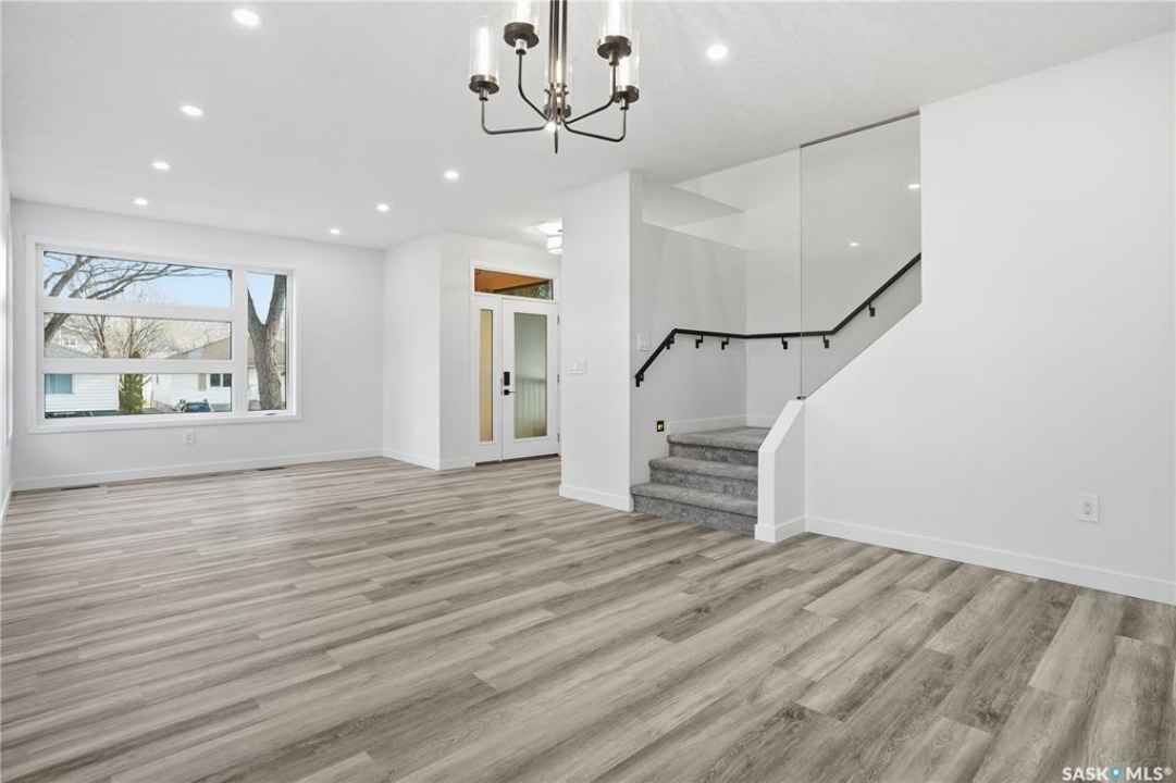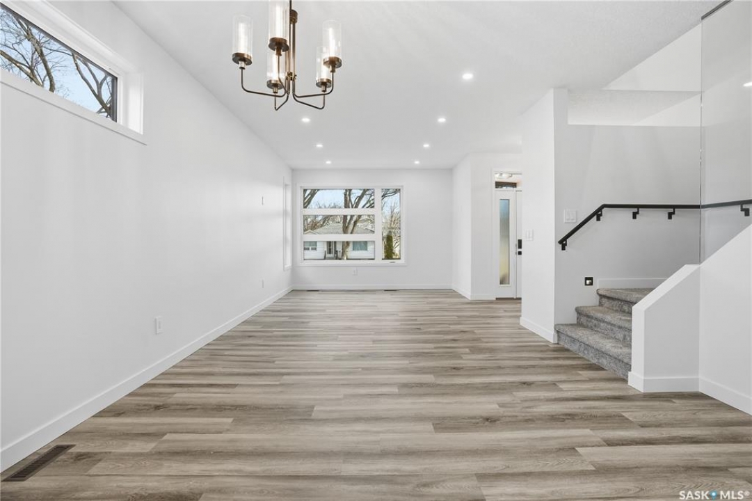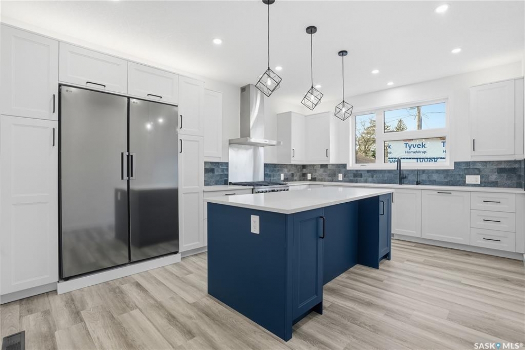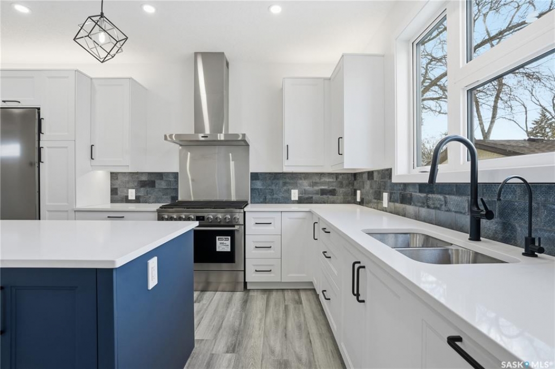 No convenience or detail was spared in this superbly crafted 1,723 sq/ft, 4 bed, 4 bath home, built on piles and designed with comfort and longevity in mind. Welcome to 3130 Garnet Street, located in the sought-after mature neighborhood of Regina Lakeview. The property is conveniently situated near Lakeview and Argyle/École St. Pius X Schools, and Martin Leboldus High School. The bright and open floor plan is filled with natural light, creating an inviting atmosphere perfect for a growing family and entertaining. The ultra-modern kitchen showcases a large centre island, ample storage and preparation space, soft-close drawers, stylish tile backsplash, and a walk-in serving pantry. Appliances include a side-by-side fridge/freezer, professional six-burner gas range and hood with electric oven, and a built-in dishwasher. An elegant glass-insert staircase leads to the upper level. The primary bedroom boasts a walk-in closet and a spa-like ensuite with double sinks, soaker tub, and a beautiful tiled shower. Two additional spacious bedrooms and a large four-piece bathroom with a vanity and tiled tub surround complete the upper level. Lighted stairways up and down, the fully finished lower level includes a large recreation room, bedroom, 3-piece bath, and a functional laundry room with built-in storage. More storage is available under the stairs, along with a utility room. This home has great curb appeal with a maintenance-free exterior. The landscaped backyard features a vinyl deck with aluminum railing, vinyl fencing, and a 20'x22' detached double garage. Value-added features include triple-pane All-Weather (6100 Series) windows, central A/C, high-end appliances, complete smart home system, anti-fog mirrors, 100-amp electrical panel, dual backwater valves, heat recovery unit, and a dual-stage high-efficiency furnace and much more. This beautiful home in a fantastic location is just waiting for you to call it yours. Contact your agent to schedule a showing today.