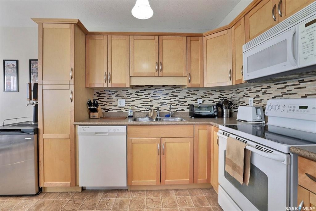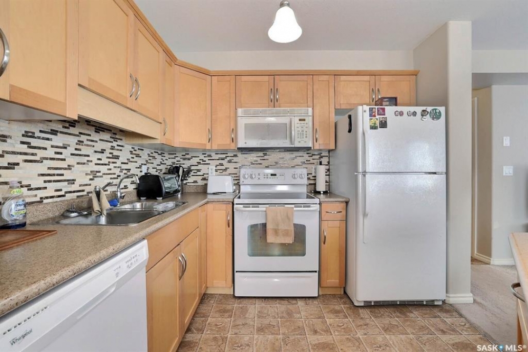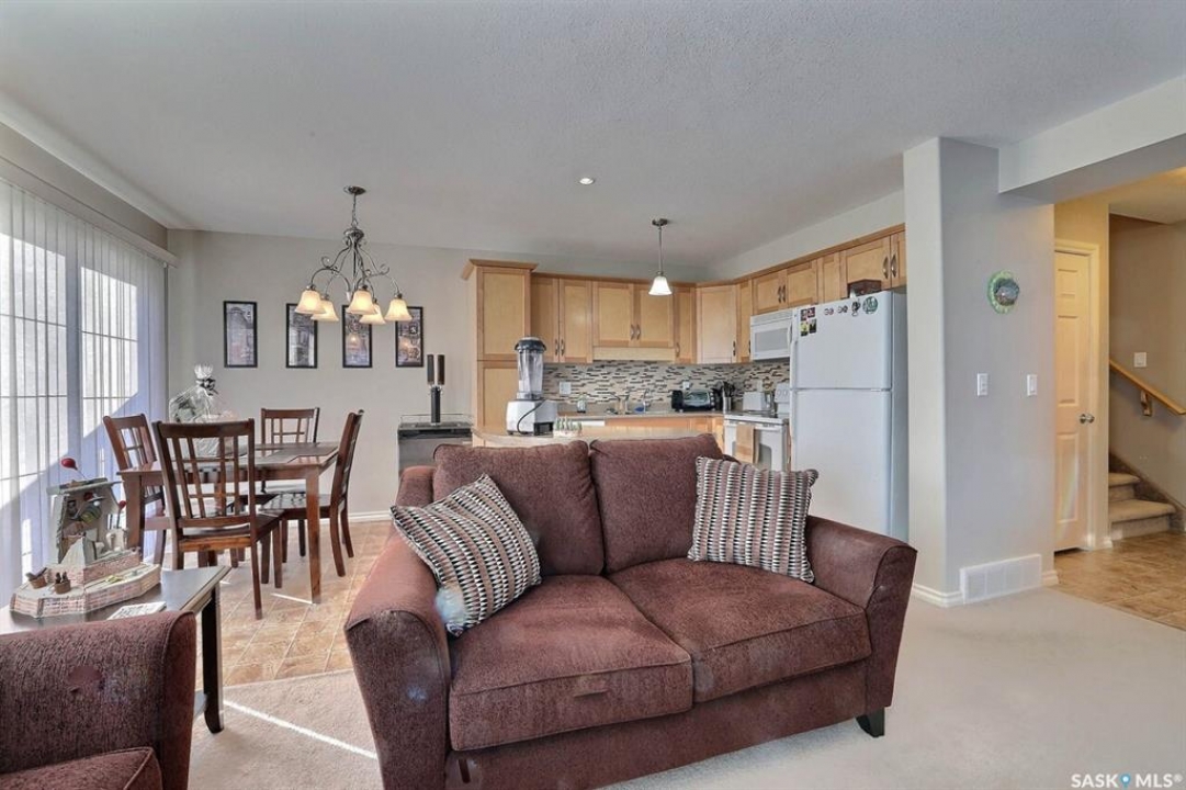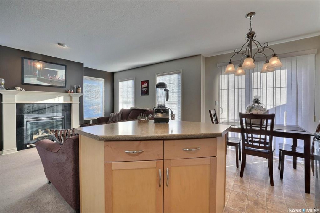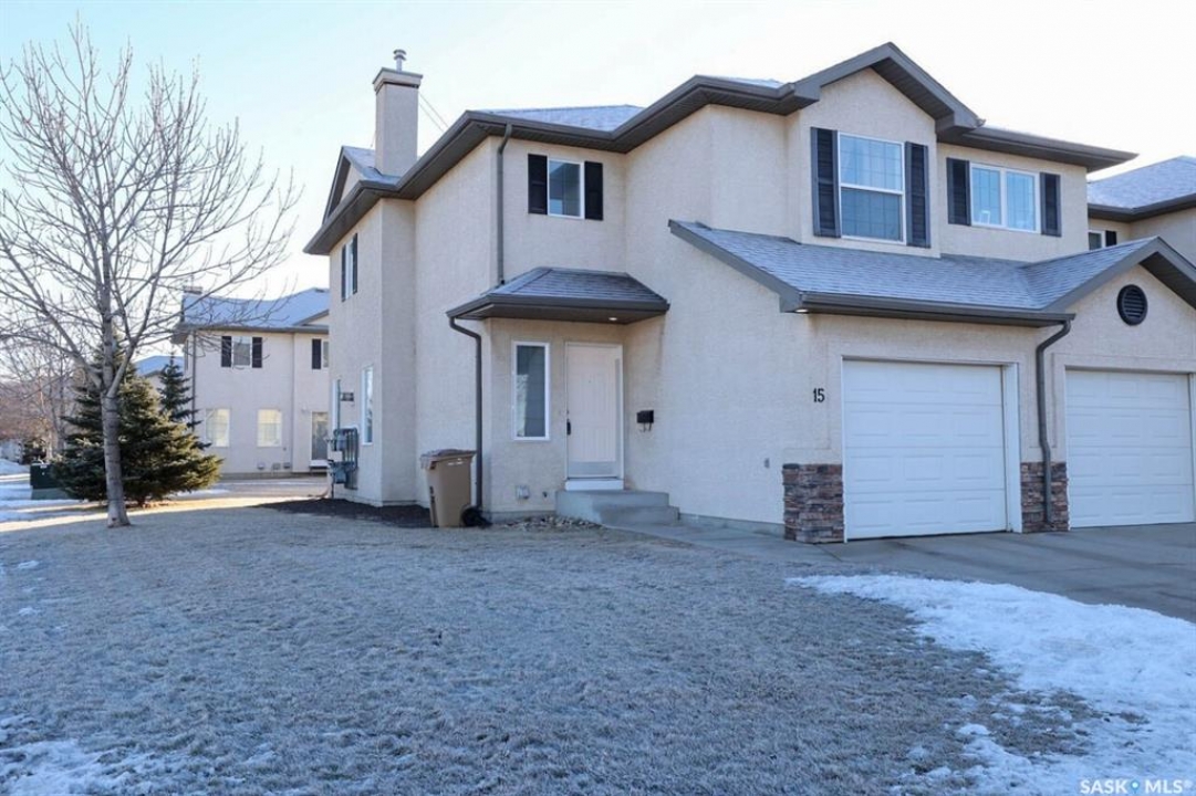 Beautifully located two storey condo in Regina's sought after east end with green space, and water views right out front. This 3 bedroom, 3 bathroom home offers a bright, functional layout and is truly move in ready. The main floor features an open concept design with large windows that bring in plenty of natural light, a cozy natural gas fireplace, and direct entry to the single attached garage. The kitchen showcases maple cabinetry, an oversized island perfect for entertaining, and a dining area with patio doors leading to your private outdoor space. Upstairs you will find three comfortable bedrooms, all with double closets, along with a full bathroom featuring a skylight that adds beautiful natural light to the space. The fully developed basement provides additional living space with a rec room, a 3 piece bathroom, and a separate laundry area