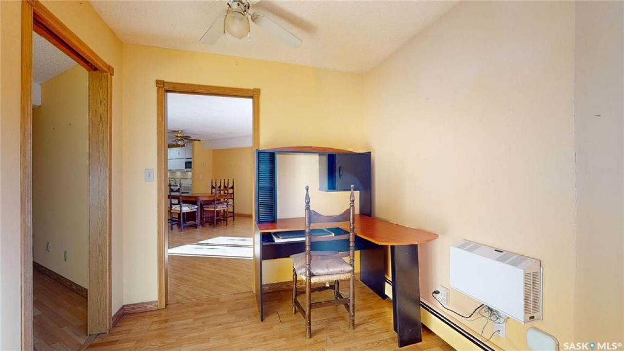 What a great find in Cathedral! This is a bright south facing large one bedroom one bathroom condo. The gorgeous updated IKEA kitchen is a - Wow - an eye catcher! Featuring attractive counter tops, under cabinet lighting, and amazing back splash; it is a winner as far as kitchens go. Open to the dining and living room, you immediately feel right at home. Off of the living room is a good sized balcony – a great place to relax and enjoy the world from. Also off the living room is nice bright office; which you can use how you wish – work, exercise, crafts, or whatever your lifestyle needs. This room opens into the primary bedroom which is also a great size. Then there is the nicely updated 4 pce bath. Finishing off the home, is the laundry and storage room. The extra storage is wonderful to have. Plus there is more storage in the parkade. The complex also includes an amenities room conveniently located just down the hall from this unit – ideal for gatherings and extra space. Also included is a parking stall right outside the home as well as visitor parking for guests. This is a sweet home in a great location – book your appointment soon.