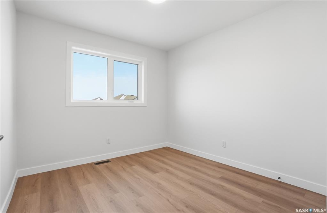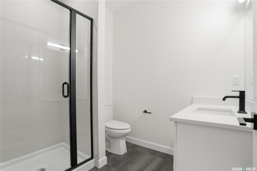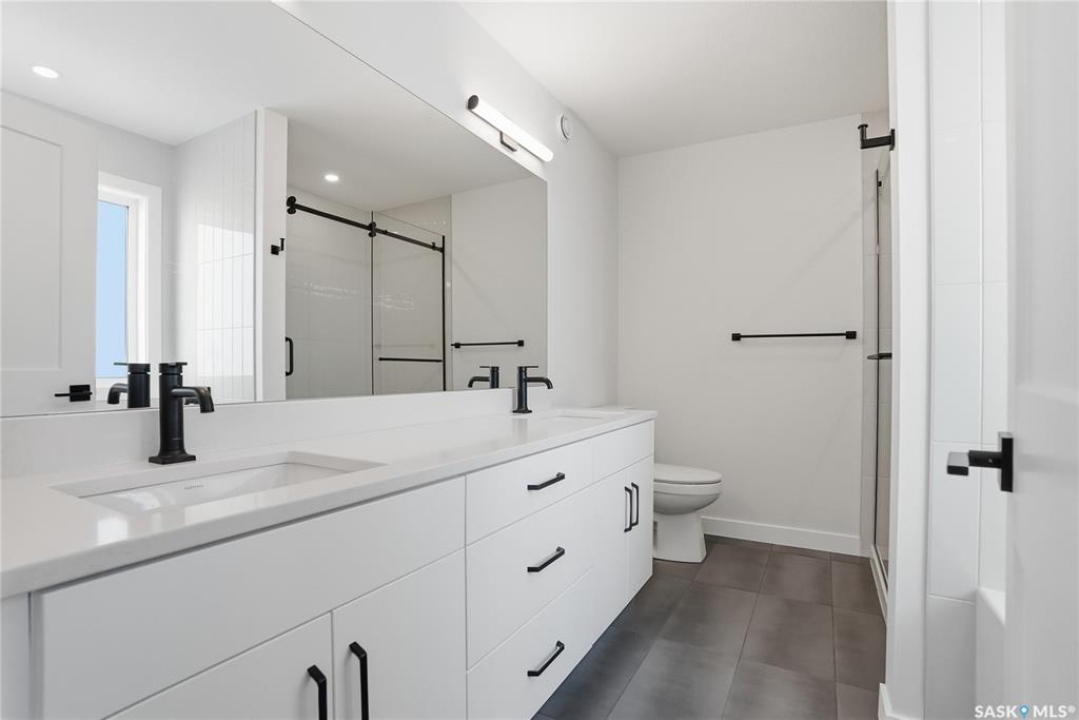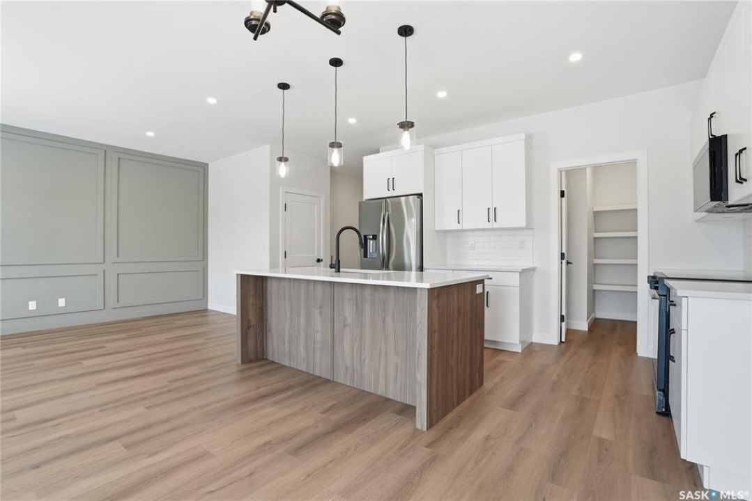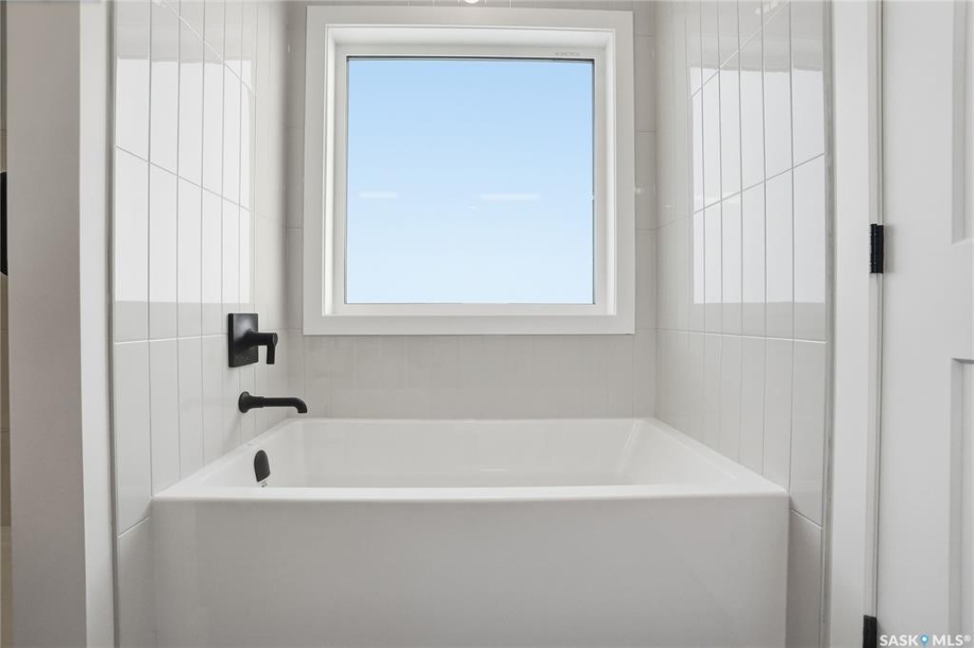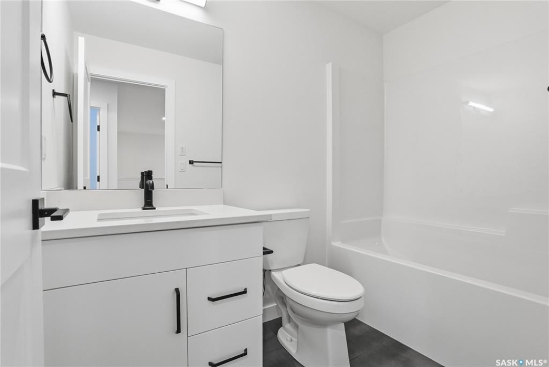 Modern 1,993 sq. ft. two-storey home featuring a rare main-floor bedroom and 3-piece bathroom, ideal for guests or multi-generational living. This 4-bedroom design offers 9' ceilings on the main level, laminate flooring throughout the main and second floors, and ceramic tile in bathrooms with tiled shower surrounds. The kitchen showcases a large quartz island, subway tile backsplash, soft-close cabinetry, walk-in pantry. Upstairs includes additional bedrooms and a well-appointed ensuite with double sinks, soaker tub, and custom tiled shower with glass enclosure. Additional highlights include pot lighting inside and out, upgraded black fixtures, comfort-height toilets, on-demand hot water, HRV, and high-efficiency furnace. Exterior is complete with triple-pane windows, covered front entry, concrete driveway, front landscaping.