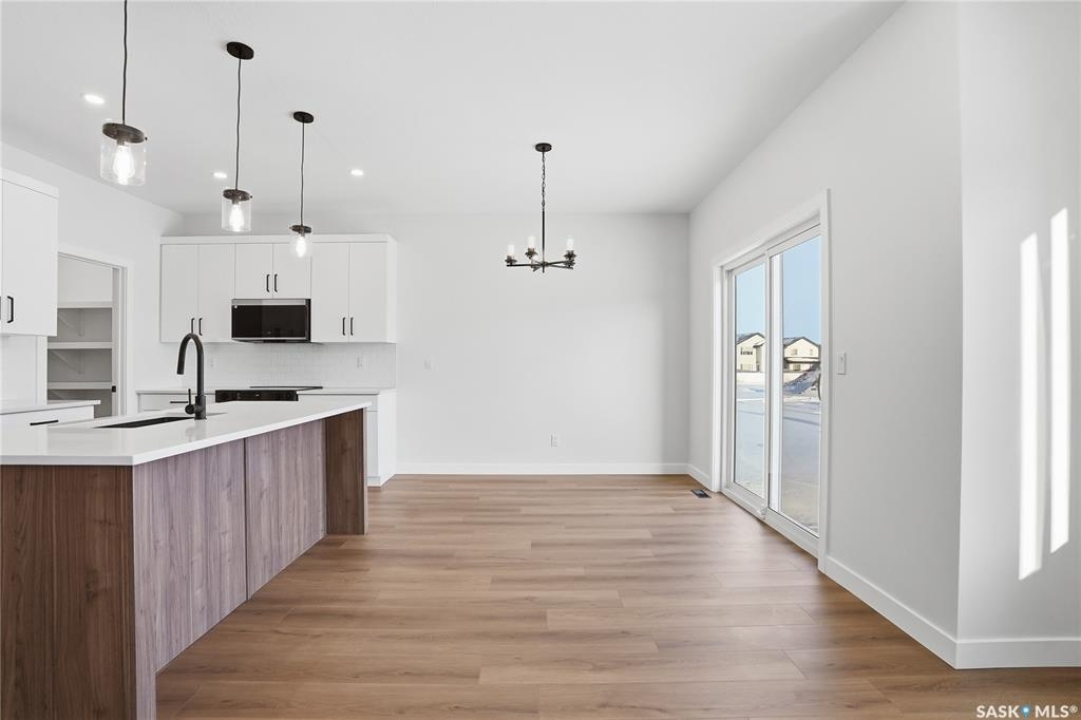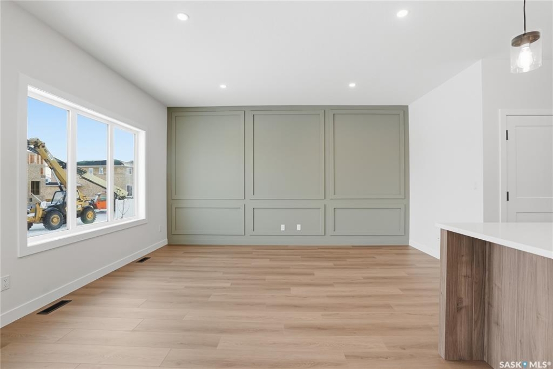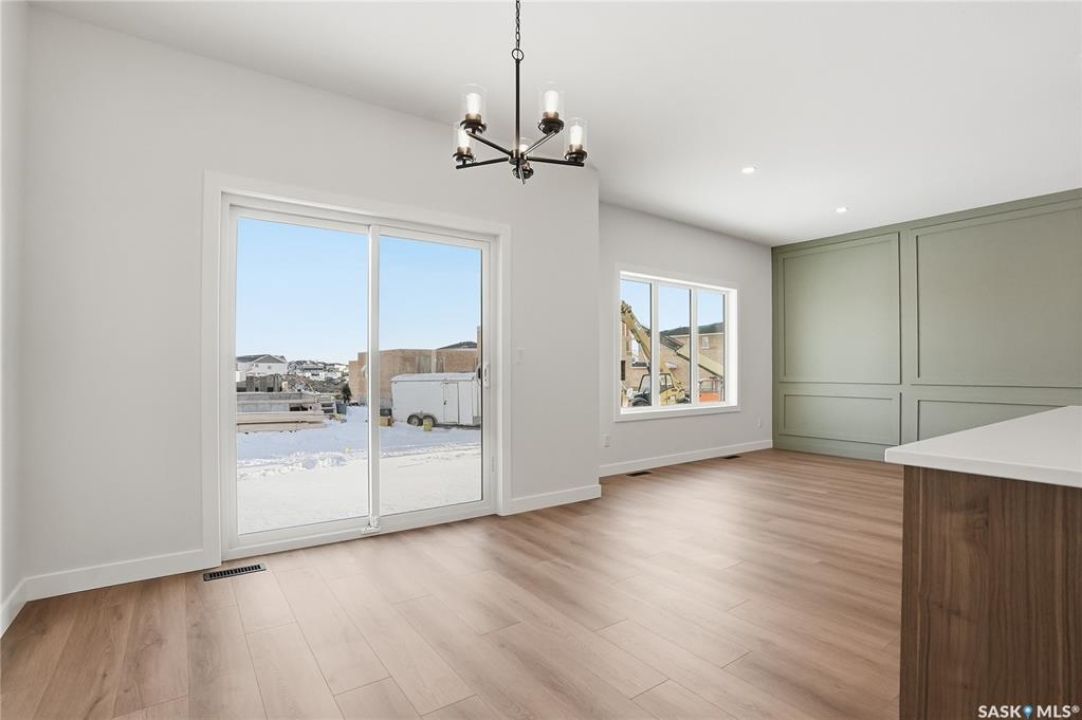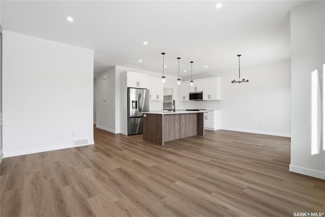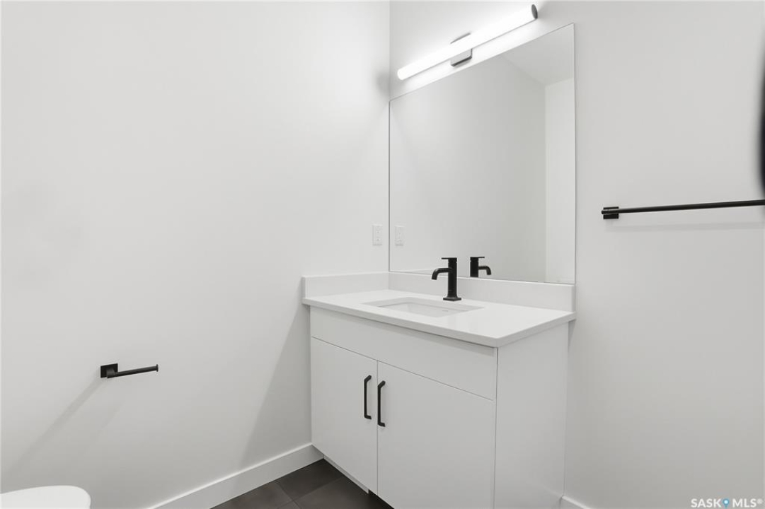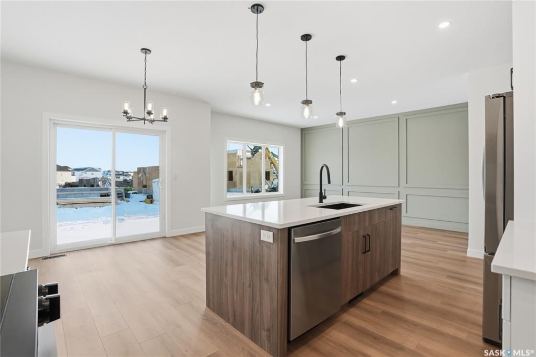 Modern 1,993 sq. ft. two-storey home featuring a rare main-floor bedroom and 3-piece bathroom, ideal for guests or multi-generational living. This 4-bedroom design offers 9' ceilings on the main level, laminate flooring throughout the main and second floors, and ceramic tile in bathrooms with tiled shower surrounds. The kitchen showcases a large quartz island, subway tile backsplash, soft-close cabinetry, walk-in pantry. Upstairs includes additional bedrooms and a well-appointed ensuite with double sinks, soaker tub, and custom tiled shower with glass enclosure. Additional highlights include pot lighting inside and out, upgraded black fixtures, comfort-height toilets, on-demand hot water, HRV, and high-efficiency furnace. Exterior is complete with triple-pane windows, covered front entry, concrete driveway, front landscaping.