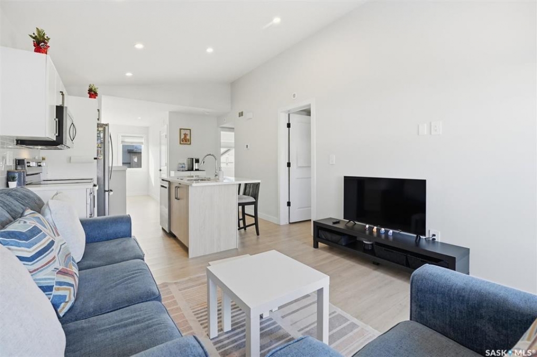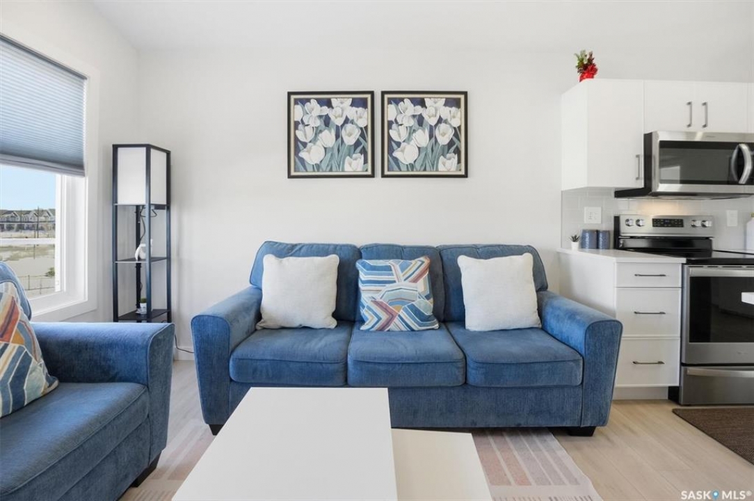 Exceptional 2 bedroom townhouse located at the "North Ridge Towns Dubois" community in Brighton! This 1011 square foot home with single attached garage is in show like condition and has been meticulously kept from top to bottom complete with many stylish finishes including vinyl plank flooring throughout the living spaces! This top floor condo has an open concept design that includes a gorgeous kitchen, a spacious living room, 2 good sized bedrooms, laundry, storage, and a full 4-pce bath. With vaulted ceilings and natural light welcoming you first thing in the morning and into the evening, this home provides a bright and airy feel any time of the day. All construction was complete in 2025 at the North Ridge Towns Dubois project providing a peaceful surrounding for you to enjoy. Located directly across the street from Brighton Core Park, this prime location is only a few minute walk to trails, splash park, playground, sports fields, and future school. Includes kitchen appliances, washer and dryer, central air conditioning, and all window coverings. Call to view!