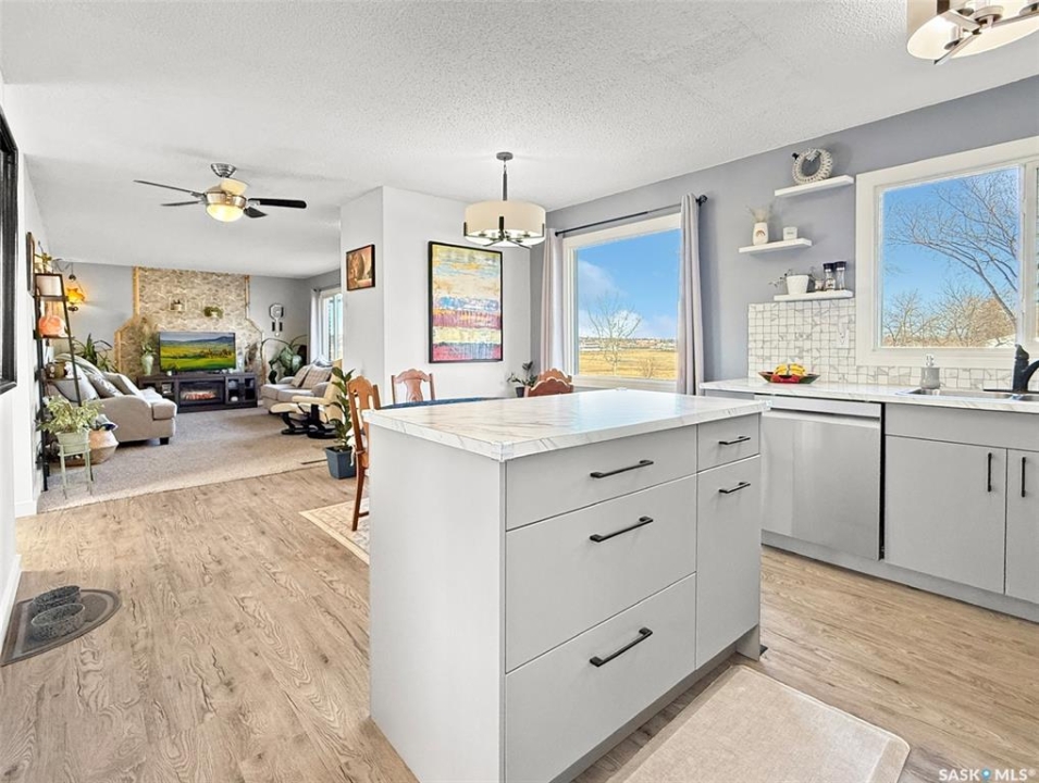 Searching for a move-in-ready home under $300,000? Welcome to 132 Haw Place. Enjoy peaceful prairie views from the front window and a bright, open-concept main floor filled with natural light. Tucked into a quiet, family-friendly cul-de-sac on the southwest side of the city, this home is ideally located near skating rinks, the pool, grocery stores, parks, and just blocks from a K–8 school. Extensive renovations enhance both curb appeal and comfort. Outside, you'll appreciate the double front driveway, professionally painted exterior, some updated windows, freshly stained fence, and newly landscaped yard. Inside, the modern main floor features fresh paint, updated trim, new flooring, and upgraded lighting throughout. The standout kitchen has been beautifully redone with crisp white cabinetry, stainless steel appliances, updated countertops, a porcelain tile backsplash, and an island that flows seamlessly into the dining area. The spacious living room offers a welcoming focal wall and those stunning views. Two main-floor bedrooms and a fully renovated three-piece bathroom complete this level, along with a convenient two-piece guest bath and main-floor laundry near the back entry. The lower level has also been significantly updated, featuring a large family room, a newly added (permitted) bedroom, a refreshed three-piece bathroom, and a separate den—ideal for a home office or gym. A generous storage/utility room is located behind the stairs. Mechanical updates include an energy-efficient furnace (2013), new water heater (1 year old), central air conditioning, and water softener hookups. Parking is exceptional with a double driveway, RV parking beside the garage, and a 18' x 24' car-and-a-half garage. For details or to arrange a private showing, reach out today.