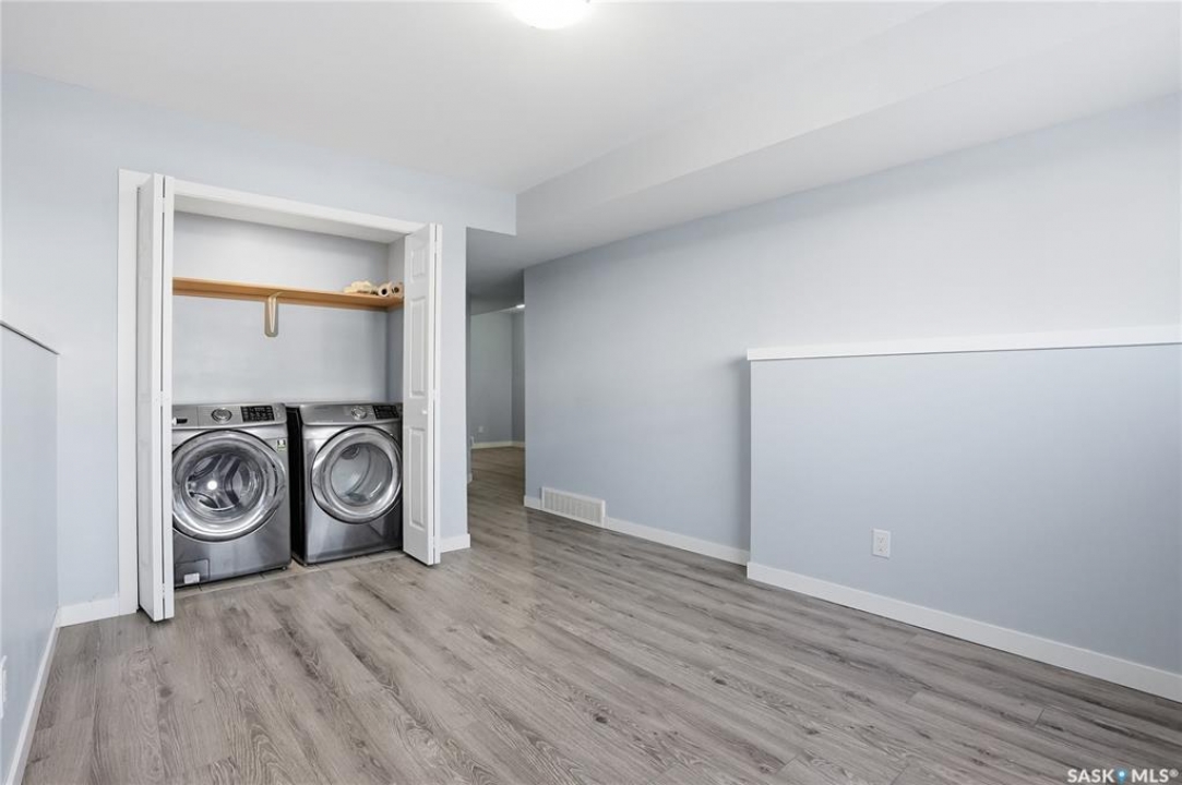 A great opportunity for a family home with the potential to add a 2-bedroom basement suite in Evergreen! This modern bi-level offers 3 bedrooms and 1 bathroom upstairs, along with a fully finished basement with an additional bathroom, with a separate exterior entrance. upper layout with open-concept living area, kitchen/dining area complete with stainless steel appliances (recently upgraded dishwasher), natural gas range, tile backsplash & island. Main bedroom features a generously-sized walk-in closet, 2 ample-sized bedrooms provide an ideal setup for families. Fresh paint throughout the upper level. Lower level is perfectly planned for the future development of a secondary suite, with a separate entrance and a split family room area that could be dedicated for the use of the upper level occupants. Basement is fully finished and turn-key for full single-family usage, with a layout that could easily accommodate a 2-bedroom suite with some minor renovations. Ample-sized back yard with a 2-car garage, patio area, and finished landscaping & fencing. Whether you're looking for an affordable single-family home, or the perfect opportunity to take advantage of the recently-extended Saskatchewan Secondary Suite Initiative (government grants available for development of secondary suites, Buyer to confirm their eligibility) - this is a smart purchase with excellent potential! Note: some images have been digitally staged.