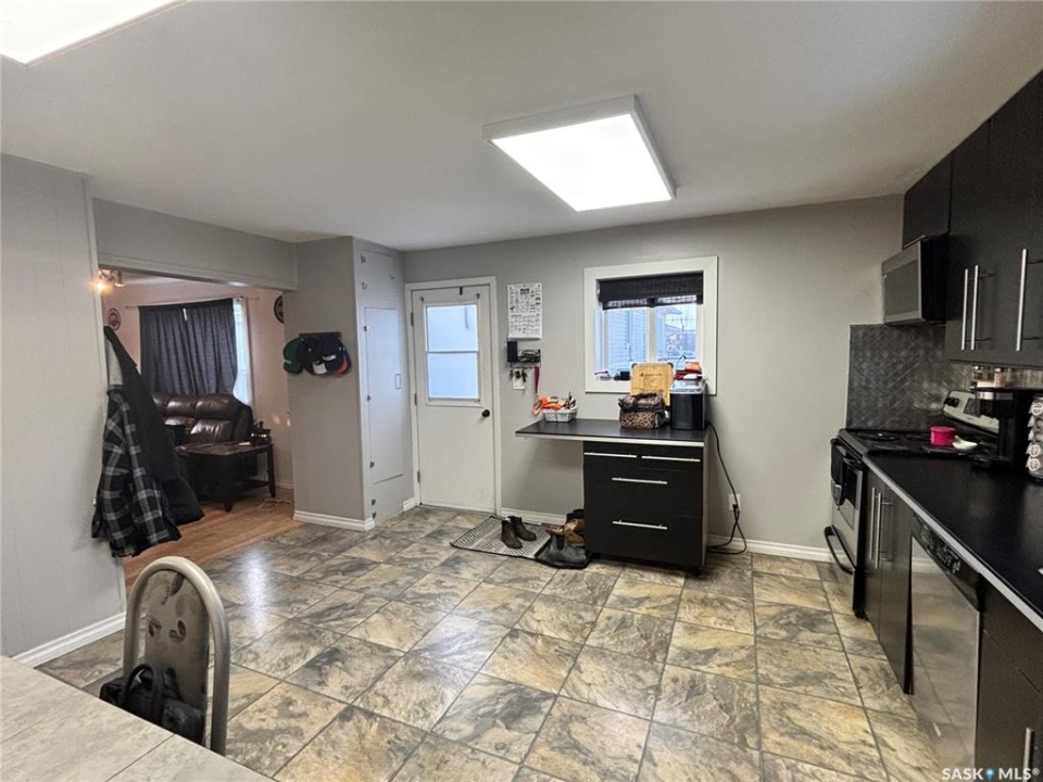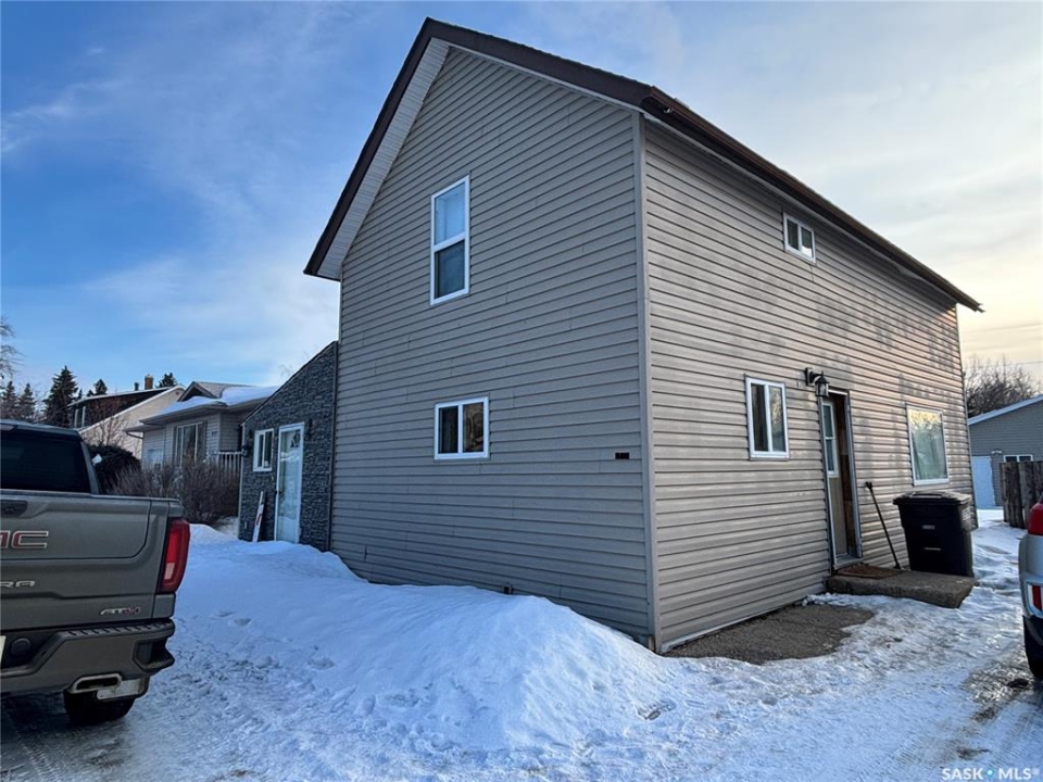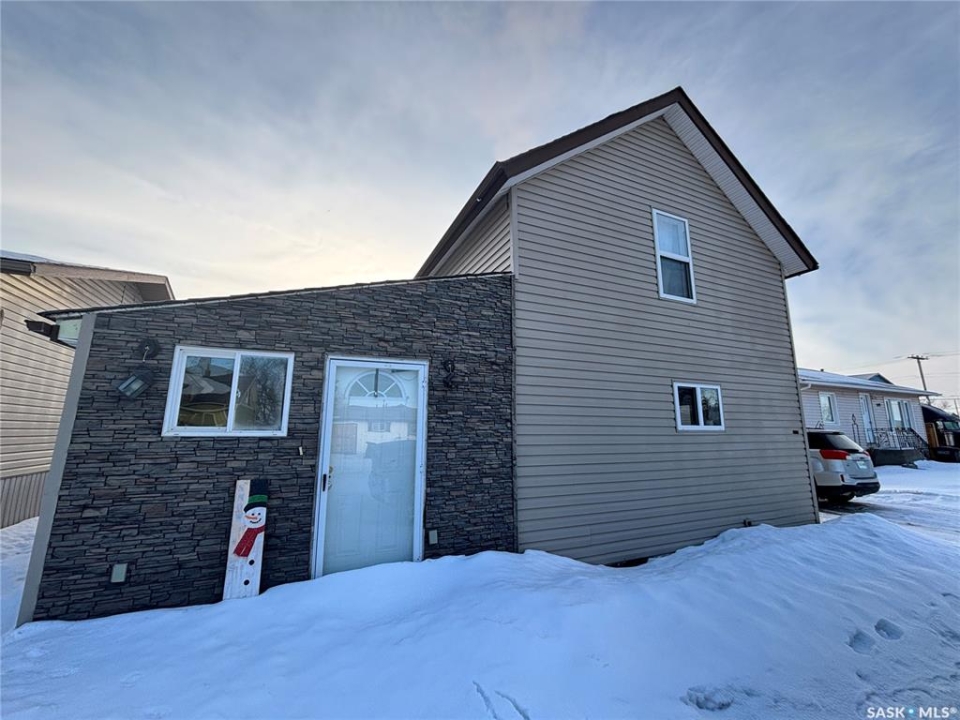 Charming character meets modern convenience in this beautifully updated 1 �-storey home located in the welcoming community of Bruno. Originally built in 1910, this property has seen numerous upgrades inside and out, including a fully refreshed exterior with updated windows, offering peace of mind while preserving timeless appeal. Set on a generous 50 × 132 lot, the home features a newer constructed 23 × 26 detached garage complete with a large overhead door, full insulation, and a 220-volt plug—perfect for hobbyists, storage, or year-round parking. The spacious backyard provides plenty of room to relax, garden, or entertain. Inside, you'll find a bright open-concept kitchen and dining area highlighted by newer cabinetry and sleek stainless steel appliances. The inviting living room overlooks the backyard and connects conveniently to the primary bedroom. A full 4-piece bathroom along with a large mudroom and laundry area complete the functional main floor layout. Upstairs offers two additional spacious bedrooms plus an oversized storage room or walk-in closet for added flexibility. The basement houses mechanical equipment and provides excellent storage space. Enjoy small-town living with easy access to nearby amenities—just 20 minutes to Humboldt and 45 minutes to Saskatoon—making this location ideal for commuters seeking quiet surroundings with convenient highway travel. A wonderful opportunity to own a move-in-ready home full of character, updates, and practical features in a peaceful Saskatchewan community.